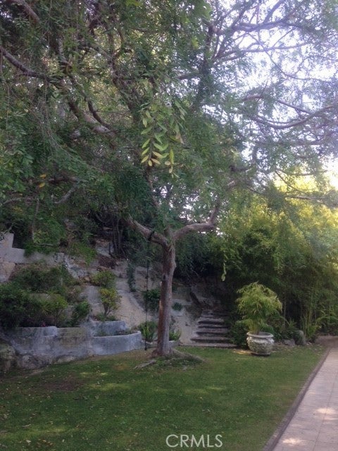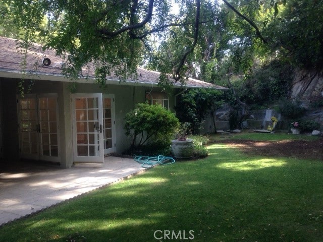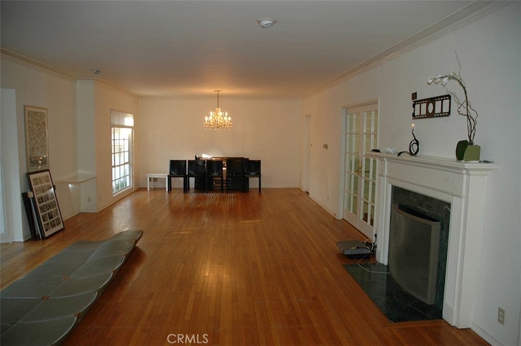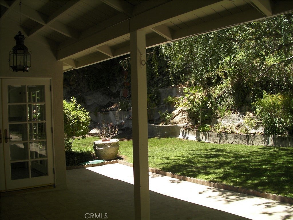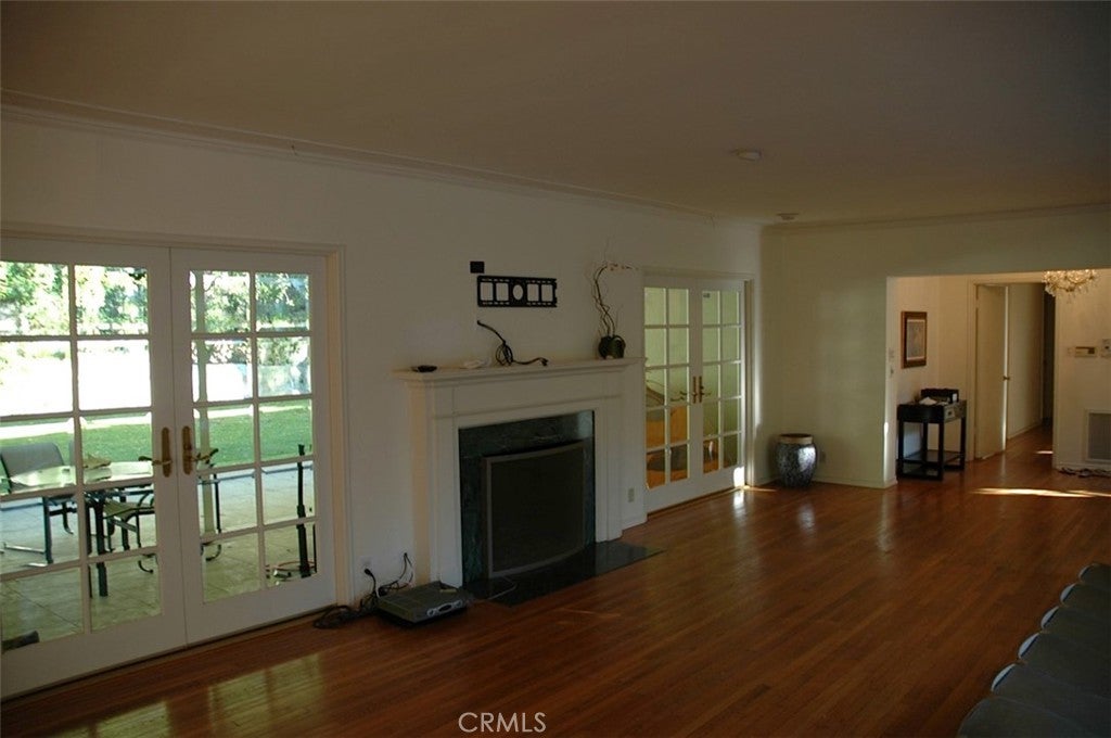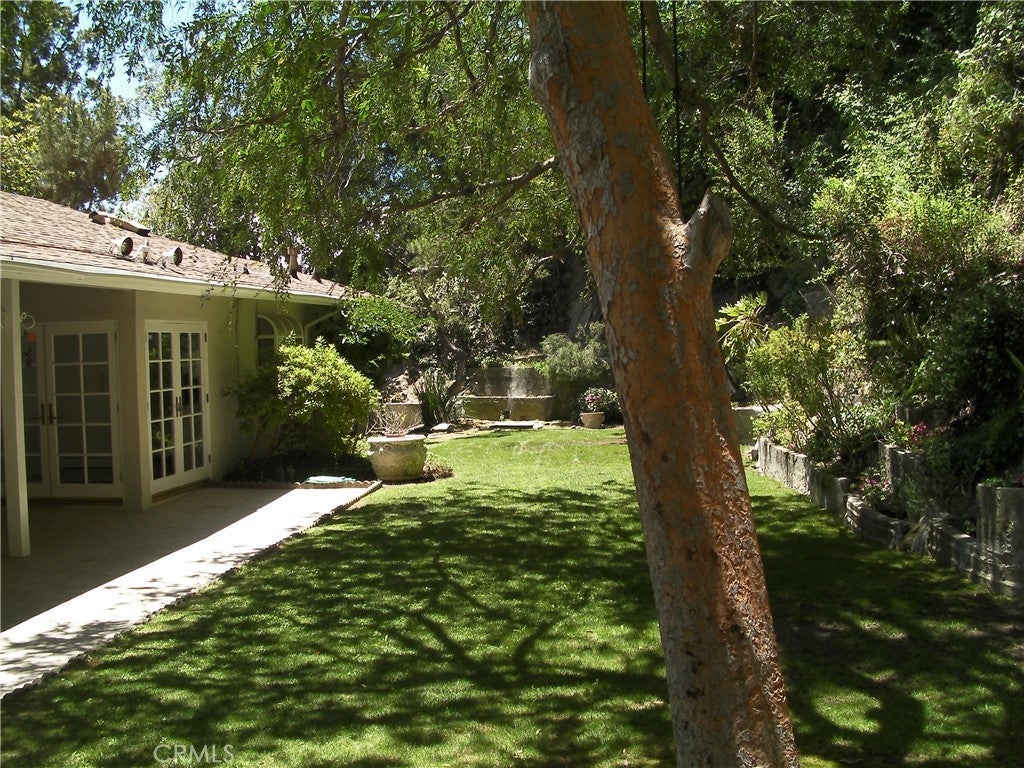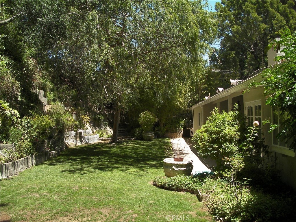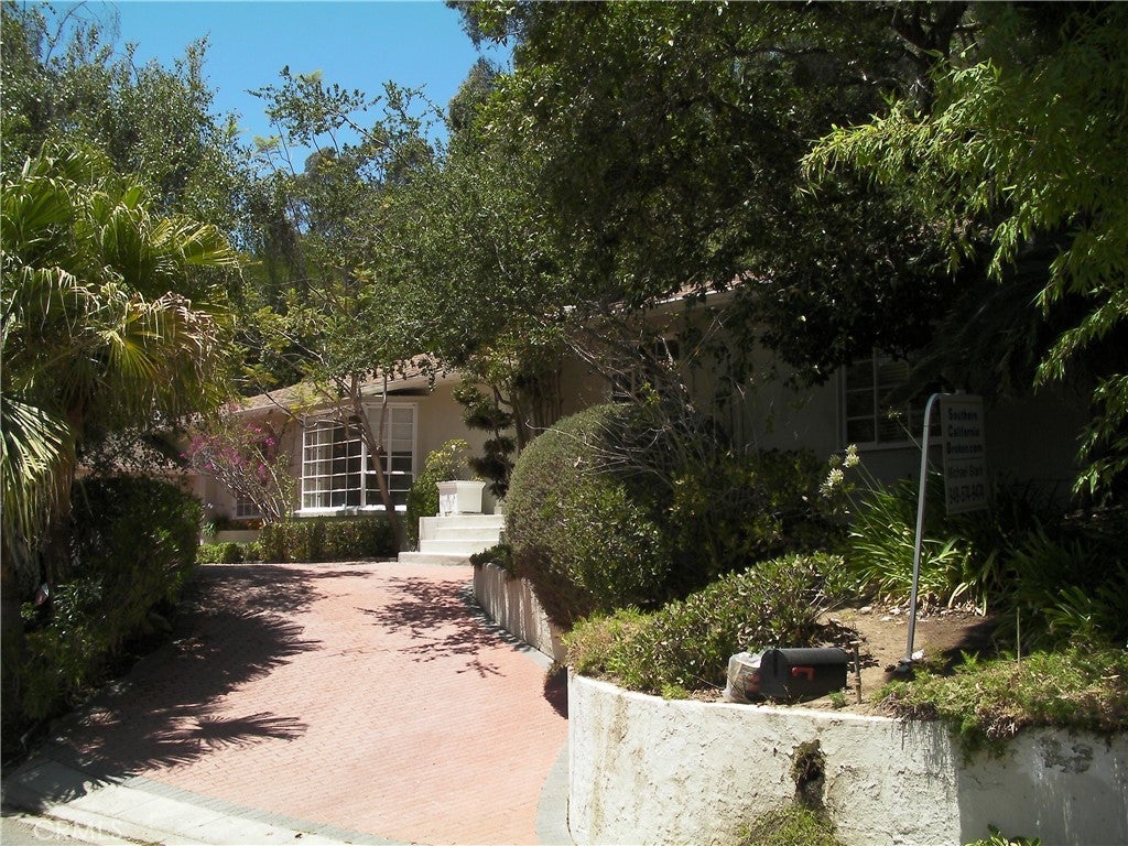 Located one block North of Sunset, this charming home is one story with 3 bedrooms, and 3 1/2 bathrooms and a den. Hardwood floors throughout, fireplace in large living room, open plan dining room. French doors open to the patio and beautiful garden. The kitchen is fully equipped with stove, double ovens, refrigerator, dishwasher. Large laundry room with washer and dryer. Circular driveway to 2-car garage. Square footage is per the Assessor.