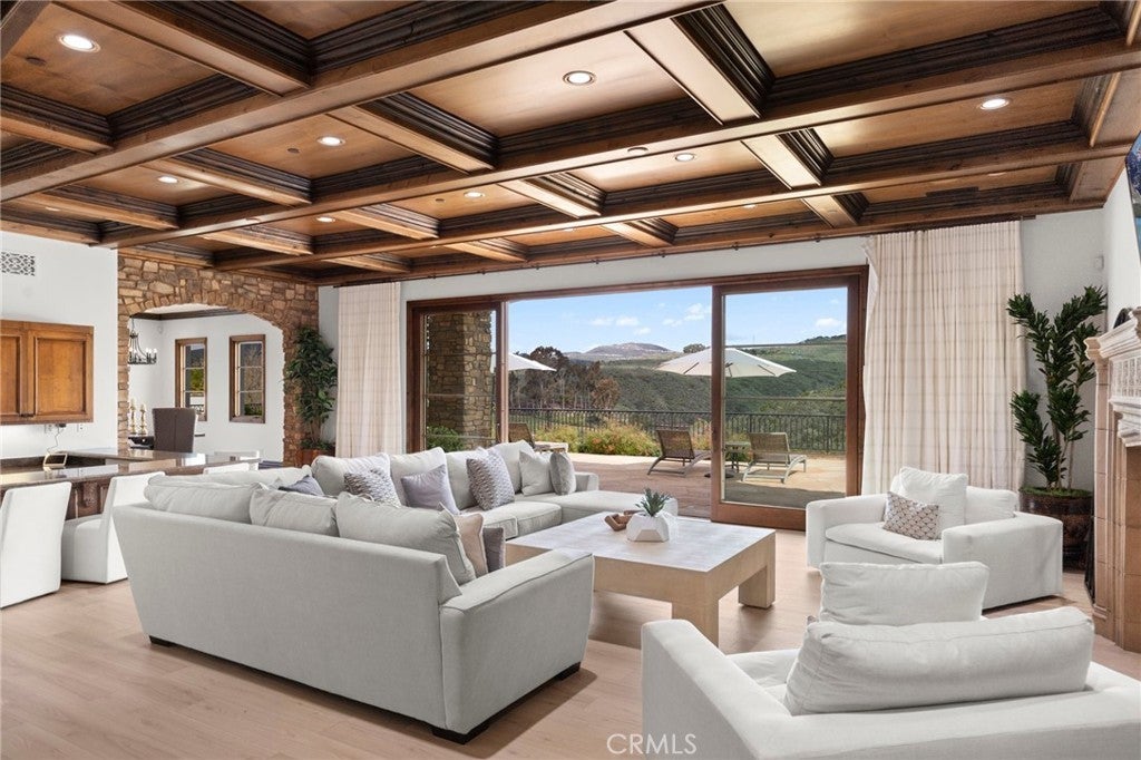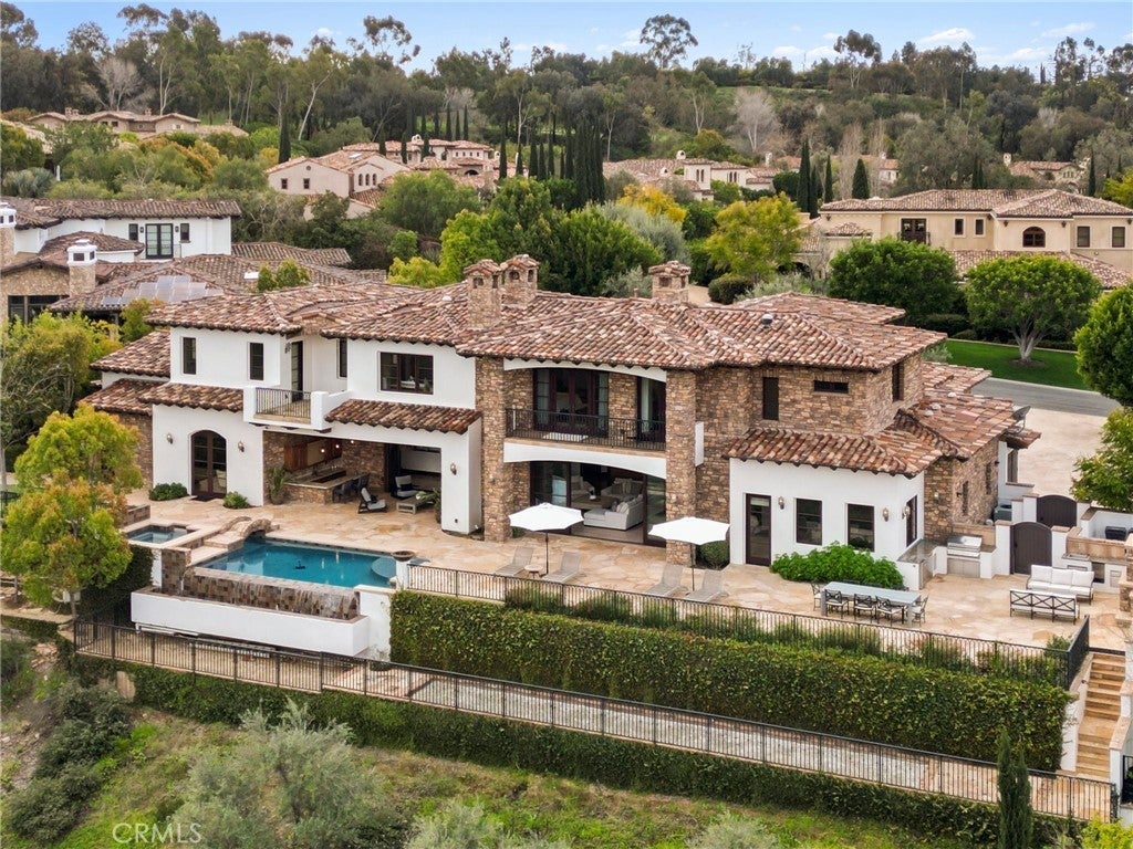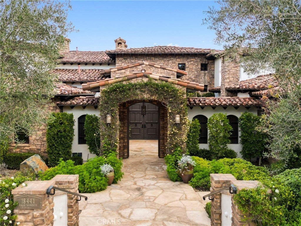 Spectacular panoramic views in The Bridges at Rancho Santa Fe! Overlooking the signature 10th hole green & fairway, this stunning 5 bedroom / 8 bathroom home features a highly functional floor plan designed to maximize both privacy and views. As you enter the home from the private gated courtyard, you are greeted by soaring ceilings and expansive views of the golf course, hills and an iconic community bridge. The open floor plan flows seamlessly from room to room, providing the perfect space for entertaining and relaxation. The gourmet kitchen features high-end appliances, a large center island and a breakfast counter. The adjacent family room is warm and inviting, with wet bar, a grand fireplace and patio doors that open to the outdoor living area. The luxurious owner’s suite is a private retreat with a fireplace and resort-like bathroom, complete with sauna, soaking tub, dual vanities,generous walk-in closets, and glorious hillside & golf course views. Four additional bedrooms, each en-suite provide ample space for family and guests. Additional amenities include a dedicated movie theater, office, and formal dining room. Outside, the resort-style backyard is an oasis of tranquility, with a sparkling infinity pool & spa, outdoor kitchen and dining area, and an intimate covered loggia seating area with a large fireplace. This exquisite estate offers the ultimate in luxury living in one of Southern California's most coveted communities.