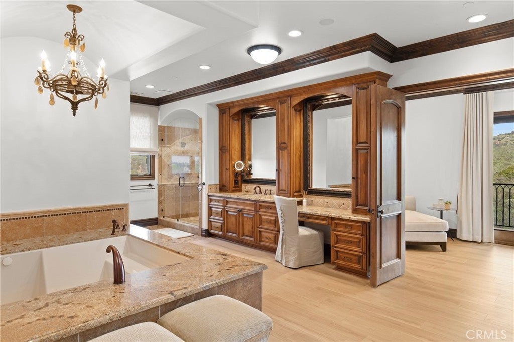Breakfast Bar, Separate/Formal Dining Room, Bedroom on Main Level, Primary Suite, Walk-In Closet(s), Coffered Ceiling(s), Stone Counters, Wet Bar, Wine Cellar, Wired for Data