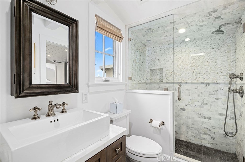 Fully furnished and truly turnkey, this exceptional Village residence is located in one of the area’s most coveted pockets, with an elevated, tranquil setting along the prized 700 block where ocean views sweep from the upper level. Every detail has been curated with intention, showcasing exquisite design and superior construction. Wide-plank distressed wood floors, elegant wainscoting, soaring two-story ceilings, designer hardware, statement lighting, and an advanced technology system combine with crisp white cabinetry, paneled ceilings, and expansive windows to create a bright, inviting ambiance ideal for sophisticated coastal living. The main level features a gourmet kitchen with marble countertops, designer appliances, and abundant custom cabinetry, flowing seamlessly into a generous living area where disappearing panel doors open to a covered loggia with a cozy fireplace and ample seating, perfect for year-round enjoyment. The primary suite offers soaring ceilings and a designer bath with a soaking tub, walk-in shower, dual-sink vanity, and custom walk-in closet, creating a private retreat of unparalleled comfort. Upstairs, a spacious secondary en-suite bedroom provides a private bath with views and direct access to an expansive rooftop deck, where sweeping ocean vistas stretch to Catalina Island and wrap around to the golf course. Live the Corona del Mar Lifestyle with proximity to famed beaches, blue-ribbon schools, fine dining and exquisite shopping.