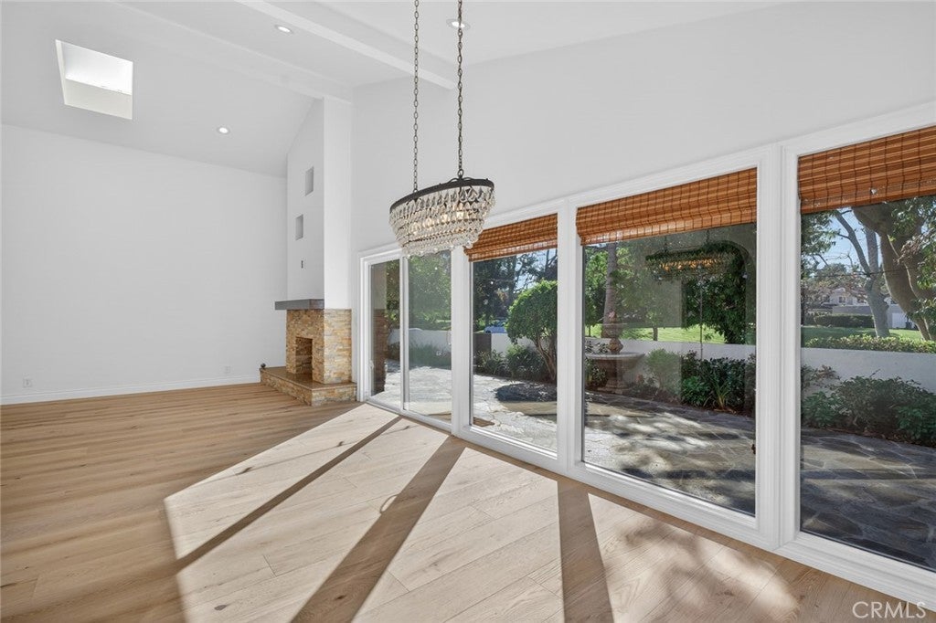 This stunning single-level home in the Bluffs has just completed a beautiful update. New white oak floors, fresh paint throughout, and an abundance of landscape additions. This 3 bedroom, 2 bath home is ideally located on sunny corner lot enjoying exceptional exposure at virtually any time of the day. Features include custom cabinetry, elevated finishes and fine craftsmanship. This may very well be your perfect "home away from home". From the walls of windows with views to the gorgeous wrap-around patio from nearly all living spaces, to the well appointed eat-in kitchen featuring premium stainless appliances, counter & table seating, and plenty of storage and prep space, the ease of living here is astounding. Love a masonry fireplace? This one provides a lovely focal point to the living area, nicely flanked by vaulted ceilings, and finished with a stone surround & raised hearth. Primary Bedroom and bath are remodeled, generous in size and set to one side of the home, while the other two bedrooms are roomy and in their own wing. Secondary bath features Carrara mableMature plantings in the front feature an abundance of white roses and greenery. Wrap-around stone patio hosts a concrete BBQ pavilion and ample room for multiple areas of cozy seating & outdoor dining, making this area an effortless extension of entertaining and living space. Central AC, Washer and dryer included, in addition to electrical car charging capabilities! This one is a "10". Property is being offered unfurnished.