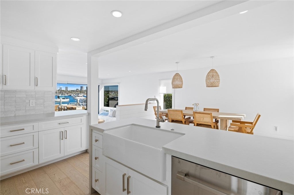 A rare lease opportunity sits on the water at 1126 East Balboa Boulevard on the highly coveted Newport Beach Peninsula. Featuring 3 bedrooms and 2.5 bathrooms, the floor plan is great for everyday beach living and entertaining. An open kitchen allows for views of the over-sized deck and bay from every angle of the main level. The deck leads to a 72ft private dock which can hold up to an 80ft boat and is the ideal place to watch the boats pass by, and enjoy sunsets, or even the city lights. Entirely remodeled throughout with oak hardwood flooring, a bunk room, and marble tiling in each of the bathrooms makes this home move-in ready. Within walking distance of the Wedge, the Balboa Ferry, and some of the West Coast's best beaches and restaurants.. this is truly a one of a kind rental opportunity on the water.