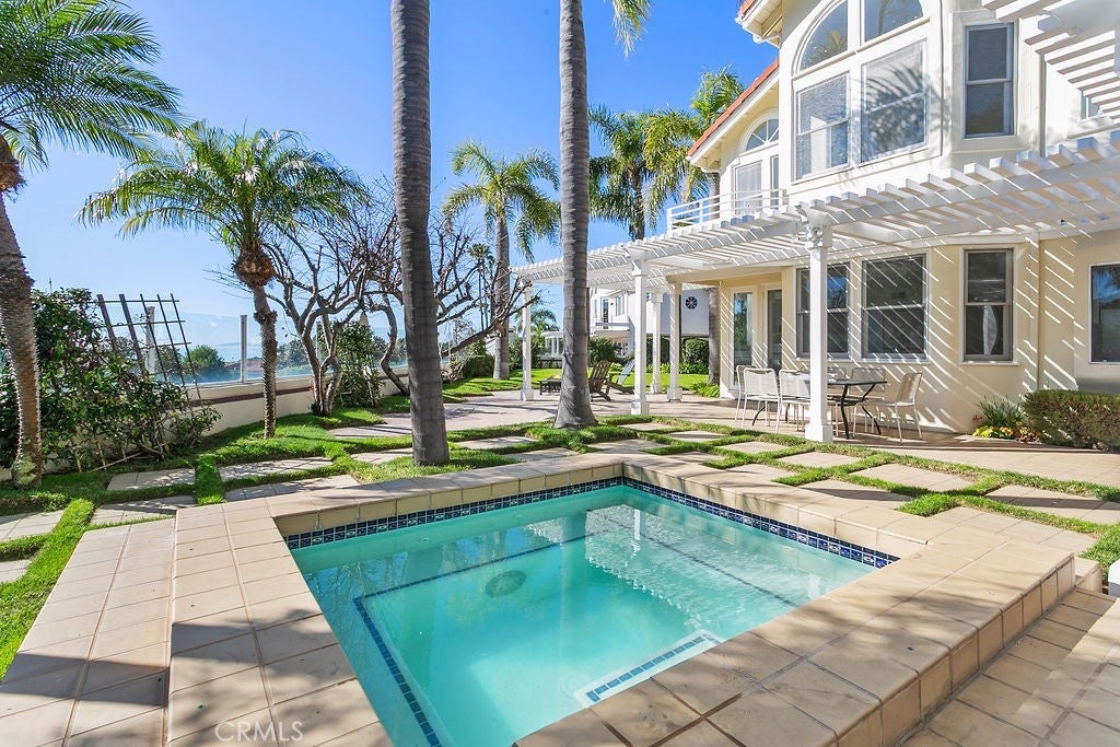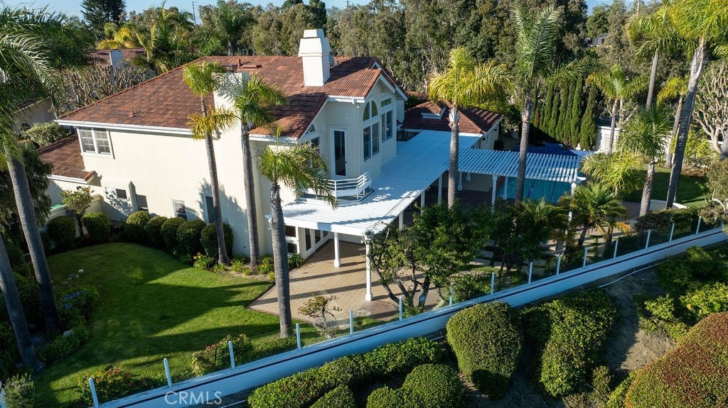 Perched on a rare 19000+ square foot level view lot in gated Harbor Pointe, is your next home! With Mediterranean vibes and only 20 homes in the enclave, you have the advantage of privacy and space.You'll be close to the financial headquarters, and medical offices of Newport Center, as well as the prestigious shopping and world class restaurants of Newport's Fashion Island. Three ensuite bedrooms in the main house as well as an ensuite bedroom, kitchenette and sauna in the permitted pool house/guest house comprise the spacious square footage. Great indoor/outdoor living with 3 grassy areas, a giant pool with separate spa...it's a welcoming space for gathering friends and family as well as a peaceful retreat to enjoy both the early coastal fog and the sunset over the ocean. Vaulted ceilings in living room, dining room and 2 upstairs bedrooms, accentuate light and grand space. The spacious downstairs bedroom suite views one of the yards. Your sanctuary/primary bedroom retreat has a corner fireplace, 2 story windows, and a secluded ocean view balcony. And each morning, you can enjoy the tall sun lit windows in the separate downstairs office ,which, could also be a great place to show-off your special awards and trophies. And be sure to check out the private 10+ car driveway adjacent to the 3 car garage.