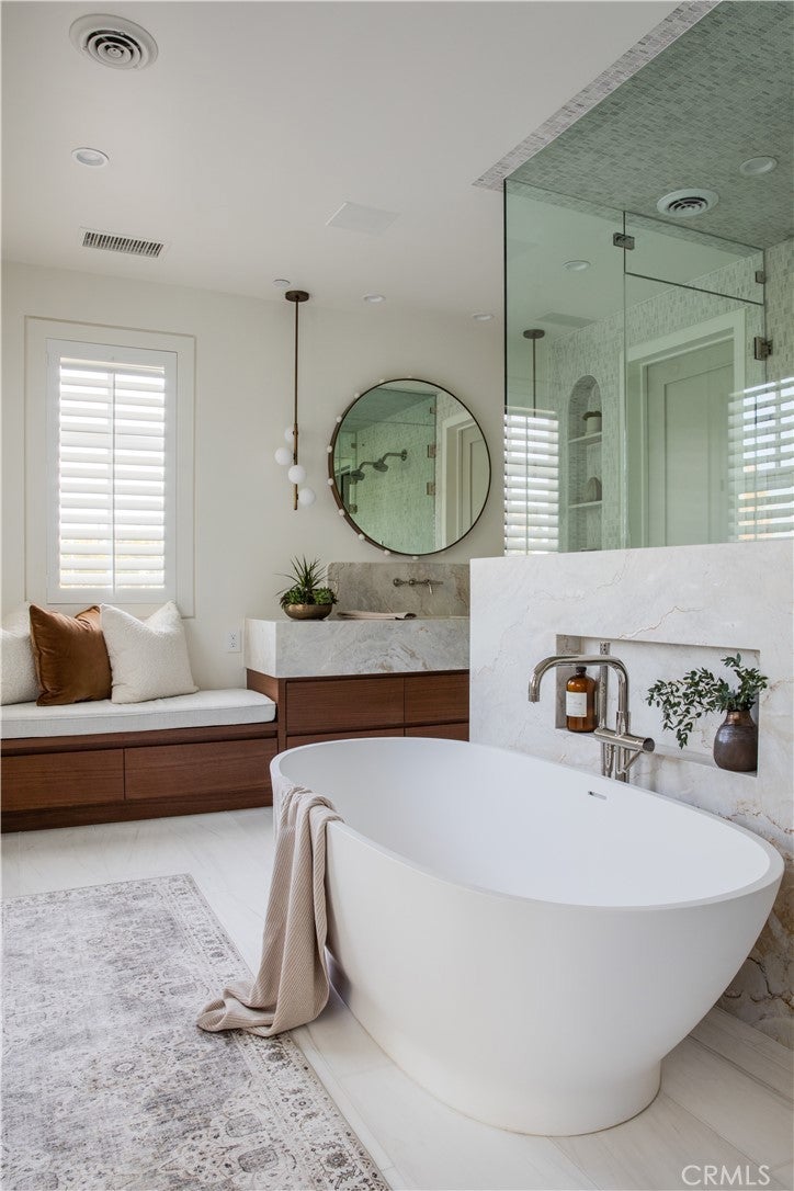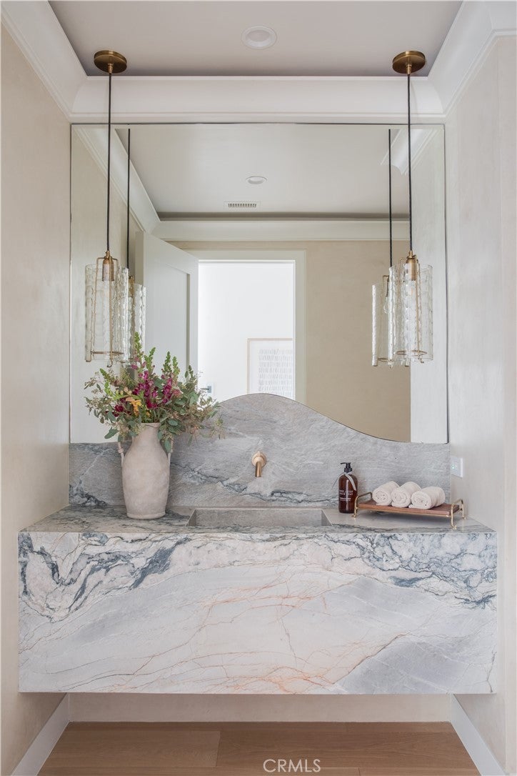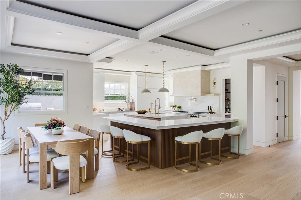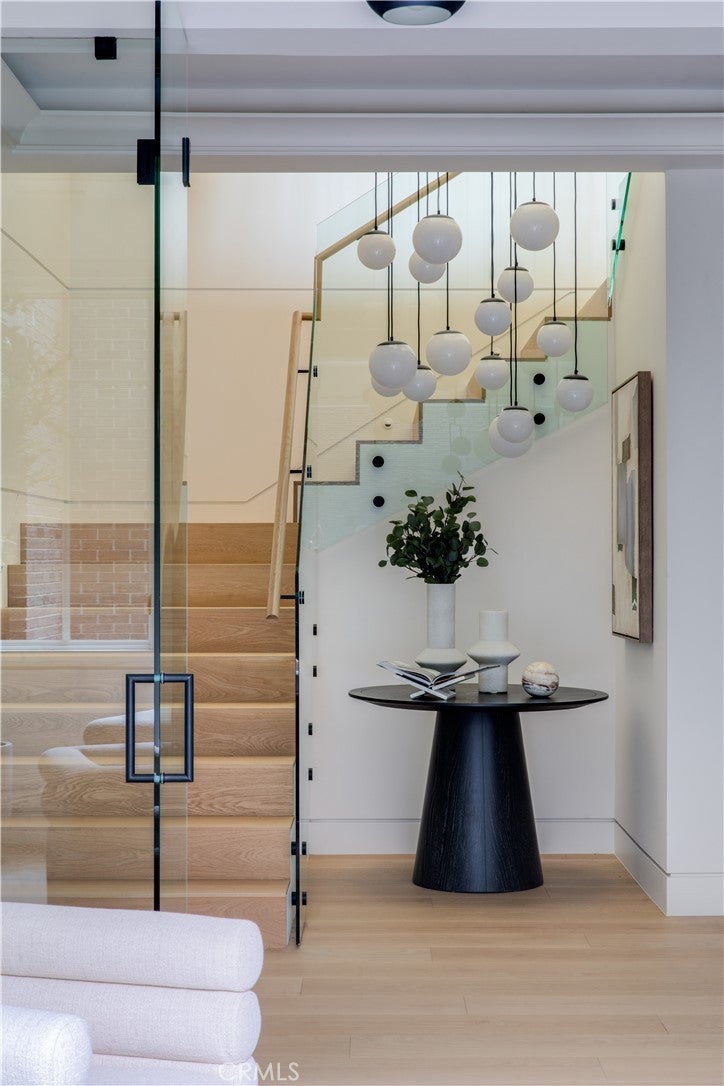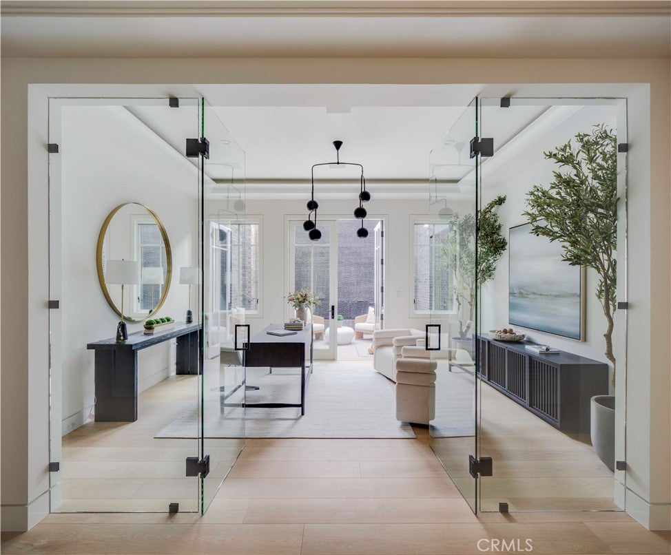 A Rare Architectural Statement in the Port Streets. Quietly commanding in one of Newport Beach’s most coveted neighborhoods, this reimagined contemporary estate has undergone a comprehensive, whole-home remodel, elevating nearly 7,924 square feet through thoughtful design, precision craftsmanship, and elevated material selections. Natural light moves effortlessly throughout the home, anchored by custom-crafted wide-plank white oak flooring, soaring ceilings, and a dramatic three-story glass stairwell crowned with a bespoke chandelier. Walls, plaster, lighting, kitchens, and baths have all been meticulously redesigned, resulting in interiors that feel refined, cohesive, and timeless rather than trend-driven. The chef’s kitchen is sculptural yet highly functional, appointed with Viking appliances, expansive stone surfaces, and sleek custom cabinetry. Accordion glass doors open to newly designed outdoor spaces, where Garden Studio–designed landscaping and completed pool engineering allow the next owner to finalize a resort-style setting tailored to their vision. The 2,500-square-foot lower level is immersive and unexpected, offering a glass-enclosed gym, executive office, multipurpose or playroom, and a fully upgraded private home theater with new equipment, custom velvet seating included, stadium tiers, and a performance stage. A two-story exterior fountain adds a dramatic architectural element and a sense of arrival. Upstairs, four en-suite bedrooms provide privacy and volume, including one with a hidden “secret room.” The primary suite is a private retreat with fireplace, deck, custom built-ins, and a fully reimagined spa-inspired bath featuring a steam shower, oversized soaking tub, and a customized walk-in closet with illuminated rods. Additional enhancements include whole-house reverse osmosis water filtration, advanced air purification, a comprehensive security system, and a generator, reinforcing the home’s focus on comfort, wellness, and modern resilience. Set on a 9,222-square-foot lot in the Port Streets, this home offers something rarely available: true scale, fresh design, and immediate livability. No other current offering in the neighborhood or Newport Beach combines this square footage, condition, and value. This is not a renovation for resale. It is a considered architectural reset, designed to be lived in, experienced, and remembered.