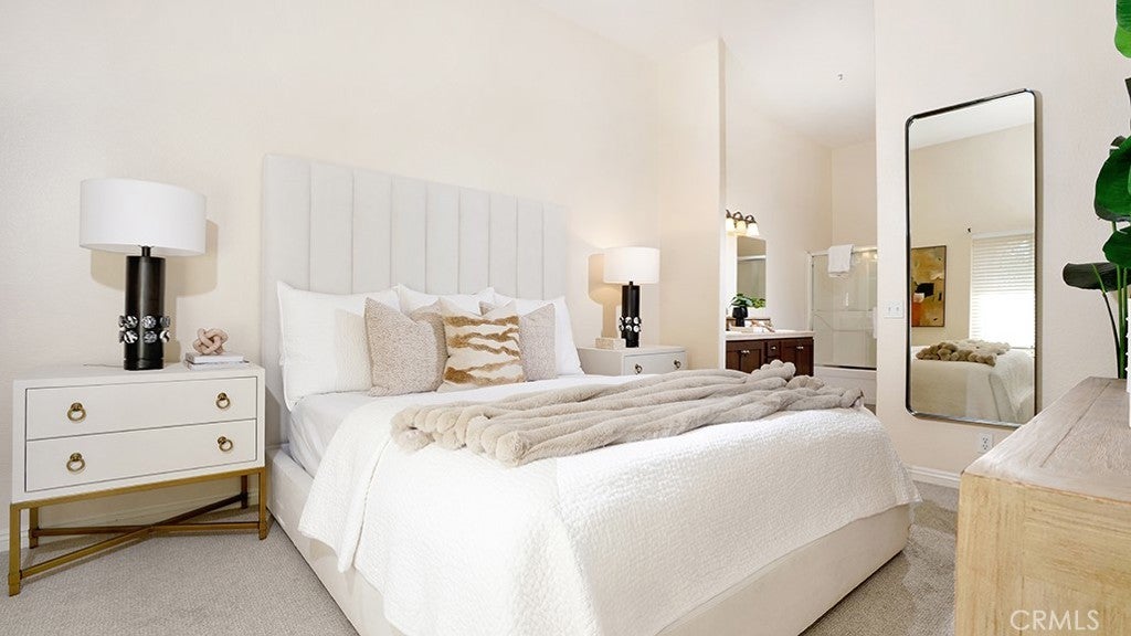 A rare opportunity to own a light-filled second-story residence in the highly sought-after Seagate Colony – Audubon community, this two-bedroom, two-bath home offers an ideal blend of comfort and resort-style living across approximately 989 square feet. The inviting living room features a cozy fireplace and opens to a private balcony accessed directly from the living area, creating an ideal space for relaxing or entertaining. The thoughtfully designed layout places the two bedrooms on opposite sides of the home, offering excellent privacy and functionality. The kitchen is appointed with warm wood cabinetry, granite countertops, and stainless steel appliances, providing both style and efficiency. Tile flooring spans the main living areas, while new carpet in both bedrooms adds comfort. The primary suite features vaulted ceilings, abundant natural light, and a private en-suite bath highlighted by a garden-style soaking tub—oval in design and wider than a traditional bathtub for a true spa-like experience. The spacious secondary bedroom also features vaulted ceilings and includes a full en-suite bathroom, making it ideal for guests, a home office, or flexible living arrangements. Residents enjoy access to Seagate Colony’s resort-style amenities, including two pools, two spas, a fitness center, clubhouse, and lushly landscaped grounds, with water and trash included in the HOA. Ideally located near parks, top-rated schools, shopping, dining, entertainment, and convenient freeway access, this home offers a perfect balance of tranquility and accessibility.
