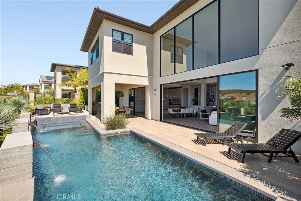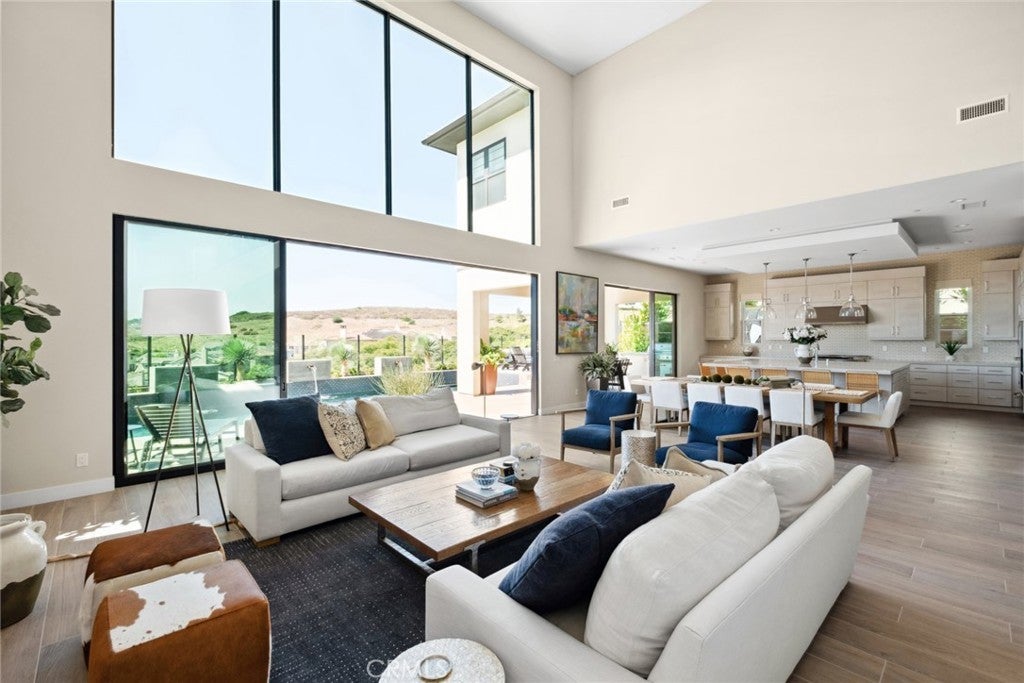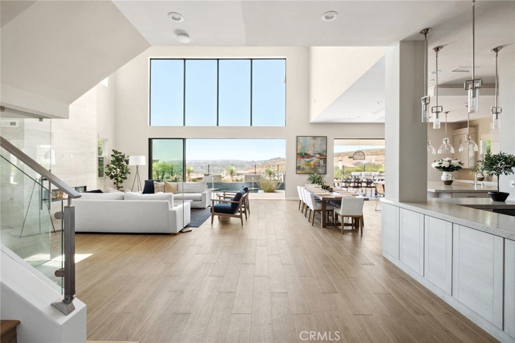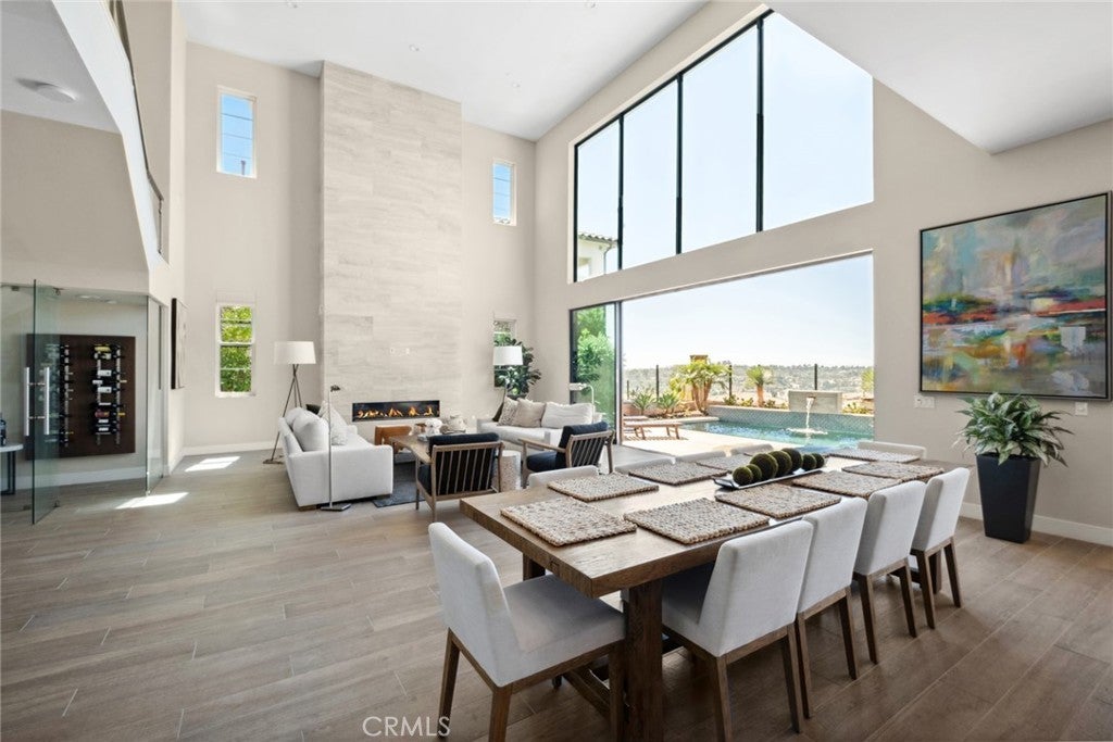 Rarely found but highly sought after, this newly built Coastal Contemporary Toll Brothers masterpiece boasts ocean and city light views from nearly every room, impresses even the most discerning clientele. Residents and guest are welcomed by an oversized architectural glass entry-door and 22-foot two story ceiling heights with a rare open concept showcasing glass door systems that weave the indoor and outdoor spaces into one. The abundance of natural light permeates through the entire property and highlighted by designer finishes such as stone islands, bespoke handcrafted finishes, custom cabinetry, glass wine cellar, entertainers bar, Chef's kitchen plus huge butlers kitchen, a steel and glass staircase, two-story stone fireplace, and contemporary lighting fixtures to name a few. The great room is the heart of this well thought out floor-plan with an adjacent informal and formal dining space which all open to breathtaking ocean and city light views. The main floor has an en-suite bedroom with a private office as well. The second floor hosts the primary suite with sit-down ocean and city light views and offers a 5-star hotel feel with spa like bathroom and designer inspired primary closet built out with boutique finishes. The backyard space sets the resort style tone with a private loggia, hotel style pool with spa and multiple water features a zen area plus outdoor BBQ bar with seating for all your guests around the fire-pit. No expense was spared in this designer masterpiece. The gated community offers 5-star amenities that is sure to please all accentuated the casual luxury and elevated living.
