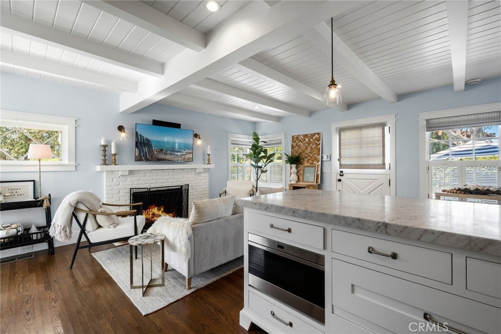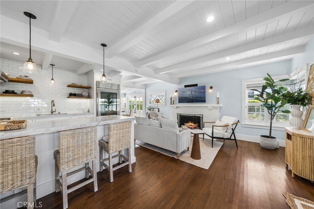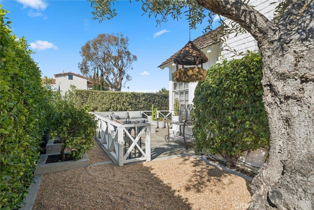 Welcome to 420 Acacia Avenue, a rare and historic Corona del Mar cottage nestled in the heart of The Village. Built in 1952, this beautifully updated 3-bed, 2-bath home offers approximately 1,475 square feet of character-filled living space on a prime corner lot just moments from beaches, parks, shops, and world-class dining. Stepping inside, timeless details like beamed ceilings, hardwood floors, recessed lighting, built-ins, and a remodeled kitchen with stone counters blend effortlessly with modern touches. The floor plan feels open and inviting, complemented by natural light and thoughtful upgrades throughout. Outdoors, the property’s charm continues in its extraordinary Molly Wood designed cottage garden. A thriving 75-year-old olive tree stands as a living legacy, while mature citrus trees produce abundant oranges, lemons, and grapefruit, and rose bushes bloom along First Avenue. A ficus hedge provides lush privacy, framing a serene side yard centered around a custom fountain, creating a peaceful retreat. Additional features include a detached 2-car garage, landscaped yard, and classic architectural charm that has been thoughtfully preserved. 420 Acacia is more than a home, it’s an opportunity to own one of Corona del Mar’s most charming and historically significant cottages, where heritage, location, and natural beauty converge.