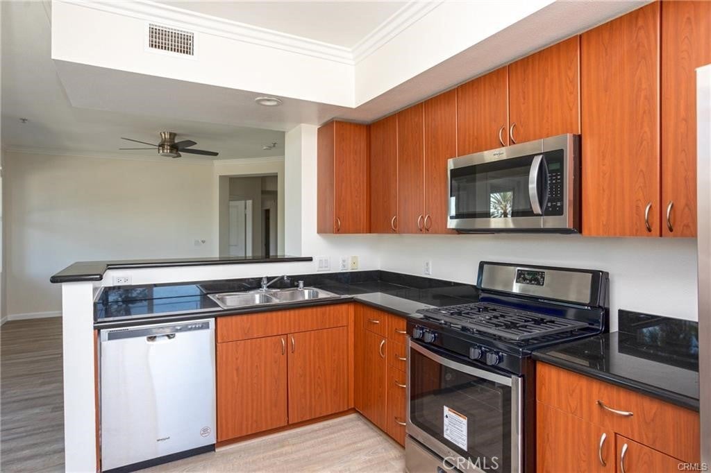 Discover the vibrant community of Stadium Lofts nestled within the bustling Platinum Triangle of Anaheim. Experience the quintessential Southern California lifestyle with easy access to Angel Stadium, Honda Center, Disneyland, The Block of Orange, The Garden Walk, and the Amtrak Station. This inviting three-bedroom home has been tastefully upgraded with new flooring, bathroom fixtures, and cabinetry, boasting an airy open floor plan and a private enclosed deck for outdoor relaxation. The elevated condominium presents an inviting open kitchen, two well-appointed bathrooms, a convenient breakfast bar, a spacious family area, and an indoor laundry room equipped with full-size machines. Generous closet space ensures ample storage, while the unit conveniently comes with two assigned parking spaces in close proximity. Stadium Lofts community offers an array of desirable amenities, including a resort-style pool, spa, BBQ grills, a cozy fire pit, a rejuvenating sauna, a well-equipped weight room, entertaining pool table and shuffleboard, a communal kitchen area, and a functional business center. Embrace the opportunity to be a part of the vibrant Stadium Lofts community, an ideal haven for savoring the best of what Anaheim has to offer.