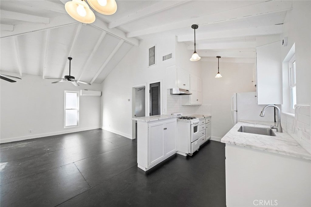 Tucked in a coveted, quiet enclave south of PCH, just two blocks from the Goldenrod Pedestrian Bridge, this chic, plantation-style stand-alone residence reimagines its 1960s architectural roots. A flexible floor plan offers three bedrooms, an office, and three bathrooms, with distinct upstairs and downstairs living and family rooms. Vaulted, beamed ceilings pair beautifully with a mix of wood and cement flooring. Every bedroom and public space opens directly to the outdoors, connecting seamlessly to decks, patios, and garden areas. A highly unique and private front garden features a built-in koi pond. Additional amenities include inside laundry, a one-car garage, and ample street parking. An unusual, soulful home with undeniable style and presence.