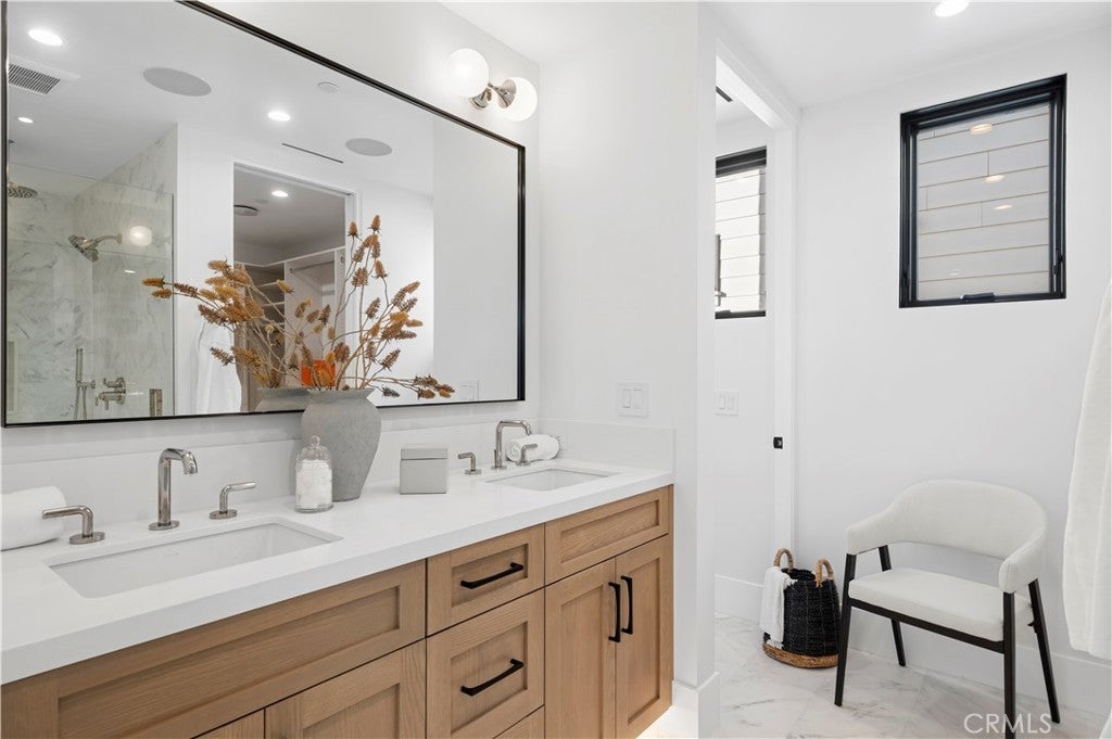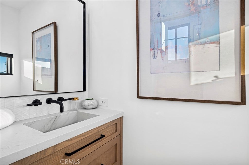 Driven by a passion for luxury residential design, DeCarrier, Montesantos Builders and Amy Mitchell Design present this signature new-construction residence - an inviting expression of refined coastal living in one of Southern California’s most cherished seaside communities. Thoughtfully designed for both beauty and ease, this 2-bedroom, 2.5-bath home offers a seamless blend of sophistication and comfort. Soaring ceilings, European white oak wide-plank flooring, and abundant natural light create a warm, airy atmosphere throughout. The open-concept main living level centers around a stunning gourmet kitchen with custom cabinetry, quartzite countertops, Sub-Zero and Wolf appliances, and an oversized island - perfect for casual mornings or lively evenings with friends. Living and dining spaces open effortlessly through disappearing glass sliders to a fireplace-anchored California room, inviting year-round indoor-outdoor living. The primary suite serves as a peaceful retreat, featuring a custom walk-in closet and a spa-inspired bath with marble finishes, dual vanities, and a spacious enclosed shower. Upstairs, a secondary ensuite bedroom opens to two rooftop decks - one ideal for quiet moments, the other designed for dining, entertaining, and sunset gatherings. Just moments from Big Corona Beach and the village’s boutiques and restaurants, this exceptional home delivers the quintessential Corona del Mar lifestyle.