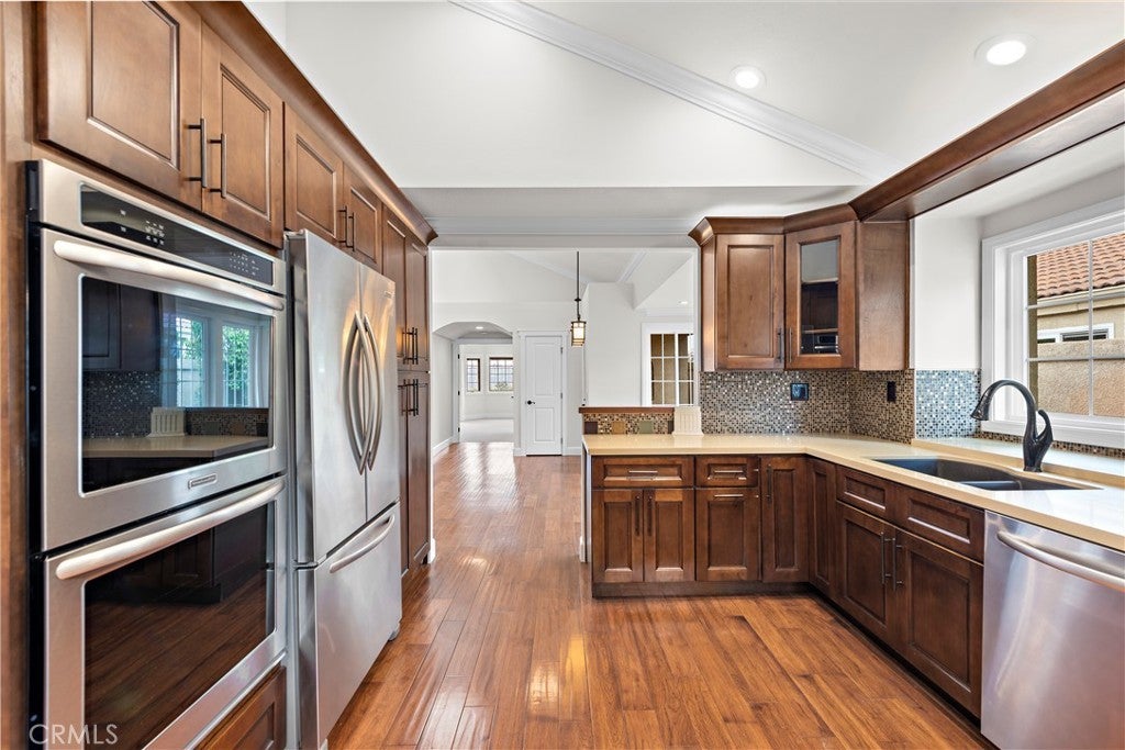 Tucked away on a quiet cul-de-sac, this coveted single-level detached residence offers refined living in one of San Juan Capistrano’s most desirable settings. Thoughtfully redesigned, the home showcases an expanded, designer kitchen with dramatic vaulted ceilings, custom soft-close espresso cabinetry, sleek quartz countertops, and top-of-the-line KitchenAid appliances, including double ovens—perfectly suited for elevated entertaining and everyday luxury. Both bathrooms have been meticulously remodeled with high-end finishes, while rich hickory wood flooring flows seamlessly throughout the home. Dual-pane Pella windows and doors invite in natural light and enhance comfort, complemented by central air conditioning for effortless year-round living. Every upgrade has been carefully selected, creating a residence that is both functional and sophisticated. The private rear yard and patio provide a serene outdoor retreat, framed by picturesque hill views—ideal for relaxing evenings or alfresco gatherings. Residents enjoy access to resort-style community amenities, including a pool, spa, scenic walking trails, and gated RV parking. Surrounded by premier hiking, cycling, and equestrian trails, and just moments from the San Juan Hills Golf Club, this location caters to an active, outdoor lifestyle. Ideally situated only minutes from Dana Point Harbor, Doheny State Beach, and the charm of historic downtown San Juan Capistrano, this exceptional home delivers the perfect balance of tranquility, luxury, and coastal convenience.
