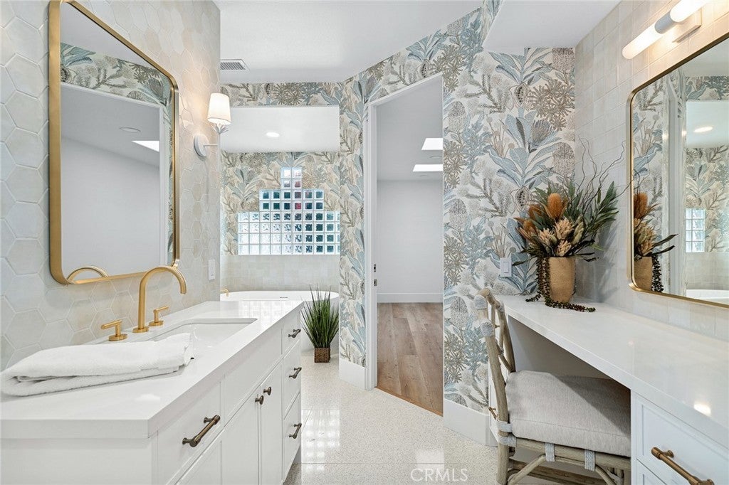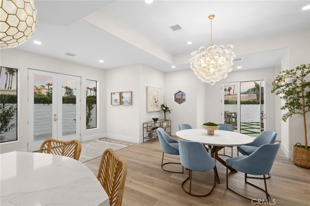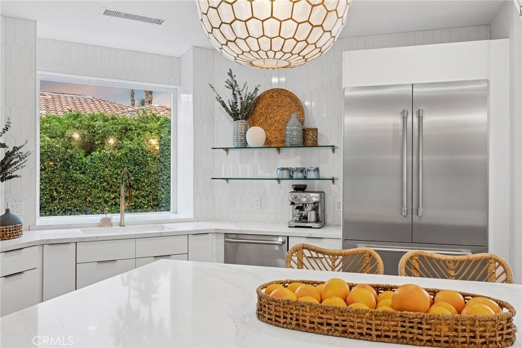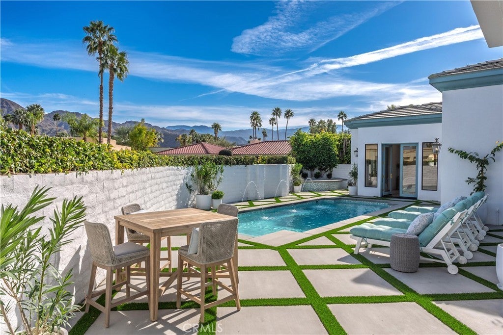 Completely Reimagined Luxury Home in the Heart of Indian Wells. This stunning 4-bedroom, 6-bathroom residence offers approximately 4,000 square feet of refined living space on an oversized 12,000 square foot lot. No detail was overlooked and major systems have been upgraded, including HVAC, pool, and professional landscaping. Designed for exceptional desert living, this private compound showcases breathtaking mountain views and seamless indoor-outdoor entertaining. At the heart of the home is an expansive great room featuring a full bar and generous entertaining area, perfect for hosting gatherings or relaxing in style. Elegant flooring and designer light fixtures elevate the modern, sophisticated interiors. The resort-style backyard boasts a sparkling quartz pool, spa, and fire pit, as well as ample space to enjoy the stunning desert surroundings. Ideally located in the heart of Indian Wells with exceptionally low HOA dues, this turnkey property is just moments from world-class golf, fine dining, and premier shopping. A rare opportunity to own a beautifully upgraded home in one of the desert’s most desirable communities.