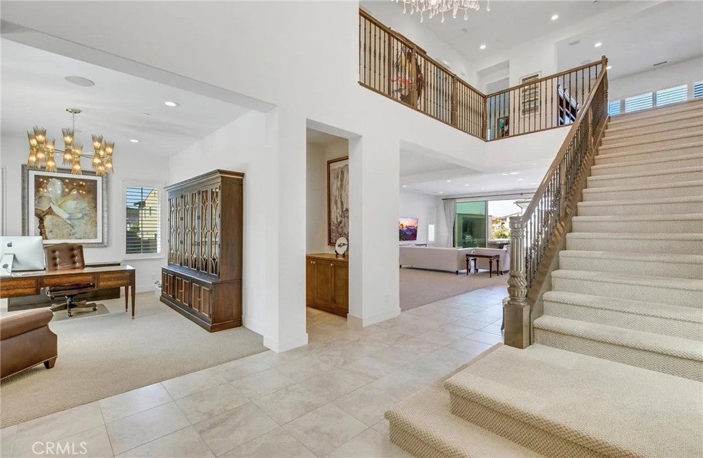Guard Gate Luxury at Altair - Beautiful Toll Brothers executive home offering 4,710 sq ft elegantly designed with premier corner lot location to allow city light views from upstairs level. Dramatic two-story foyer with open concept great room and dining area, connected to the covered California room with multi-panel sliding doors creates amazing indoor-outdoor living experience. Chef inspired gourmet kitchen with large center island, abundant cabinetry, extensive countertop space, and a spacious walk-in pantry. Luxurious primary suite with coffered ceiling, large walk-in closet, spa-like bathroom with dual vanities, soaking tub, and oversized walk-in shower. Secondary bedrooms with en-suite bathrooms and walk-in closets. Laundry is located on second level for convenience. Main level includes private suite with own bath and walk-in closet. Gorgeous private backyard is entertaining dream with custom designed water fountain and more. Altair residents enjoy luxury clubhouse, three pools and spas, tennis courts, bocce ball, playgrounds and scenic trails. Outstanding location with Irvine top rated schools, close to shopping, dining and Irvine's Great Park. Fantastic opportunity to own a sophisticated home in one of Irvine's most desirable communities.