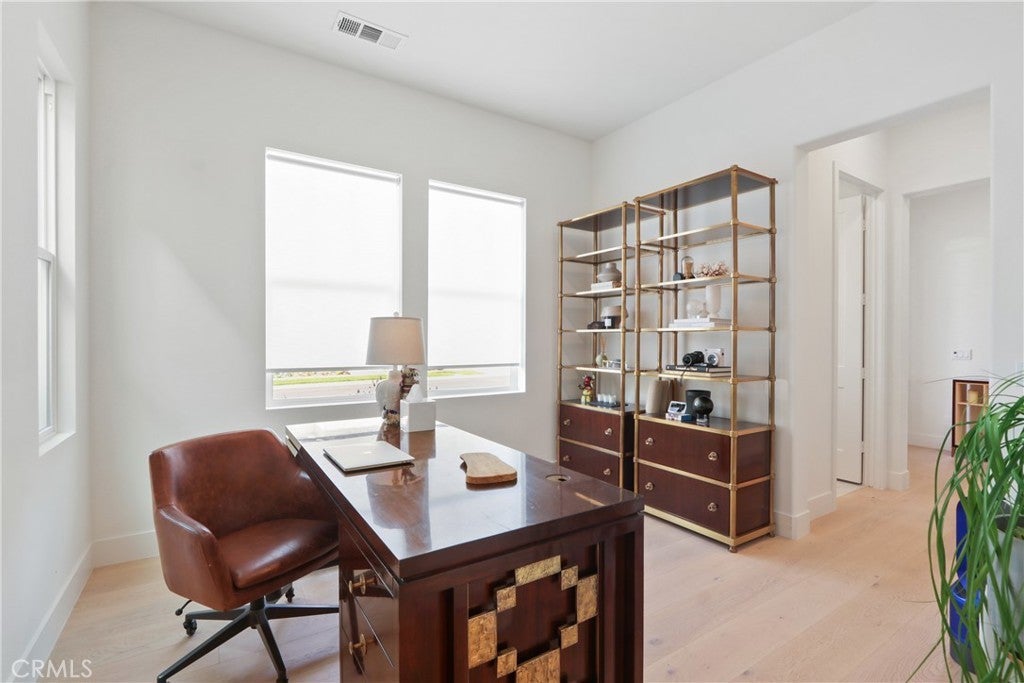 Guard Gated Community of Altair by Irvine's Great Park. Beautiful craftsman style property with inside tract location on quiet street. Features: excellent curb appeal, front porch, gorgeous hardwood floors, four bedrooms, office, upstairs loft, gourmet kitchen with quartz countertops and large center island, high-end cooktop, double ovens and more. All bedrooms are ensuite with own bathroom and walk-in closet. Spacious living room with fireplace, very light and bright. Second floor features primary suite with spa like primary bathroom, two additional bedrooms, and huge loft area for entertainment. Professionally landscaped backyard with California room for entertaining by a built-in fireplace and views of private natural reserve located behind the property with no rear neighbors. The community of Altair offers, guarded 24 hours a day, two resort style pool areas, luxury clubhouse, sports amenities, and scenic walking trails, along with award winning Irvine School District.
