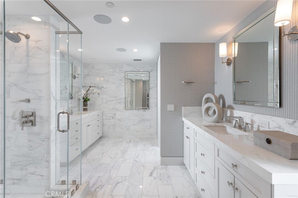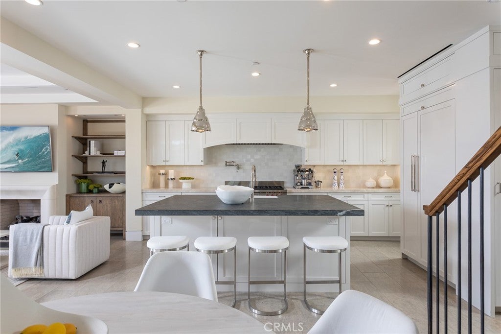 An exquisite Balboa Island residence poised to deliver the very best of Newport Beach living. Set within the coveted "Little Island," this pristine waterfront oasis offers 30’ of frontage and a private dock accommodating a vessel up to 18’. Swoon-worthy interiors by renowned designer Michael Smith span approximately 2,181 square feet over three levels and incorporate stylish touches such as hand-carved fireplace mantels, bespoke draperies, custom window treatments, wall coverings, and designer faucets/fixtures throughout. Anchored by a custom fireplace, the open-plan living area is accoutered with beamed ceilings, accordion glass doors, stone flooring, built-in shelving, and electric Lutron shades that open to reveal a soothing backdrop of the bay. Outside, entertain and dine al fresco in the heated covered patio made for year-round enjoyment. Tailored to modern tastes, the chef’s kitchen is dressed in stone countertops, subway tile backsplash, white shaker cabinetry, heated floors, and built-in Wolf and Sub-Zero appliances. Rounding out the main level is a breakfast nook, half bath, and 84-bottle wine room with storage racks. A curved wooden staircase rises to the second level where all three generously proportioned en suite bedrooms reside including the opulent fireplace-warmed primary suite equipped with two large walk-in California Closets, spa-like bath outfitted in marble, heated floors, discrete built-in refrigerator, and accordion glass doors that lead to a private wrap-around balcony with heated flooring. Crowning the home on the third floor is an exercise room with an en suite bath and an executive office featuring wood flooring and lighted, built-in display cases and cabinets. Beyond, the view roof deck is the idyllic entertainment venue with covered and uncovered spaces serviced by a kitchenette for easy hosting. Additional highlights include an ELEVATOR servicing all three levels, Control4 AV and lighting system, Hikvision security camera system, Electrolux washer/dryer, TOTO toilet/bidet, electric-powered blinds in living room and primary bedroom, and two-car garage with built-in cabinets/storage. Set near picturesque beaches, shopping, dining, Lido House Hotel, and championship golf courses, in an exclusive waterfront community, the dream comes alive at 308 Grand Canal.