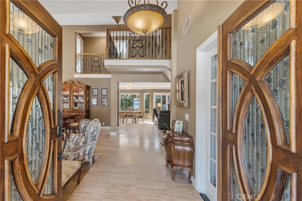 Beautifully situated in North East Santa Ana’s desirable Young Square neighborhood, this exceptional home rests near the end of a quiet cul-de-sac offering privacy with no drive-through traffic. Step through elegant leaded glass double doors into a bright, open floor plan featuring vaulted ceilings, beautiful crown molding, a sunken living room, and a formal dining room, perfect for gatherings both intimate and grand. The home offers 3 spacious bedrooms, 2.5 bathrooms, plus a dedicated office space, providing flexibility for today’s lifestyle needs. A striking wrought iron staircase leads upstairs, where all three bedrooms are thoughtfully positioned. The luxurious primary suite features his-and-her closets, an oversized storage closet for additional organization, and a spa-like ensuite complete with dual sinks and an expansive walk-in shower. The secondary bedrooms are connected in a convenient Jack-and-Jill layout, ideal for family or guests. The kitchen opens seamlessly to an intimate dining area and inviting family room with a cozy fireplace, creating the perfect space for everyday living and entertaining. Comfort and style are beautifully captured throughout this lovely home. The lush backyard is ideal for entertaining family and friends, while the manicured front and rear yards enhance the home’s curb appeal. Additional highlights include: 2-car attached garage, HVAC and furnace approximately 6 years old, Dual-pane Andersen windows throughout, and a Durable tile roof. This is a rare opportunity to own a beautifully maintained home in one of North East Santa Ana’s most desirable neighborhoods.