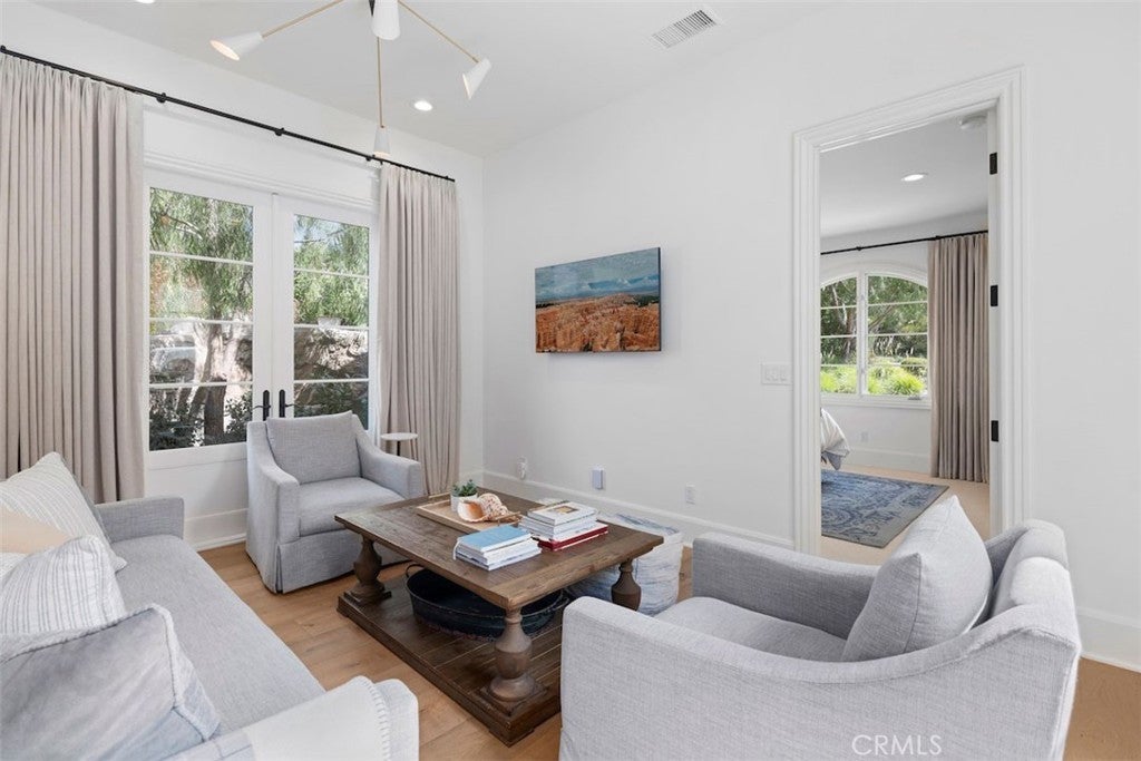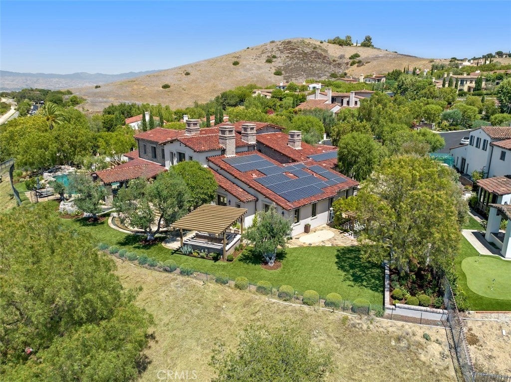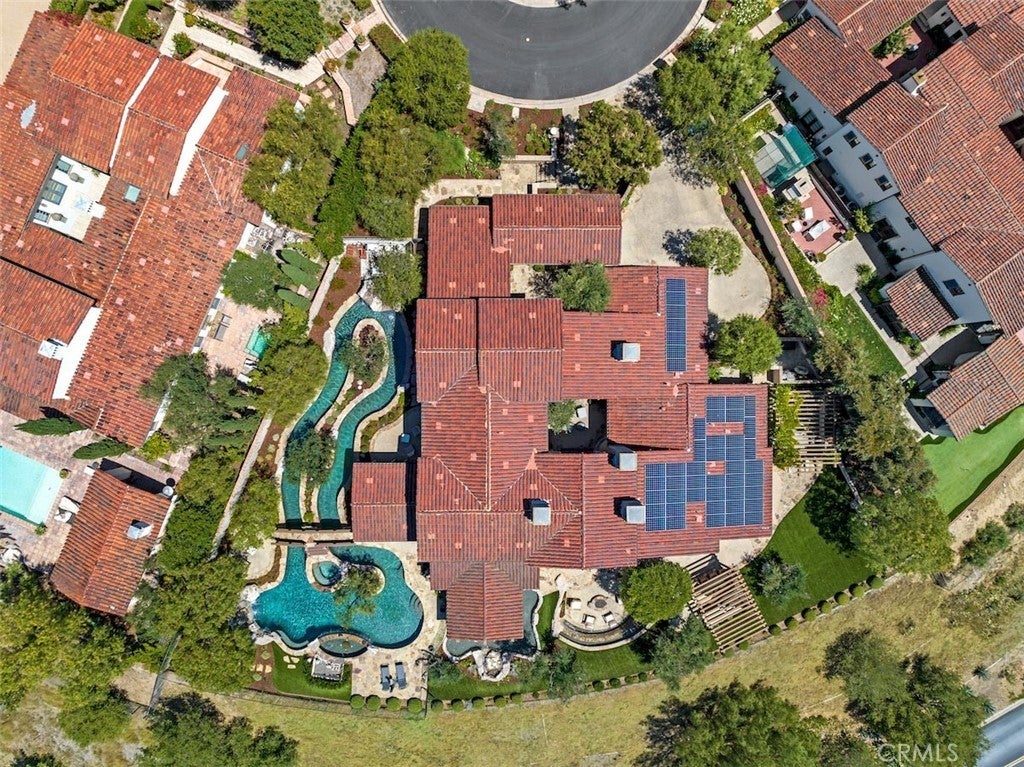 EXCEPTIONAL GOLF COURSE & CITY LIGHT VIEWS Reminiscent of new construction, this exquisitely renovated Master’s Collection residence is ideally positioned at the end of a short cul-de-sac on an over half-acre lot, capturing breathtaking golf course, rolling hill, and sparkling city light views. The five-bedroom, five-and-one-half-bath home has been thoughtfully transformed with refined finishes throughout, including warm hardwood flooring, curated designer lighting, elegant tile work, and detailed millwork that elevate every space. Resort-inspired grounds create a private oasis designed for both grand-scale entertaining and everyday indulgence. The extraordinary pool experience rivals a luxury retreat, featuring an elevated spa, lazy river, grotto, and tranquil waterfall - offering moments of play, relaxation, or both. The chef’s kitchen is a true centerpiece, appointed with top-tier appliances, bespoke cabinetry, and intentional design for both function and beauty. Adjacent living spaces provide seamless versatility: formal living and dining rooms open to a charming central courtyard through French doors; the family room and sunlit morning room frame the kitchen for effortless gatherings; and a custom-finished media lounge serves as a dramatic showpiece for elevated entertaining. The primary suite occupies its own expansive private wing on the second level. A spa-inspired bath anchors the retreat, complemented by dual walk-in closets - one currently configured as a private office. Additional highlights include a secondary bedroom wing with all ensuite accommodations, an attached guest casita with its own living room, and owned solar panels. Residents of Shady Canyon enjoy world-class amenities including two 24-hour guard gates, scenic walking and cycling trails, pickleball and tennis courts, a sports court, swim facilities, playground, and more - all moments from award-winning schools, UCI, and premier shopping and dining destinations.