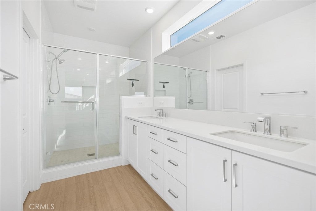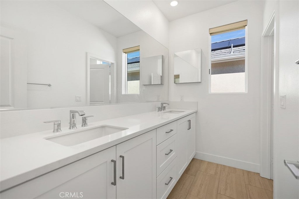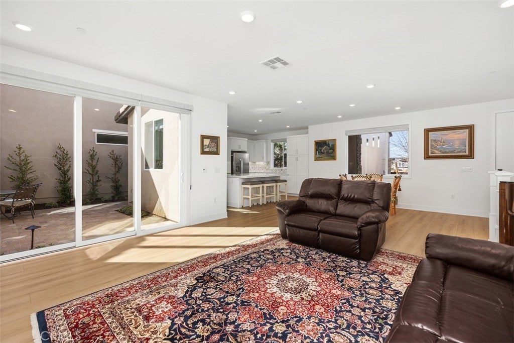 Discover the pinnacle of contemporary living in this exquisite brand-new 4-bedroom, 2.5-bath custom-built home by Lennar Homes, completed in late 2024 and located in Great Park. Entertain and cook effortlessly in the expansive gourmet kitchen, featuring a huge island, abundant counterspace, upgraded designer backsplash, all-new appliances, instant hot water on demand, and soft-close drawers and cabinets throughout. Custom-chosen appointments elevate every detail, with upgraded flooring on the main level and luxury carpet in the bedrooms. The adjacent large living room boasts one of two built-in large-screen TVs, ideal for relaxation and gatherings. Stunning three-panel sliding door opens to seamlessly blending indoor and outdoor living. The beautifully landscaped side yard—perfect for safe kids' play or family enjoyment—with automatic sprinkler system for easy upkeep. The home provides exceptional privacy with no houses directly in front or behind, a serene green belt walkway in front, and ample street parking just steps from the door. The luxurious master suite, featuring walk-in closet, a second built-in TV, and a private balcony offering beautiful sunset views. The master bath is a true retreat, features an oversized shower, instant hot water, and fine appointments for spa-like relaxation. Three guest bedrooms offer generous space, enhanced by ceiling fans and plush luxury carpet. Practical luxuries include a dedicated laundry room with new washer and dryer plus ample counterspace and cabinets; owned solar panels and Tesla Powerwall solar battery system; and a fire suppression sprinkler system. The spacious 2-car garage includes an EV charging port, second refrigerator, epoxy flooring, large storage area, ceiling storage racks, and cabinets. Ideally positioned, a huge community park lies just one block away with pickleball and tennis courts, a pool, expansive open grass areas for kids and pets, and activities for all ages. The renowned Great Park is less than one mile away, with easy access to Interstates 5, 405, and 133 Toll Road, nearby grocery stores and Home Depot, walking distance to Wild Rivers, a quick 5-minute drive to Irvine Spectrum Center, and just 15 minutes to John Wayne Airport. Combining premium custom finishes, thoughtful design, superior energy savings, unmatched privacy, and an unbeatable location in one of Orange County's safest communities, this move-in-ready Lennar home offers the ultimate Irvine lifestyle.