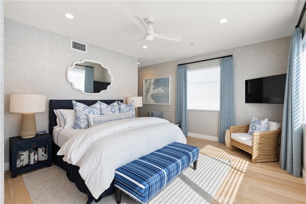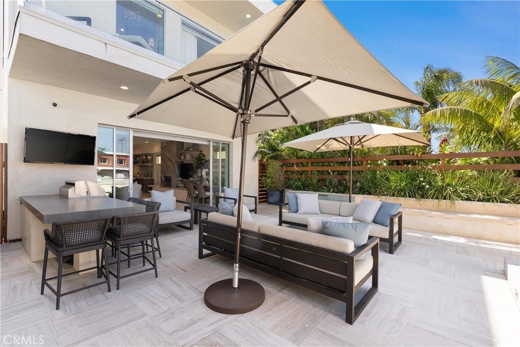 Embrace waterfront luxury in this stunning fully furnished, four-bedroom, five-bath contemporary residence spanning approximately 2,711 square feet in the heart of Newport Beach. Designed for seamless indoor-outdoor living, the open floor plan showcases exquisite limestone and wide-plank French oak flooring, 10-foot ceilings, and abundant natural light. Disappearing glass pocket doors effortlessly extend the living space to an expansive 770-square-foot waterfront patio, complete with a built-in BBQ island and a private boat dock accommodating up to a 35-foot boat and Duffy—ideal for enjoying the calm harbor waters. The chef’s kitchen serves as the centerpiece of the home, featuring professional-grade appliances, custom Italian cabinetry, Neolith Calacatta stone countertops, and a striking floating island designed for both everyday living and elevated entertaining. The primary suite offers a true retreat, highlighted by a spacious sitting area, spa-inspired bath with soaking tub, Neolith Calacatta-clad walk-in shower, and a private balcony spanning the width of the property. A desirable main-level bedroom with en-suite bath provides flexibility for guests, while two generously sized secondary bedrooms upstairs each feature designer-finished en-suite baths and walk-in closets. Located just three blocks from the beach, this exceptional beach-boat house is moments from award-winning waterfront dining, upscale shopping and entertainment at Lido Marina Village, and top-rated schools within the highly regarded Newport-Mesa Unified School District. Offering the rare combination of coastal walkability, premier amenities, and a private dock on the harbor, this residence captures the very best of Newport Beach waterfront living.