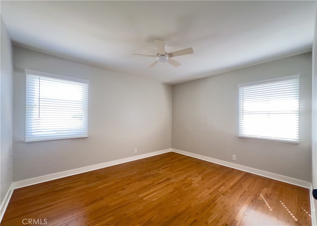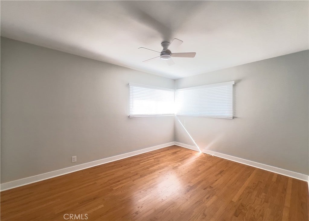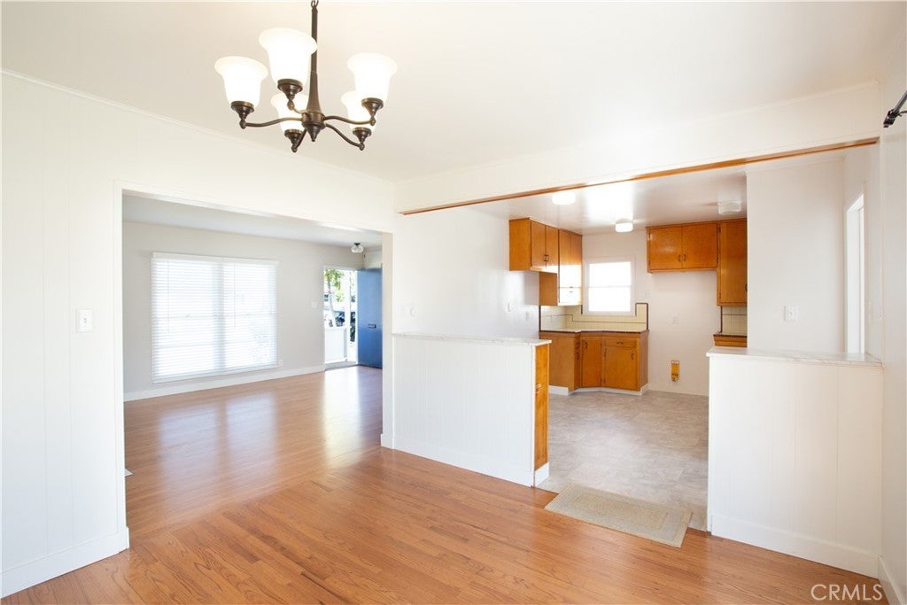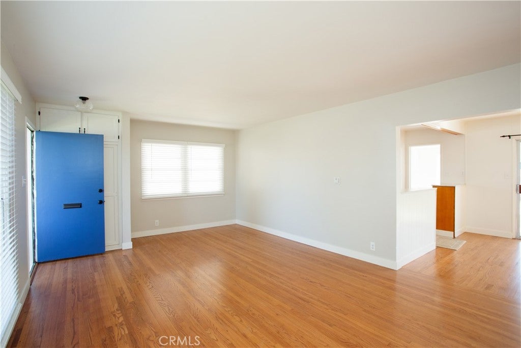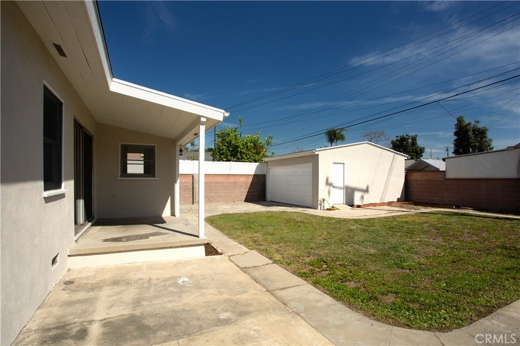 1953 mid-century era • Single-story ranch • North Bellflower near Downey border • Expanded open dining layout • Large fenced yard • Detached 2-car garage • ADU potential. Built in 1953, this single-story home offers classic mid-century era ranch construction with refinished original hardwood floors and a practical open layout. Recent updates include full interior and exterior repaint, sanded and varnished hardwood flooring, new porcelain kitchen sink, updated cabinet hardware and drawer pulls, reglazed tub and vanity, new ceiling fans, and new window coverings. The kitchen opens to an expanded dining area created from the original third bedroom, providing flexible open-concept living with sliding glass doors leading to the backyard. Interior laundry is located on the service porch with washer and dryer hookups available for both gas and electric. The fully fenced backyard includes a large covered back porch and substantial open space suitable for outdoor use, future expansion, or potential accessory dwelling unit (ADU) development (buyer to verify with city). Detached two-car garage at the rear features a newer roll-up aluminum door. Roof replaced approximately 15 years ago. Public record reflects original 3-bedroom configuration. Positioned in north Bellflower near the Downey border within the Downey Unified School District boundaries. Located near Simms Park, St. John Bosco High School, Kaiser Permanente Downey Medical Center, and The Promenade at Downey shopping and dining destination. Area access includes the San Gabriel River regional bike trail and convenient connections to the 91, 605, and 105 freeways.