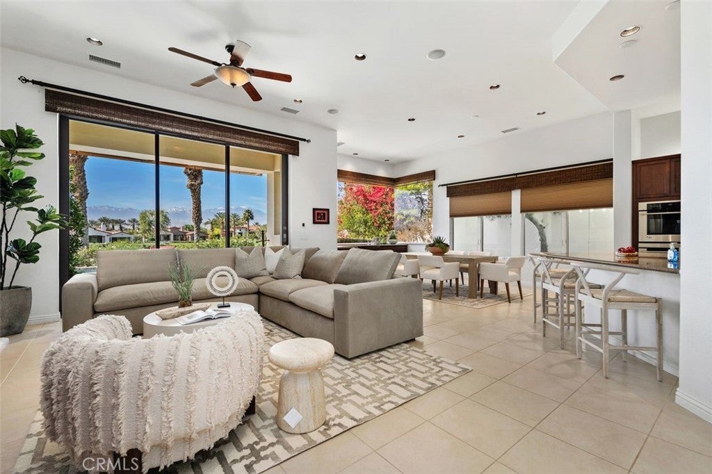 Located within the prestigious guard-gated community of Toscana Country Club in the heart of Indian Wells, this exceptional single-story residence offers resort-style living just minutes from El Paseo’s world-class shopping and dining and the renowned Indian Wells Tennis Gardens. Toscana Country Club provides an unparalleled lifestyle with two championship golf courses, pickleball and tennis courts, a state-of-the-art wellness center, fitness facilities, and a vibrant calendar of social and recreational activities. Situated along the 6th fairway of Toscana’s North Course, this highly desirable Model 622 residence offers effortless indoor-outdoor living with 4 bedrooms plus an office or den and 4.5 bathrooms. Designed around a spacious great-room concept, the home features a gourmet kitchen with rich custom cabinetry, granite countertops, an island with vegetable sink, and bar seating that seamlessly opens to the dining area and family room with fireplace—creating an ideal setting for both intimate gatherings and larger-scale entertaining. The primary suite is a private retreat with sliding glass doors opening directly to the backyard pool and jacuzzi, creating a true resort ambiance. The primary bath includes dual sinks and generous space for comfort and functionality. Three bedrooms and a den are located within the main residence, complemented by a detached casita offering a large guest bedroom and full bath—ideal for visitors or extended stays. Additional highlights include a three-car garage with epoxy-coated flooring and beautifully integrated outdoor living spaces overlooking the fairway, capturing the essence of refined desert luxury.