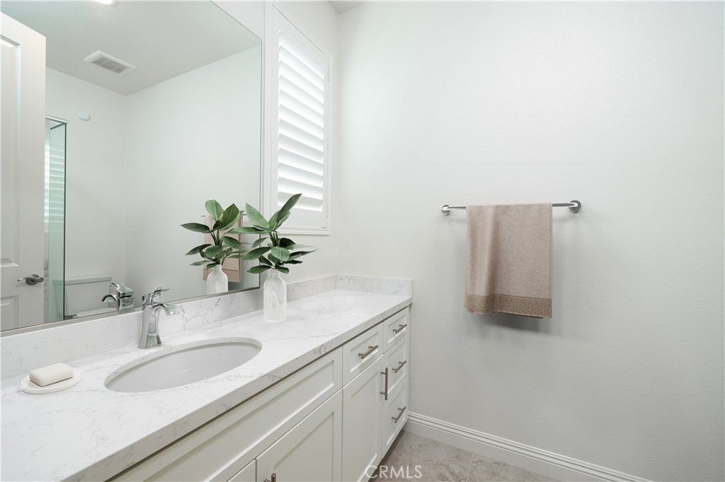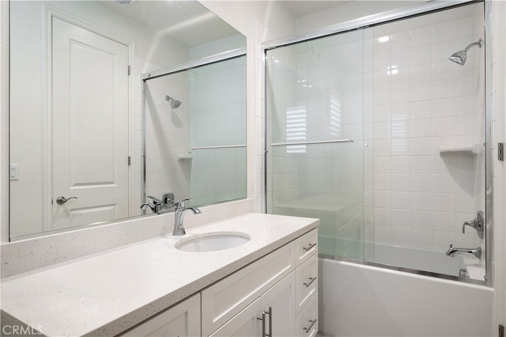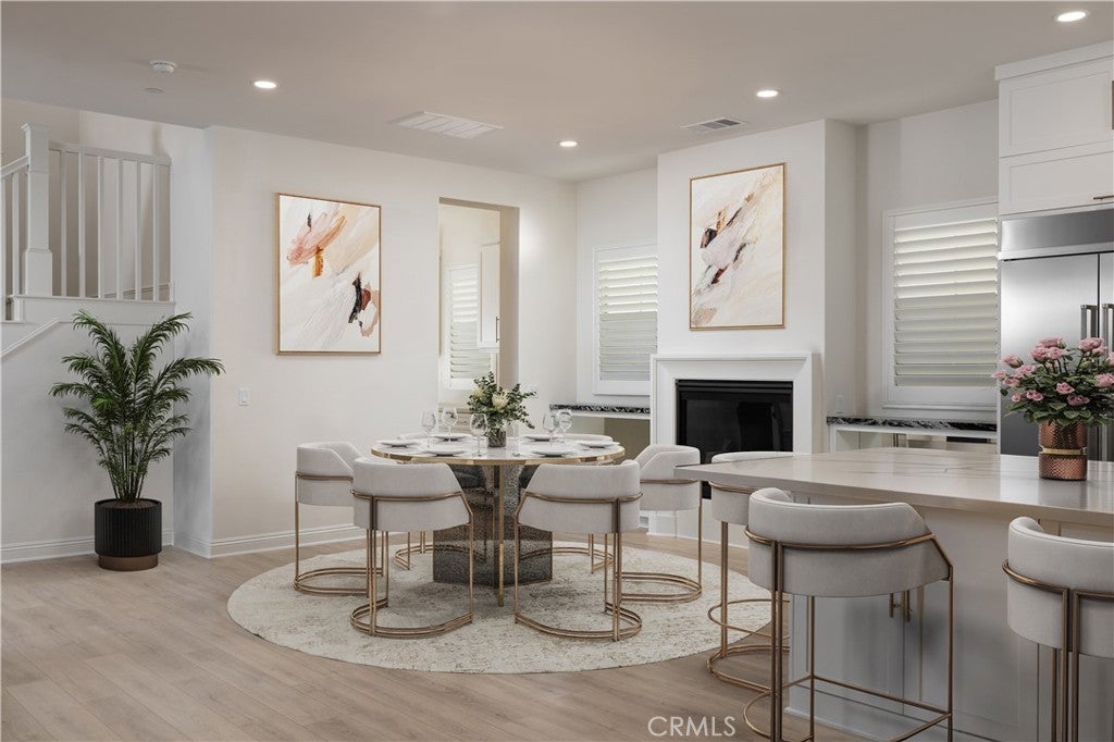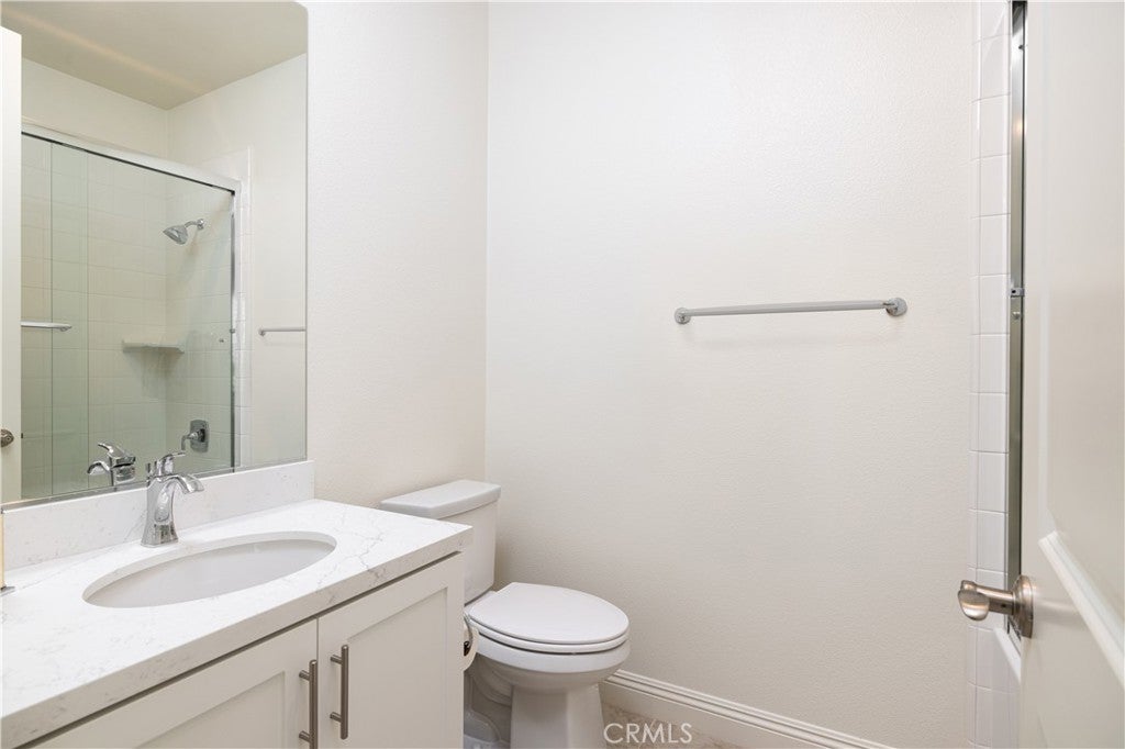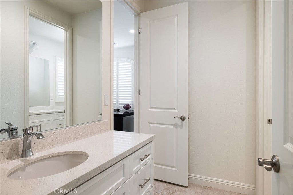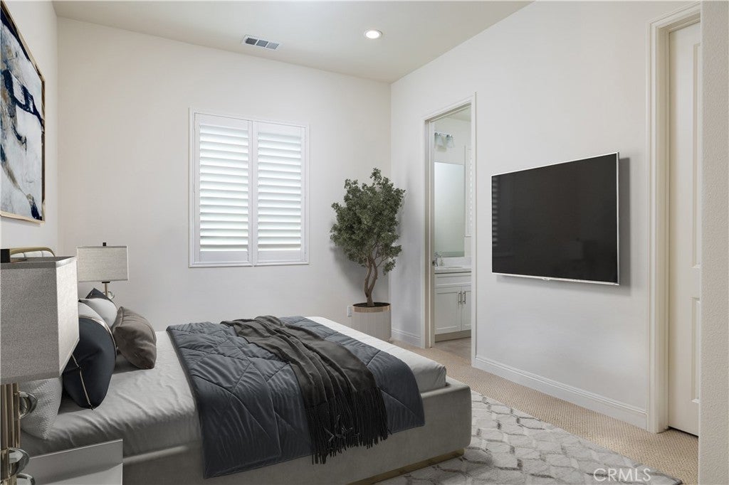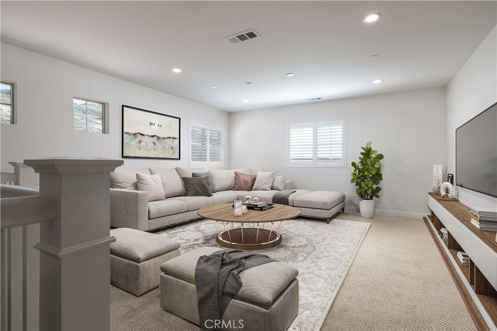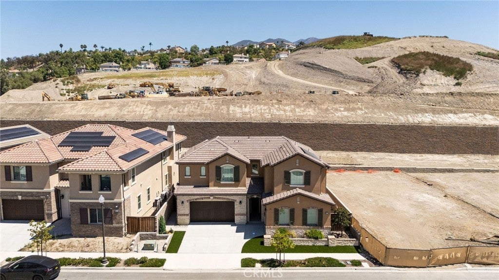 Newer construction (built in 2022), dramatic voluminous ceilings, two first-floor en suite bedrooms, and a versatile 5-bedroom-plus-loft floor plan define this exceptional residence in the gated community of The Oaks at Portola Hills. Designed for flexibility and modern living, the home blends fresh contemporary style with everyday comfort while offering the rare convenience of dual main-level suites. Under soaring ceilings, the great room opens through pocket sliding doors to the private backyard, creating a seamless indoor-outdoor connection. The kitchen features quartz countertops, a stone and porcelain mosaic backsplash, soft-close cabinetry, a large eat-in island, and a walk-in pantry plumbed for a beverage cooler. Commercial-grade KitchenAid appliances include a six-burner gas cooktop with built-in electric grill and two full built-in ovens—all complemented by a fireplace-warmed dining area with a custom lighted china cabinet finished with a granite top. Smart features include a motorized kitchen shade, solar screen at the California room, and three Enviroblind security shields—each with remote and manual operation. Waterproof rigid core luxury vinyl oak plank flooring, plantation shutters, and quartz finishes elevate the interiors. The main-level primary suite opens directly to the backyard and offers a spa-like bath with limestone slab-topped dual sinks, a walk-in shower, and a freestanding soaking tub. Upstairs, an en suite bedroom functions as a second primary, while a loft/media room provides additional flexibility for entertaining or a home office. Two additional bedrooms—currently configured as offices—feature updated baths with quartz finishes and glass enclosures. The backyard combines stone and turf for a low-maintenance retreat. Additional highlights include seller-owned solar, Honeywell-controlled systems, EV charging, instant hot water call buttons, and two garages: a finished two-car garage plus a separate one-car garage. Residents enjoy resort-style amenities including a pool, clubhouse, BBQ area, dog parks, sports courts, and over 1.5 miles of hiking trails, with convenient access to the 241 Toll Road and proximity to Irvine Spectrum.