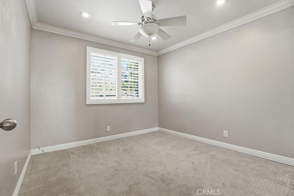 Beautiful three bedroom, two & half bath corner lot home, located in the highly desirable Robinson Ranch Community. Two car attached garage w/direct access. Gourmet kitchen is complete with granite counters, custom designer cabinets and recessed lightings. Family room leads to a large backyard, a perfect setting for relaxation and entertainment. Spacious master bedroom with walk-in closet, double vanity with granite countertop and master bath with travertine shower. Other features and amenities are double pane windows, ceramic tile flooring, crown molding, enhanced baseboards, soaring ceilings, custom plantation shutter, a cozy family room fireplace with custom Mantel, a separate main floor laundry room and ceiling fans. Home Community amenities include swimming pool, tennis court, pickelball courts, pool, spa, picnic area and playground. and Just minutes from top-rated schools, Rancho Santa Margarita Lake, multiple parks and shopping. Low HOA and No Mello-Roos.