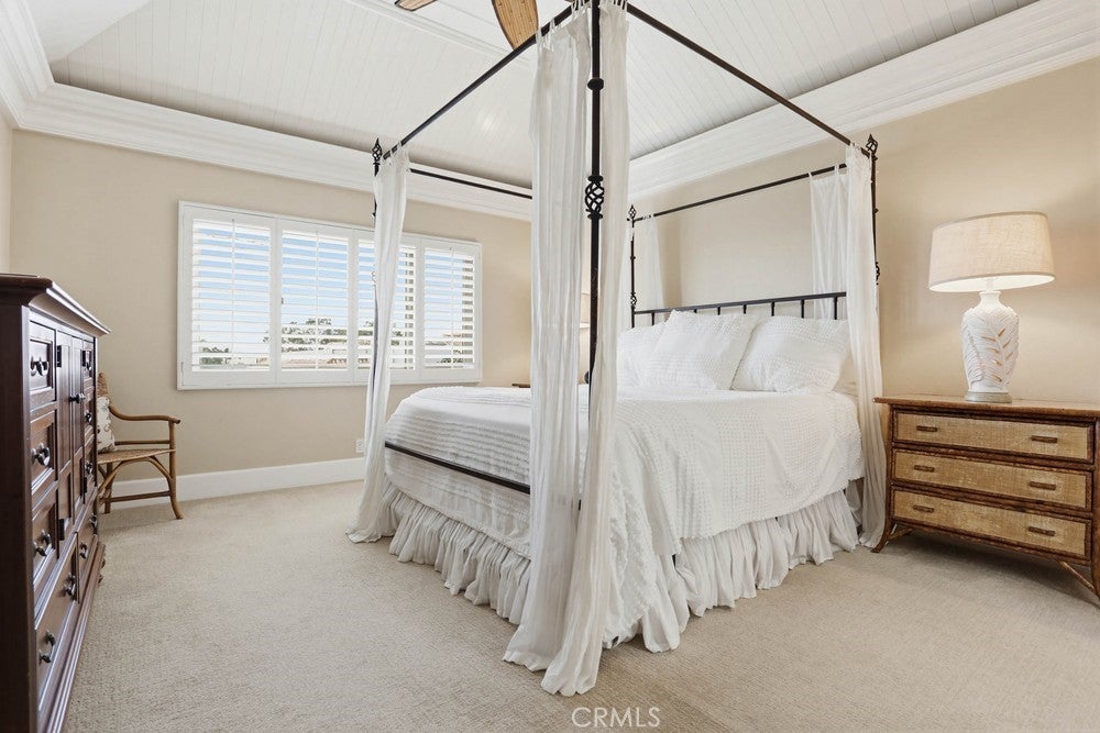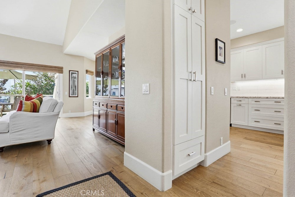 Welcome to Point Del Mar, an exclusive enclave of just 43 homes that rarely come to market, ideally situated in the highly sought-after coastal community of Corona del Mar. Inside, soaring ceilings and open, airy living spaces create a bright and inviting atmosphere, featuring four spacious bedrooms and three-and-a-half bathrooms. The primary suite offers a peek-a-boo ocean view along with a recently remodeled, spa-quality bathroom showcasing luxury finishes and a generous walk-in closet. A versatile, expansive bonus room provides the perfect space for a media room, gym, game room, or private retreat. Spanning approximately 2,580 square feet, 2661 Point Del Mar embodies spacious, coastal-casual living in a boutique neighborhood. The main living area features hardwood flooring throughout the living room, dining room and kitchen, while multiple windows flood the home with natural light and refreshing ocean breezes. Step directly from the main living area onto your private terrace, ideal for alfresco dining and outdoor entertaining. The thoughtfully designed layout offers separate living and dining spaces, creating a seamless flow for both everyday living and hosting guests. Additional highlights include plantation shutters, automated custom window treatments, elegant baseboards, and crown molding, every detail carefully considered. The upgraded chef-inspired kitchen is a culinary dream, featuring custom cabinetry, designer countertops, and stainless steel appliances, making it perfect for both daily living and entertaining. Outside, enjoy a large wrap-around entertaining yard with custom stone hardscape and lush landscaping, providing a private outdoor setting for gatherings and relaxation. The property also includes a two-car side-by-side garage. Located just minutes from some of Southern California’s most celebrated destinations, including Fashion Island, Corona del Mar Village, The Resort at Pelican Hill, Crystal Cove Promenade, and the coastal charm of Laguna Beach, this home offers an exceptional lifestyle in one of Orange County’s most desirable areas. 2661 Point Del Mar represents one of the most attractive price points in the area and an unparalleled opportunity to embrace elevated coastal living. Don’t miss your chance to make this exceptional Corona del Mar residence your own.