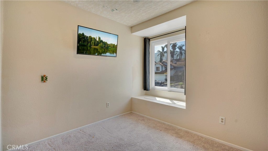 Welcome to 14702 Mountain High Drive, a spacious two-story home located in the established Southridge community of Fontana, CA. Offering 3 bedrooms, 2.5 bathrooms, and approximately 1,279 square feet, this home features one of the larger two story layouts in the neighborhood, creating strong curb appeal that stands out among the surrounding single story homes in the tract. Newer HVAC, solar, low monthly costs. NO HOA! Inside, the home features large format tile flooring throughout the main level and wood-look plank flooring upstairs, creating a clean and low-maintenance living environment. Brand new high-quality carpet has just been installed on the staircase and in the secondary bedrooms, giving the home a fresh and move in ready feel. The main living area centers around a whitewashed brick fireplace and a finished feature wall, creating a warm and inviting space for everyday living and entertaining. Interior shutters throughout the home add a polished designer touch while allowing for great natural light and privacy. The kitchen features granite countertops and stainless steel appliances and opens directly to the main living area, making the space functional for daily use and gatherings. Both bathrooms have been refreshed with new vanities, adding a clean and updated touch. Newer central air conditioning and heating provide year-round comfort and efficiency. All three bedrooms are located upstairs, providing privacy and separation from the common living areas. Situated on a nearly 4,000 square foot lot with a low-maintenance yard, a two-car attached garage, and an extended driveway for ample parking. Southridge is one of Fontana's most established neighborhoods, close to parks, schools, shopping, and dining. Minutes from the 210 and 15 freeways with easy access to Rancho Cucamonga, Ontario, and the greater Inland Empire. No HOA. Two-story homes with this square footage, newer HVAC, and updated finishes rarely come available at this price point in Southridge.