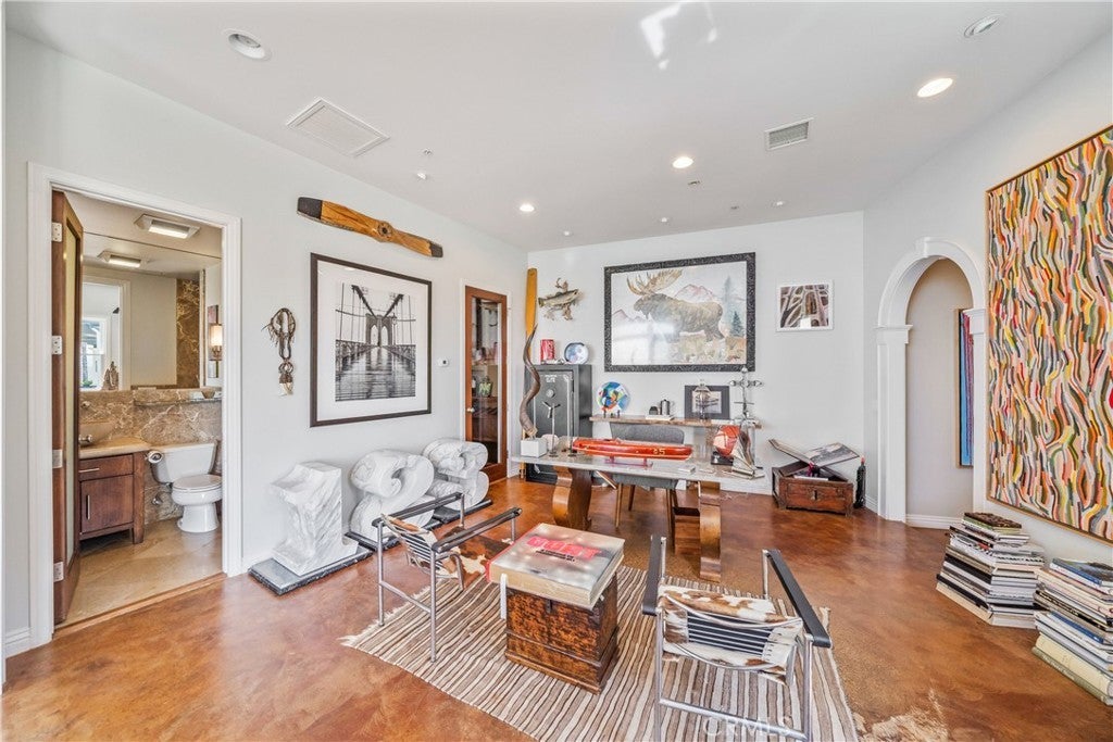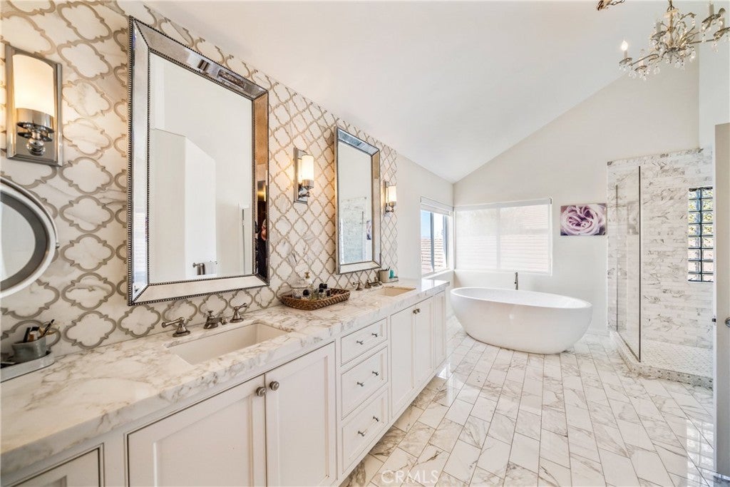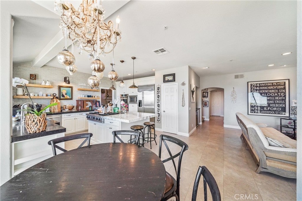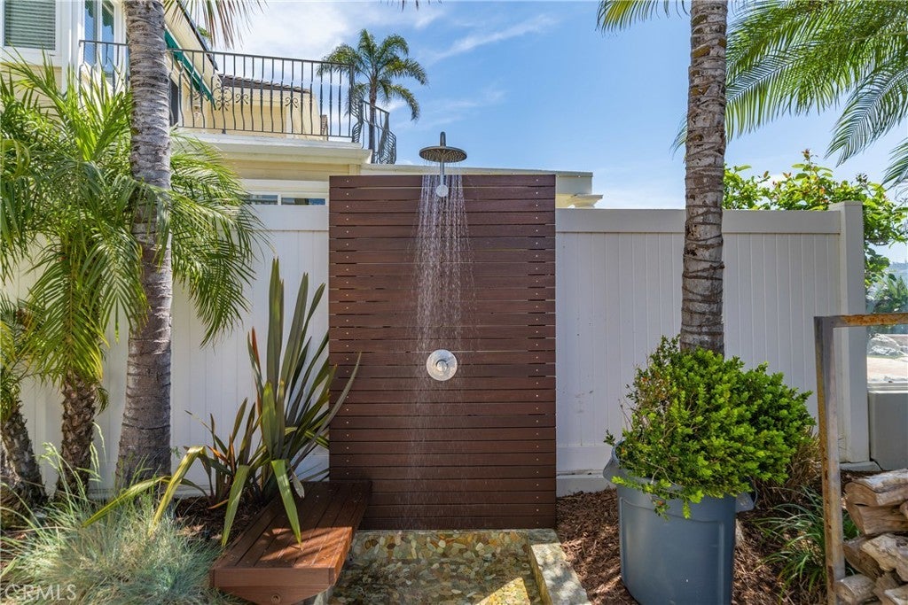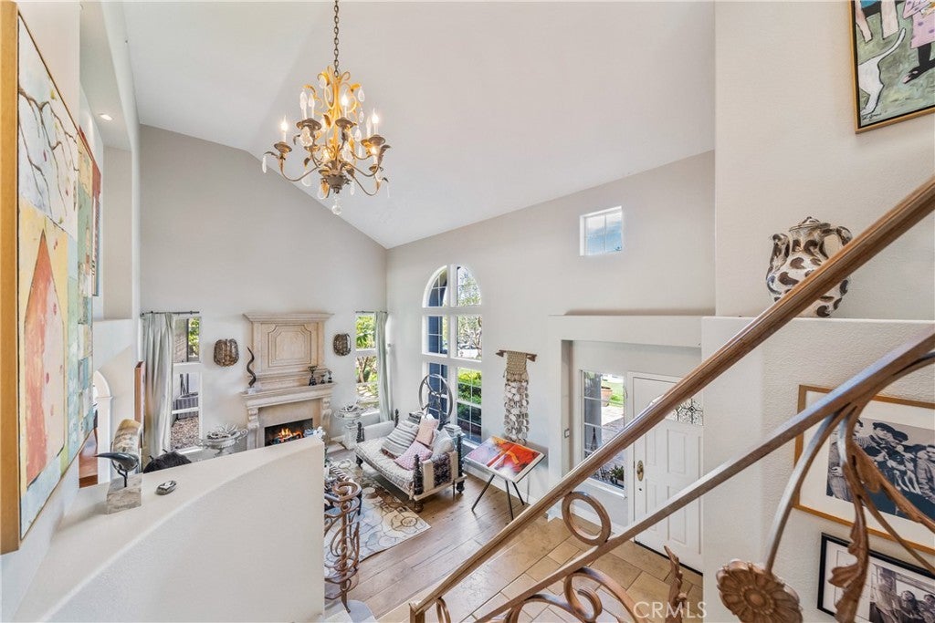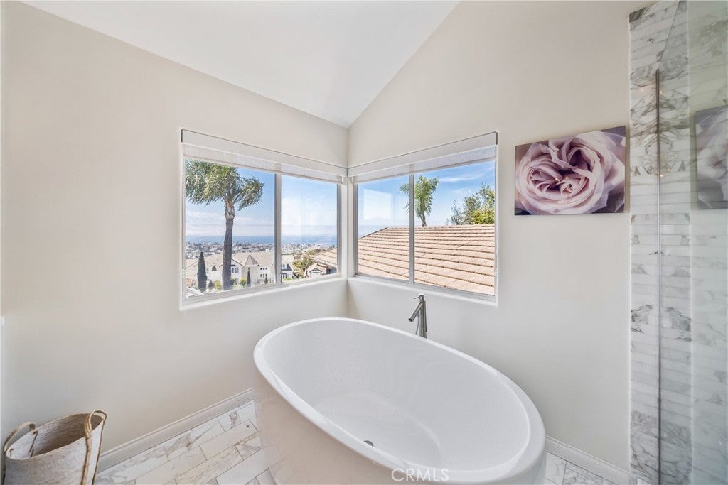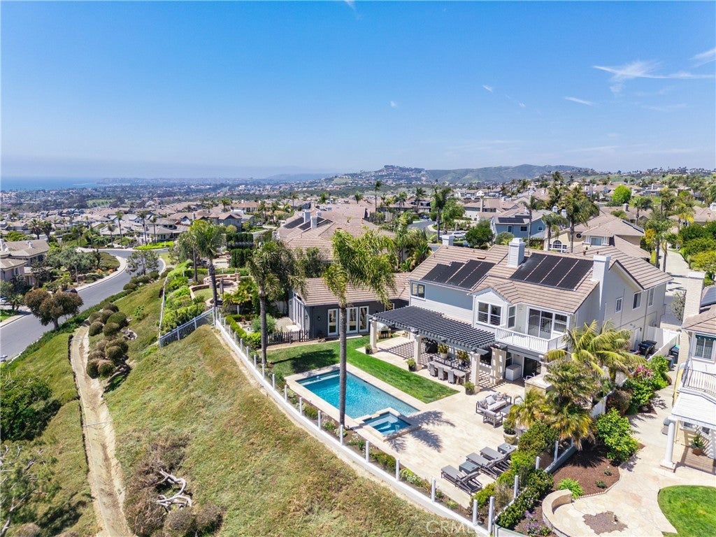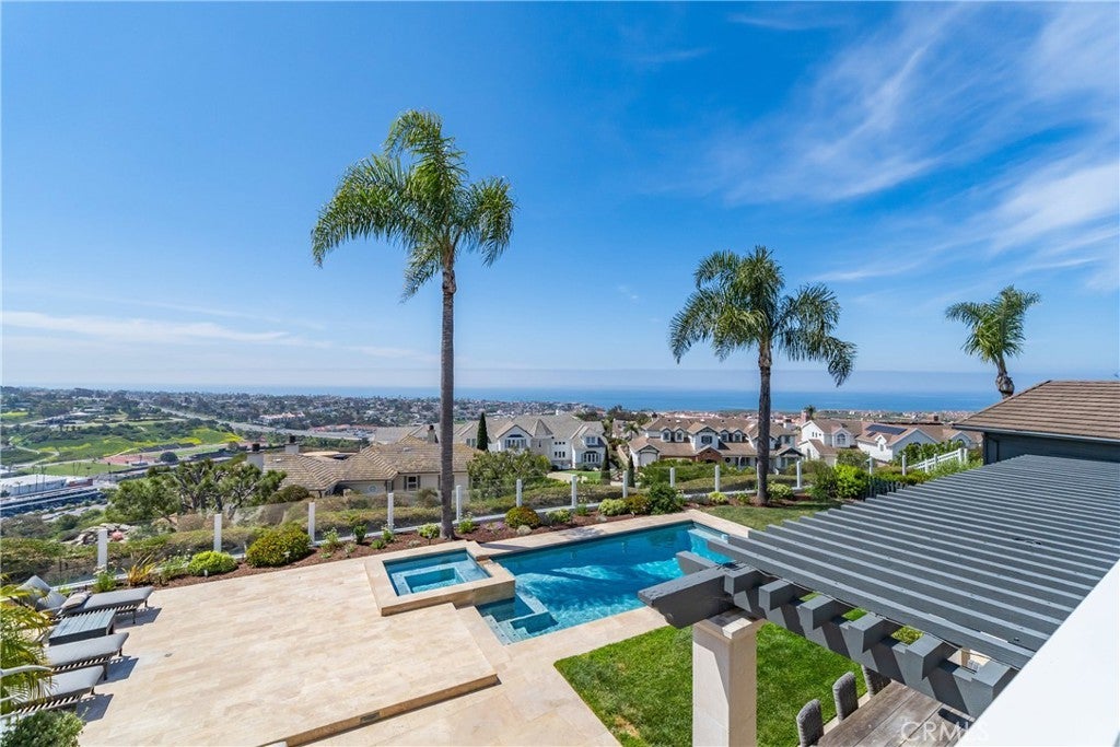 This light filled home is set on a premier San Clemente terrace, with sweeping 180 degree ocean, Catalina Island, and city light views in a refined coastal setting. This private enclave is a thoughtfully designed 4409 sq ft estate, featuring 5+ bedrooms and 6 bathrooms. A Dakota stone pathway leads past Cypress and a majestic olive tree, setting the tone of timeless European influences with quintessential Southern California style. Inside, a voluminous entryway with limestone and custom ironwork handrail, leads to vaulted ceilings, carved stone fireplaces, and generous living spaces with seamless indoor outdoor flow. The sunny attached casita, with ADU possibilities, has a private entrance, full bath, and temperature controlled wine room that is ideal for guests, creative use, wine pairing, or a wellness studio. The panoramic ocean views are on full display from most every room. The eat in family kitchen is cooking, showcasing top tier appliances, a statuary marble island, honed black marble countertops, a large pantry and open wood shelving. Even the kitchen sink has amazing views. Off of the kitchen is a den/tv room with an amazing hand carved fireplace, wine fridge and more sit down ocean views. A second, main level guest suite with full bath adds flexibility for all. The formal living room soars with 22 foot ceilings, walls of glass, and another amazing hand carved stone fireplace. The dining room offers perfect ocean views. The primary suite is a true retreat with commanding ocean views a custom built walk in closet, and glass doors that open to a breathtaking sundrenched deck with panoramic ocean views. The primary bath is a luxurious retreat with custom stonework, and a soaking tub with more ocean views. Outside, enjoy an expansive French limestone patio with French limestone columns under a huge shade trellis. Towering palms frame the solar heated French blue pool with waterfall spa and the custom Dakota stone and limestone finished fireplace. A sleek glass back fence offers unobstructed views. The teak outdoor shower adds a luxurious resort touch. Located at the end of a quiet cul-de-sac within the prestigious guard-gated community of Marbelhead, this home offers a 3 car garage and 3 additional parking spaces in the driveway. Moments from world class beaches, restaurants, shopping, schools, and recreation. This is a rare coastal soul offering combining elegant craftsmanship, ocean view serenity, and resort caliber amenities.
