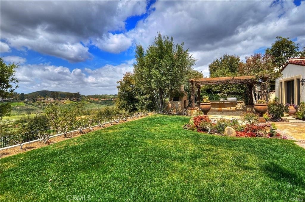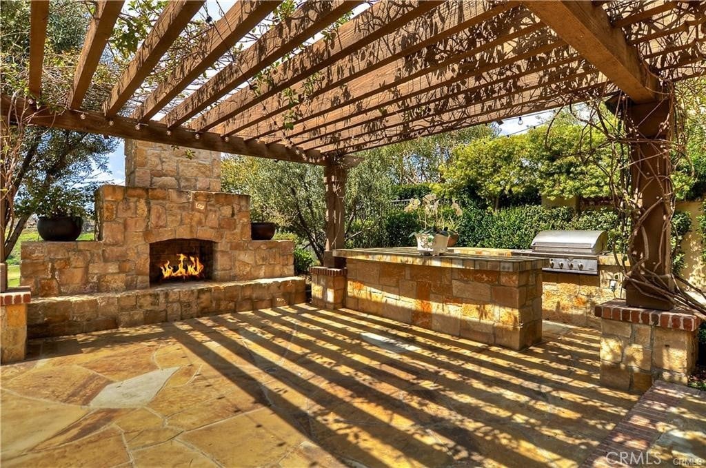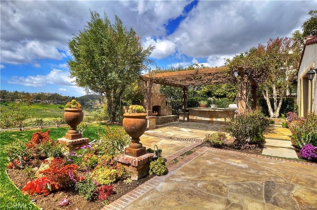 This gorgeous single-story estate in Shady Canyon has spectacular views of golf course, lake. city light and breathtaking rolling hills. The open floor plan offers 4 bedrooms and 4.5 baths. The spacious master bedroom sits in the middle of two large rooms, one with a sitting area, bookcase, and a cozy fireplace perfect for your relaxation, and another great for an office or exercise room. The immense great room has vast ceilings with wood details and large windows showcasing the spectacular views. The large kitchen opens to tranquil outdoors a beautiful Solid wood gazebo, a cozy fireplace, a relaxing sitting area, bar, and barbecue. The large dining room could accommodate many guests and a wine cellar. Wood flooring throughout and too many upgrades to mention. Gorgeous outdoors and large front sitting area and the serene interior courtyards. Whether you take pleasure in outdoor activities, hiking, biking, or golfing, Shady Canyon is perfect for you. Association amenities include tennis, pool, spa, and more. Having two gates that connect you to Newport Coast/Newport Beach, Laguna beach, freeways 405, 5, 73, and 133, makes it so convenient to drive anywhere with ease. Shopping area, restaurants, the famous Spectrum are all so conveniently close.