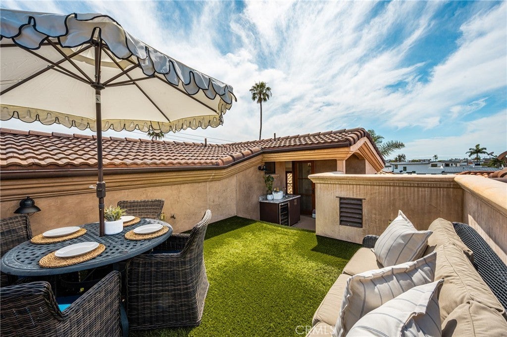 A rare offering in the heart of Corona del Mar Village, this expansive 3-bedroom residence captures the essence of European-inspired living where indoor and outdoor spaces flow seamlessly. Just a short stroll to the beach, boutiques, and some of CDM’s most loved restaurants, the lifestyle here is both elevated and effortless. Built in 2014 on a coveted 45-foot-wide parcel- significantly wider than the typical Village lot—the home offers a level of privacy, scale, and volume rarely found in this setting. Spanning approximately 1,750 square feet, it lives more like a front-unit residence, with generous proportions and thoughtful separation throughout. Freshly updated with a bright, airy aesthetic, the interiors are filled with natural light, enhanced by vaulted ceilings and the home’s exceptional width. Polished marble flooring, a designer-refreshed kitchen, and a cohesive neutral palette create a refined yet relaxed feel. Outdoor living is a true standout. A rare “triple loggia” layout offers three distinct outdoor spaces, including an oversized ~300 sq ft loggia ideal for dining and entertaining, a view deck, and a private spa terrace with jacuzzi—creating a layered indoor-outdoor experience reminiscent of a European retreat. The 3-bedroom, 3-bath layout offers ideal separation for guests and everyday living, making this home a true sanctuary in the Village. A unique opportunity to enjoy the scale, craftsmanship, and lifestyle of a larger residence and just moments from everything that makes CDM so special.