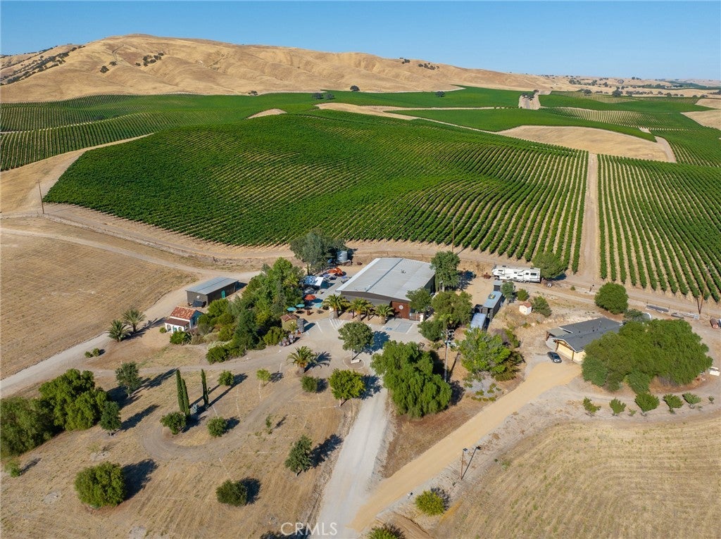 Discover a remarkable 97± acre winery estate in San Miguel, nestled in the esteemed Paso Robles AVA. This family-owned vineyard, established in 1996, features 37.50± net vineyard acres producing premium varietals, including Cabernet Sauvignon, Merlot, Petite Syrah, and more. The property is sustainably operated with two on-site wells (irrigation and domestic) and a solar system installed in 2024. Conveniently accessed via the county-maintained Cross Canyons Road, this estate offers both modern amenities and the charm of wine country. The 9,000± sq. ft. production building, built in 2021, includes a 6,000± sq. ft. fermentation area, 3,000± sq. ft. barrel storage, and a covered crush/work pad, with permits for 75,000-case wine production. The adjacent 5,500± sq. ft. climate- controlled tasting room features a climate-controlled event space, a 2,500± sq. ft. outdoor patio, and stunning vineyard views. Residential accommodations include a guest cottage with a kitchenette and outdoor BBQ area, plus a 4-bedroom, 3-bath manufactured home with a covered patio. Additional amenities include a storage building, two RV hookups, and dry camping spots. The property also holds a Wi-Fi tower lease for high-speed internet and a billboard lease along Highway 101. Expansion opportunities include permits for an additional 9,000± sq. ft. production building, 6,000± sq. ft. storage building, and 4,500± sq. ft. multi-use facility. Zoned agricultural, the estate also offers subdivision potential under current regulations. This versatile estate is perfect for winemaking, hospitality, and agritourism, embodying the best of Paso Robles wine country living.