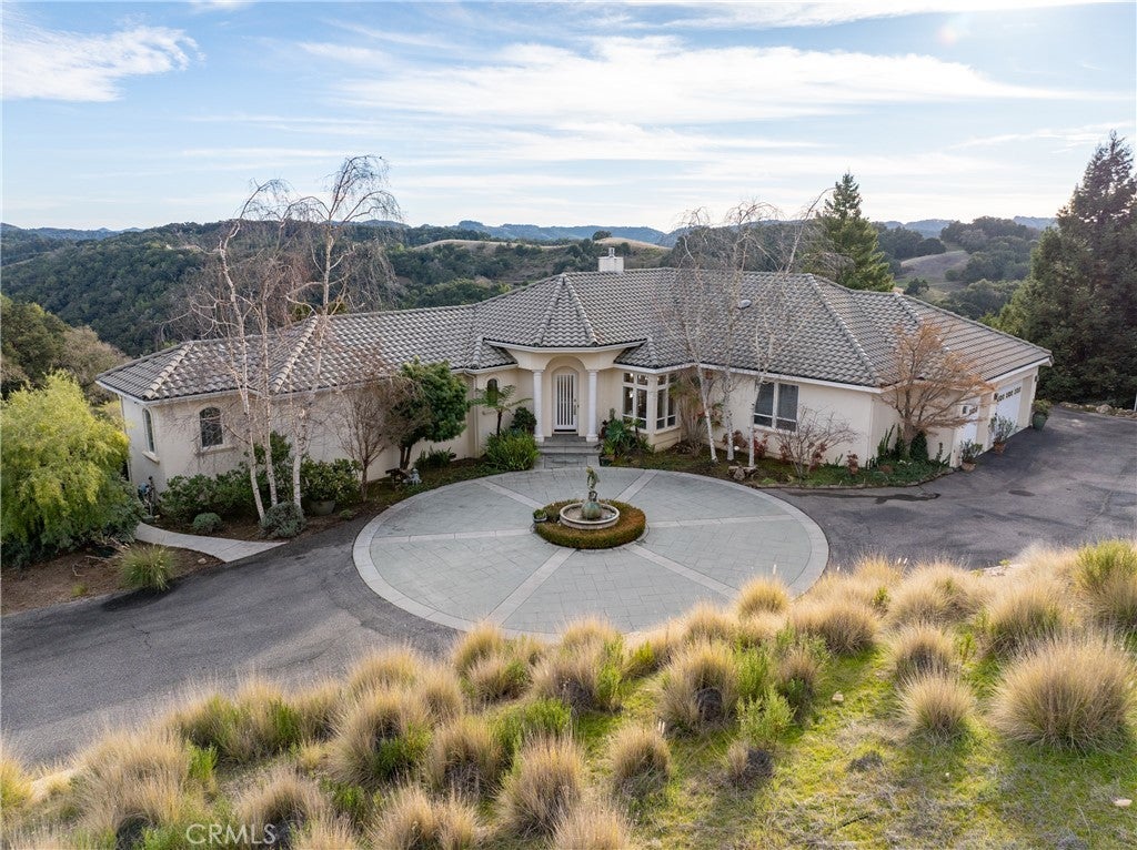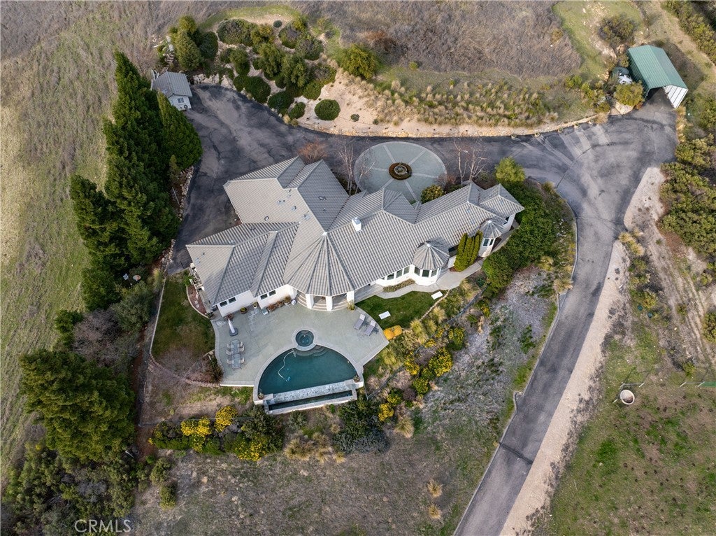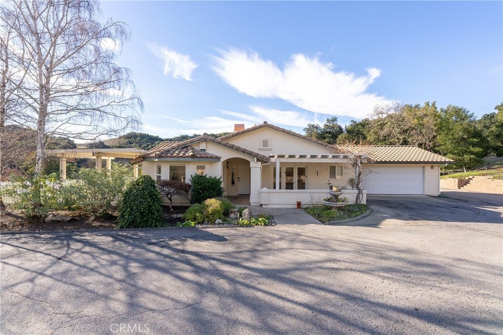 Welcome to Rancho Notso Grande! Nestled high on a hill overlooking the breathtaking Paso Robles countryside, this remarkable 20-acre estate features two homes, offering an ideal setup for multi-generational living or a lucrative investment opportunity. Surrounded by world-class vineyards and located just a short drive from Paso Robles, Templeton, Cayucos, and Cambria, this property blends elegance, functionality, and stunning views. The main home, is a luxurious single-level retreat currently operating as a highly rated AvantStay short-term rental. The open-concept design boasts vaulted ceilings and a welcoming living area centered around a cozy fireplace. Inside, the main living room features large windows that bathe the space in natural light while framing awe-inspiring vistas. The entertainer’s dream kitchen includes double ovens, a Dacor warming drawer, custom cabinetry, a walk-in pantry, a temperature-controlled wine room, and a solar tube for added light. The primary suite is a bright sanctuary with a spacious closet, ample natural light, and an en-suite bath featuring a soaking tub and separate shower. Three additional bedrooms offer plenty of accommodations for family or guests. Outside, the expansive patio leads to an infinity pool, a hot tub, and a built-in gas BBQ, where you can unwind and take in the rolling hills and valleys. Solar power and a Tesla battery backup ensure efficiency and reliability and equipped with a whole-house generator, this home ensures power during any outage, providing peace of mind and convenience by powering the entire home when needed. The second home, located at 4344 Shadow Canyon, is a beautifully remodeled 3-bedroom, 2-bath residence with modern upgrades, including new stainless steel appliances, stone countertops, and soft-close cabinetry. The primary suite offers a large walk-in closet, outdoor access, and a sleek en-suite bath. Additional features include a bonus room off the garage, a spacious indoor laundry room, and its own meter for electricity with Tesla battery backup. The landscaped yard includes fruit trees and vinyl fenced yard area with grass and covered patios. This estate also offers a covered RV area, a golf cart garage, and numerous additional amenities, making it a versatile and exceptional property. Whether you're seeking a luxurious lifestyle, a family compound, or an income-generating opportunity, this unique estate is sure to impress.