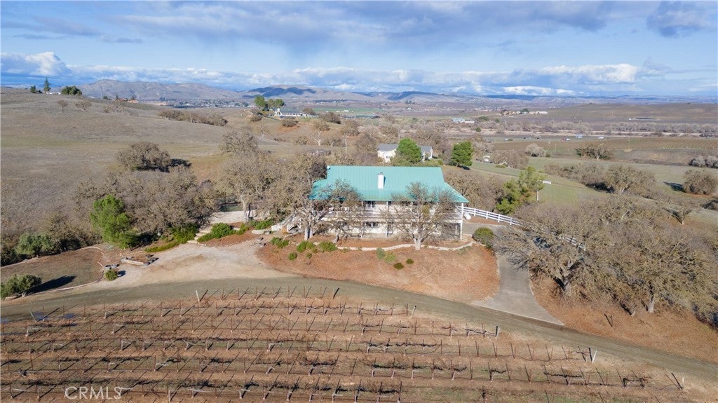 Nestled within the rolling hills of Paso Robles, 390 San Marcos Road is a stunning 64+/- acre vineyard estate featuring two residences. Both homes are currently licensed and operating as vacation rentals. The primary residence is a 2,700+/- sq. ft. ranch-style home, offering 3 bedrooms and 3 bathrooms. A spacious wraparound porch invites guests to take in panoramic views of the vineyard and surrounding countryside. The second home, located at 380 San Marcos Road, is a charming 1,900+/- sq. ft. property with 3 bedrooms and 2.5 bathrooms. It also boasts a private, covered porch—an idyllic spot to enjoy Paso Robles' breathtaking summer evenings. The estate includes an established 10+ acre vineyard planted with Cabernet and Syrah vines, which gracefully weaves through the property. Additionally, a 2,000 sq. ft. metal shop supports the vineyard's day-to-day operations. With ample remaining acreage, there is plenty of space for equestrian enthusiasts to build a barn or arena. Whether you're an investor seeking a profitable income property or looking for a multi-generational family estate, June Vineyard offers a solid foundation for the next owner to make this beautiful property their own.