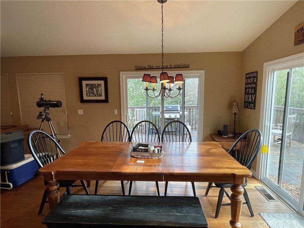 Wonderful private location nestled amongst the Trees next to the Lake. Undivided interest in a beach lot which affords you to keep your private boat dock not just below your home but as lake recedes allows you to move it out over the beach below. Tastefully updated home with newer carpet, paint, roof, and floors. There are three bedrooms, two with a view of the lake, two full baths, and a bunk room (game room) to accommodate many guests. The large deck is suitable for family gatherings on the Shady side of the house for those comfortable summer evenings. There is a two-car garage that has an 8' overhead door and is 23' deep with an easy sloping driveway to store your boat.