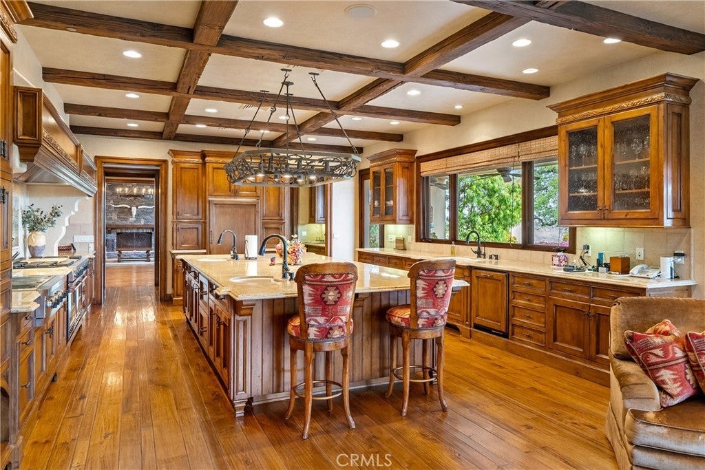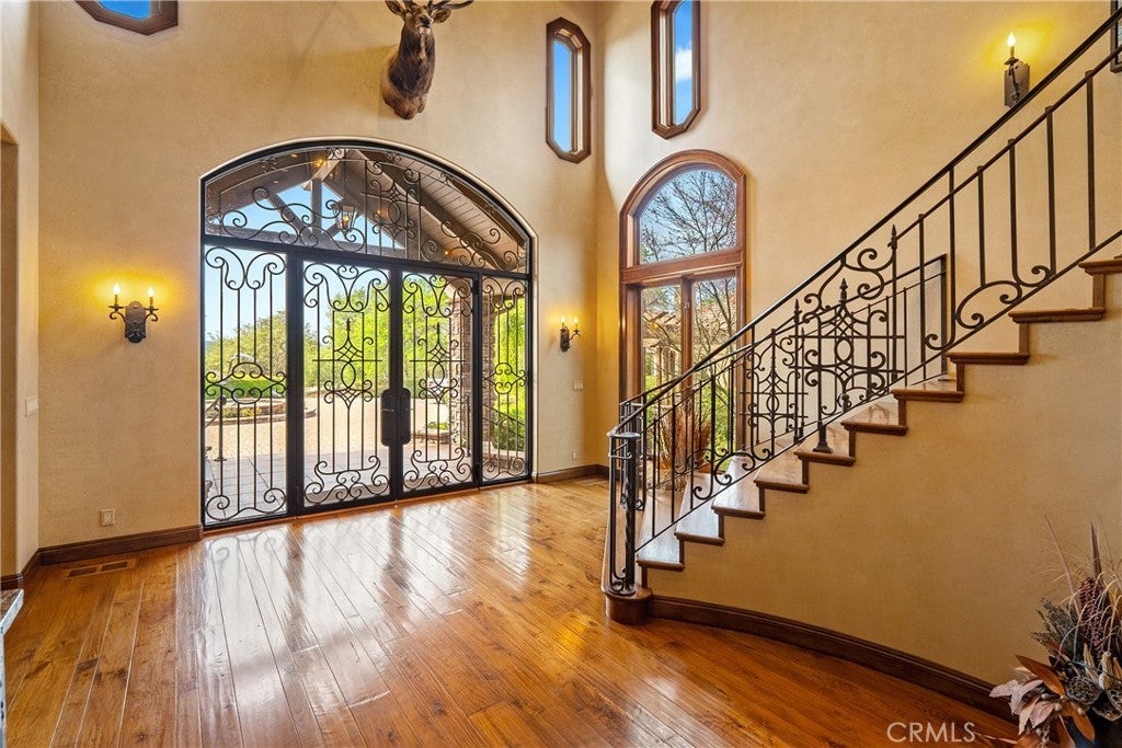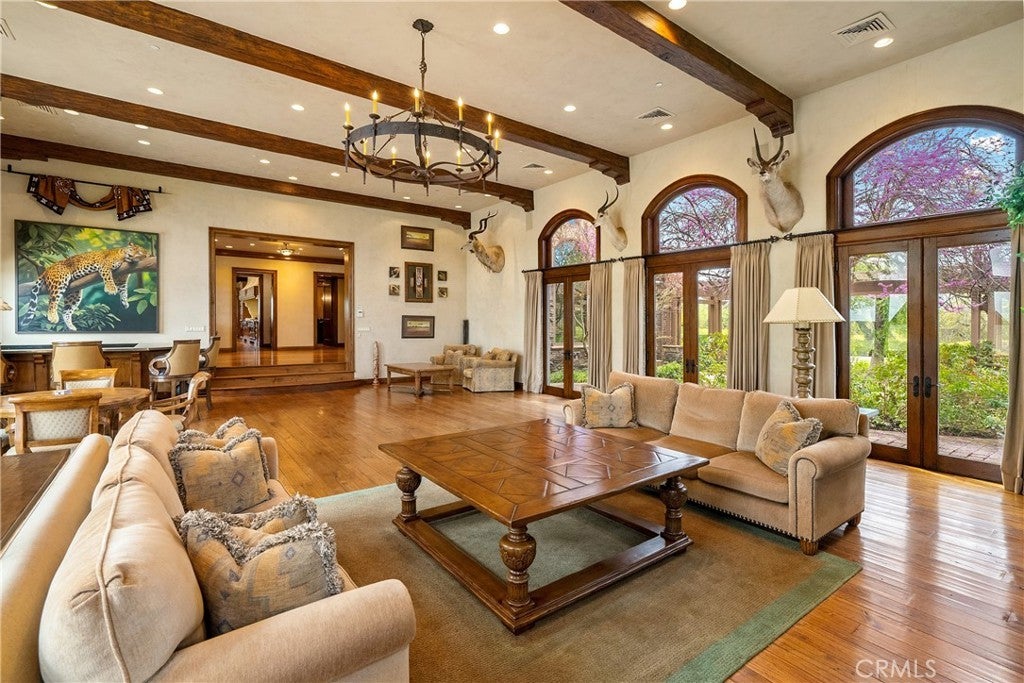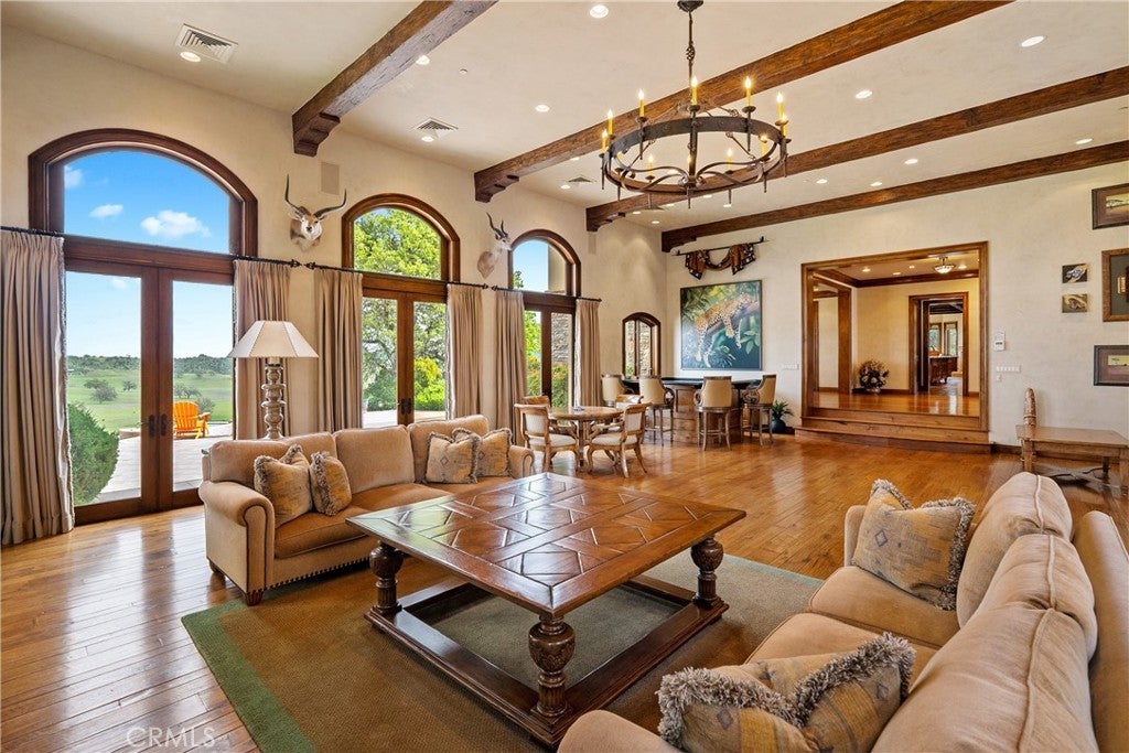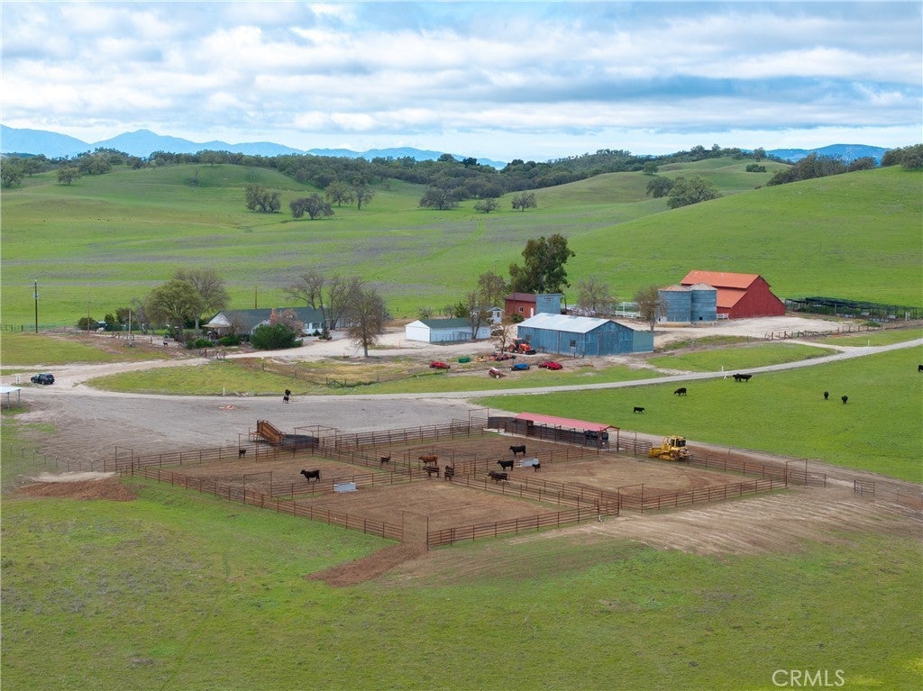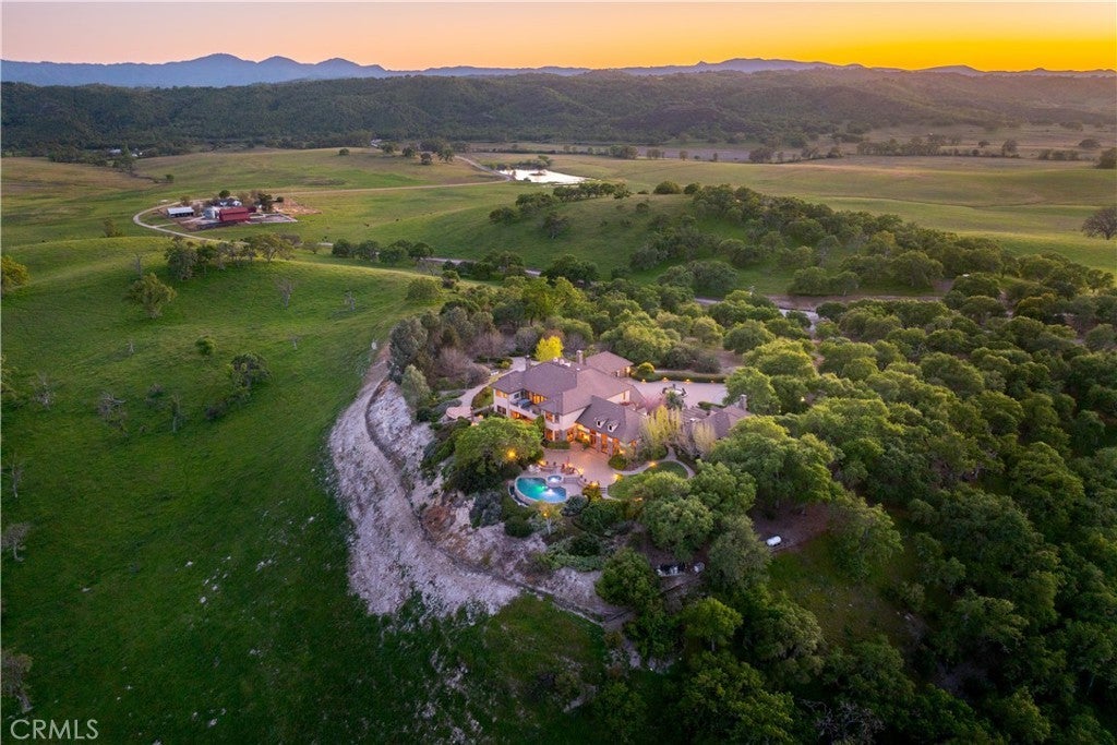Nestled in the heart of Monterey County, Rancho San Bartolome offers an unparalleled blend of luxury and rustic elegance. Perched atop a breathtaking hill with sweeping views of rolling hills, this 3,044± acre cattle ranch offers the best of both worlds: extreme indoor luxury and outdoor extravagance. Situated northeast of Paso Robles, in the heart of the Central Coast Wine Country, this iconic estate provides a serene setting for those seeking a refined countryside lifestyle. The main residence, an 8,132± sq. ft. English Tudor-style manor, spans the entire second floor with a master suite that takes full advantage of the panoramic views. Wake up to spectacular sunsets from bed, overlooking the infinity pool, or take a soak in the private hot tub on the master patio balcony. The master suite features two expansive walk-in closets, a bar, laundry, and a workout room. With floor-to-ceiling closets, Juliet balconies, and every detail designed for comfort, this home epitomizes luxury living. Additional guest accommodations include two charming guest cottages, two ranch hand homes, and a “cowboy house” that sleeps four. Rancho San Bartolome is a working cattle ranch with a brand new cattle corral, tack barn, grain silos, and a temperature-controlled meat processing area. With abundant wildlife, including Tule Elk, roaming the land, the estate is also a paradise for hunters. The property is equipped with a fire station housing a working fire truck, an African safari lodge-themed boardroom, barns, various agricultural buildings, and multiple gazebos for enjoying the outdoors. The estate is designed for both relaxation and entertainment, with two swimming pools, a chapel, a vegetable garden, and numerous fruit trees. The safari-themed San Bartolome Boardroom, with mechanical drop barn doors, a full bar, and a bathroom, provides a unique setting for casual gatherings, wildlife viewing, or skeet shooting. A private paved road leads to the compound, where cobblestone paths and a 4-car garage complement the home’s majestic hilltop setting.The property is under a Williamson Act contract, preserving agricultural use while benefiting from reduced property taxes. This turnkey property has undergone significant improvements over the last year, making it an ideal retreat for those seeking a gentleman’s ranch, with operational cattle facilities, hunting grounds, and luxurious living spaces.