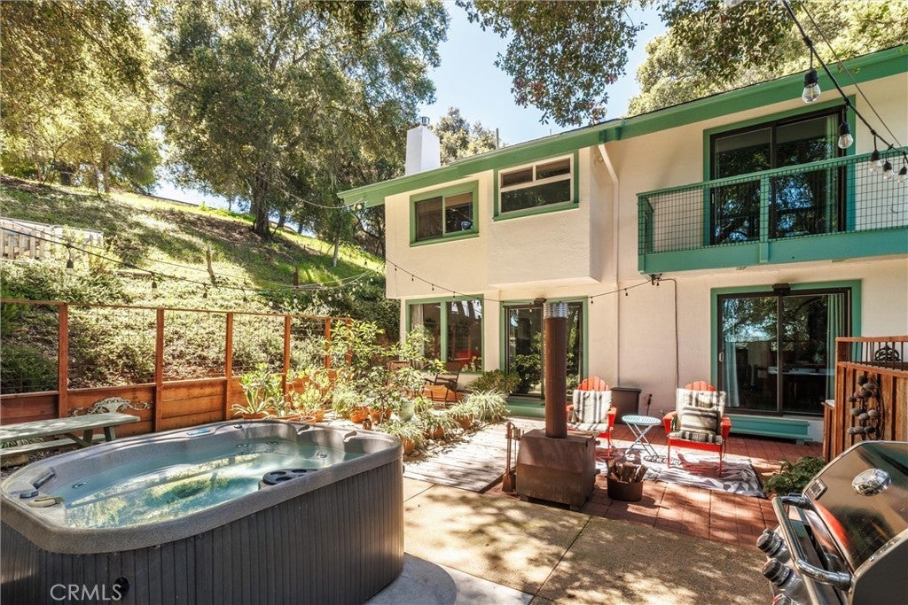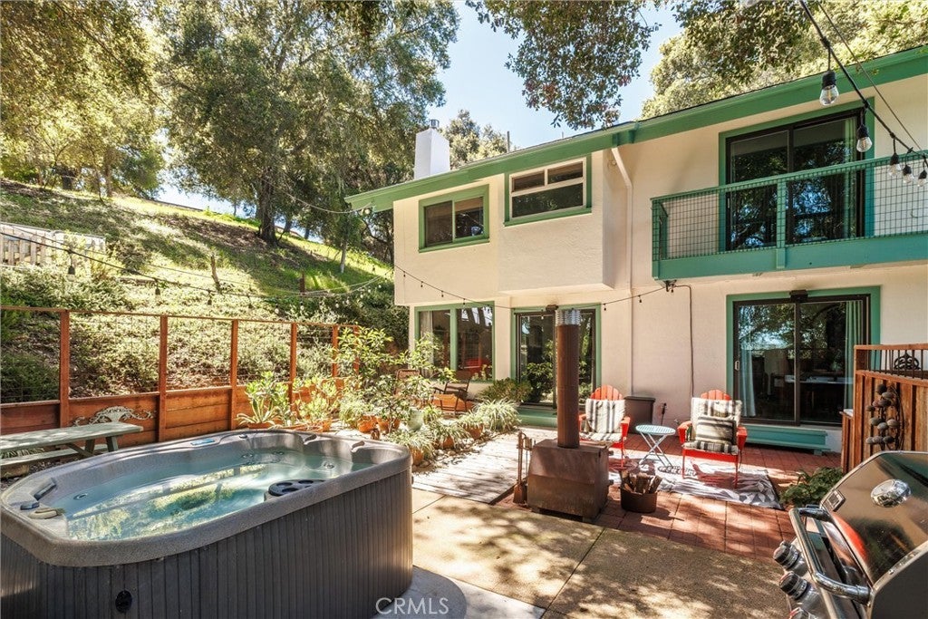 Welcome to Shangri-La! A Tranquil Retreat in the Las Encinas neighborhood of Atascadero. Tucked away in the serene oak-studded hills of northwest Atascadero, this magnificent 3-bedroom, 3-bath home offers a rare blend of privacy, natural beauty, and comfort. Located in the highly desirable Las Encinas neighborhood, this two-story gem sits on a picturesque 1.5-acre parcel teeming with wildlife and scenic views. Step inside and be greeted by expansive picture windows that flood the home with natural light and frame the surrounding forest like living art. A cozy rock fireplace anchors the spacious living room—perfect for winding down on cool Central Coast evenings. The primary suite opens onto private decks where you can take in the treetop views, and a stunning rooftop patio provides an idyllic spot to enjoy morning coffee or a sunset glass of wine. The secluded main-level patio features a soothing hot tub and woodstove, offering year-round outdoor enjoyment. Additional features include a dedicated workshop, meandering walking paths, and convenient access to Atascadero’s revitalized downtown—just minutes away. This is more than a home—it's a lifestyle. Don’t miss your chance to experience the peace and magic of Shangri-La. Schedule your private showing today!