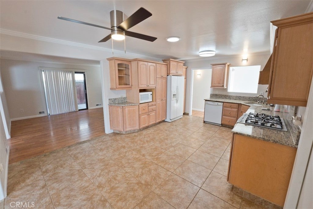 Great looking home ready to move in with 4 bedrooms 1.75 baths the large family room was turned into a 4th bedroom and a large dining area or tv room was made to make this home even more versatile. Big kitchen with custom cabinetry with tons of storage and upgraded features such as a spice rack, sliding drawers for pots and pans and so much more. Hallway bath has a jetted tub and tie floors. Laminate flooring throughout makes clean up a breeze. Patio cover on the back will make a good spot to hang out and watch the kids play. Large area on the back of the garage will make a small shop or additional storage. You have to see this home before its gone.
