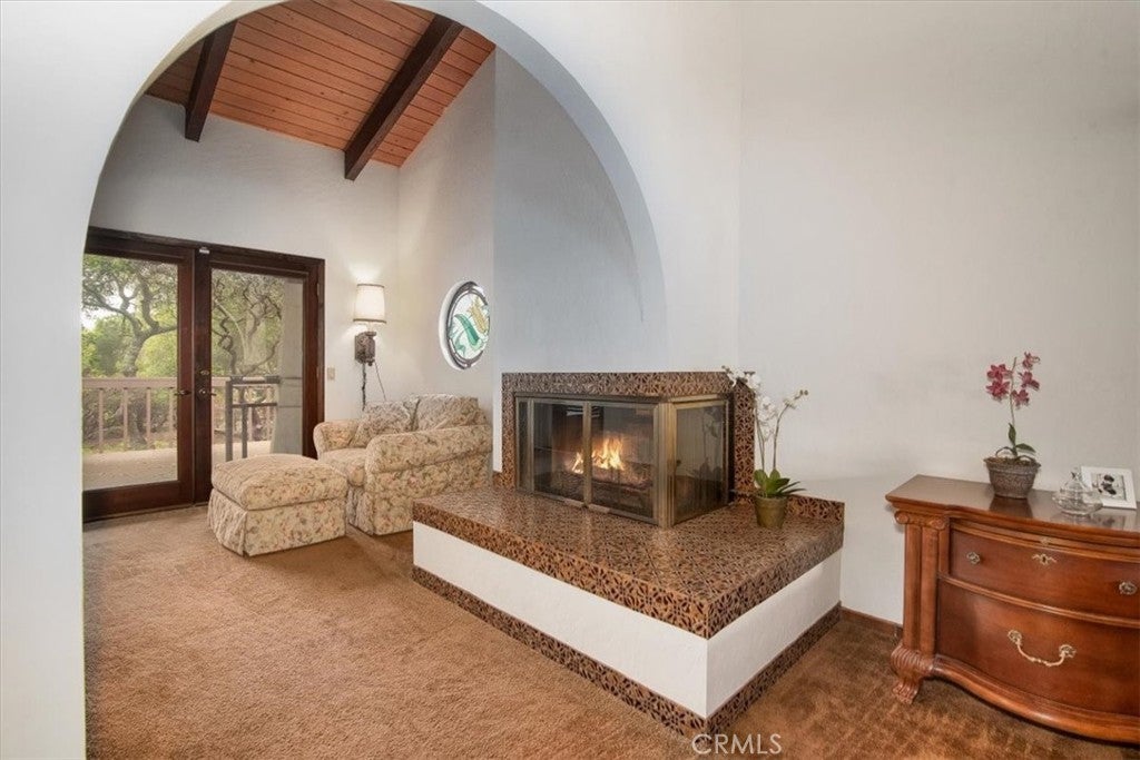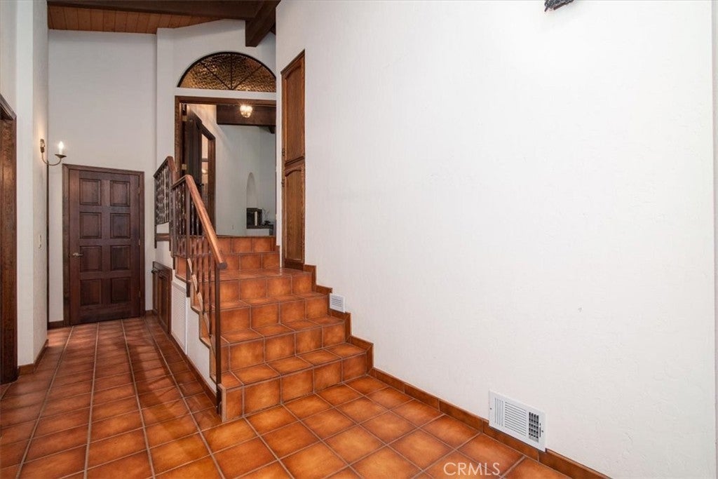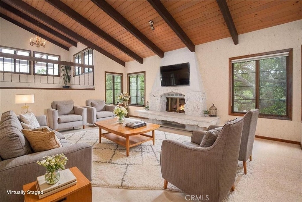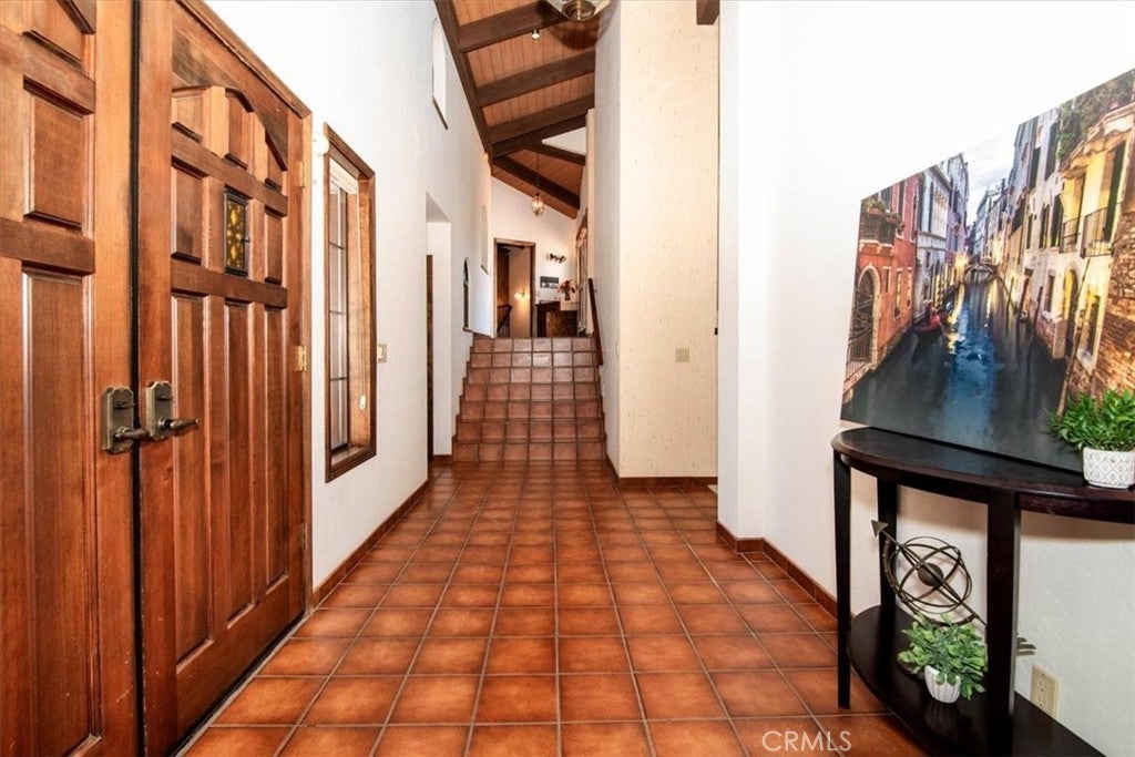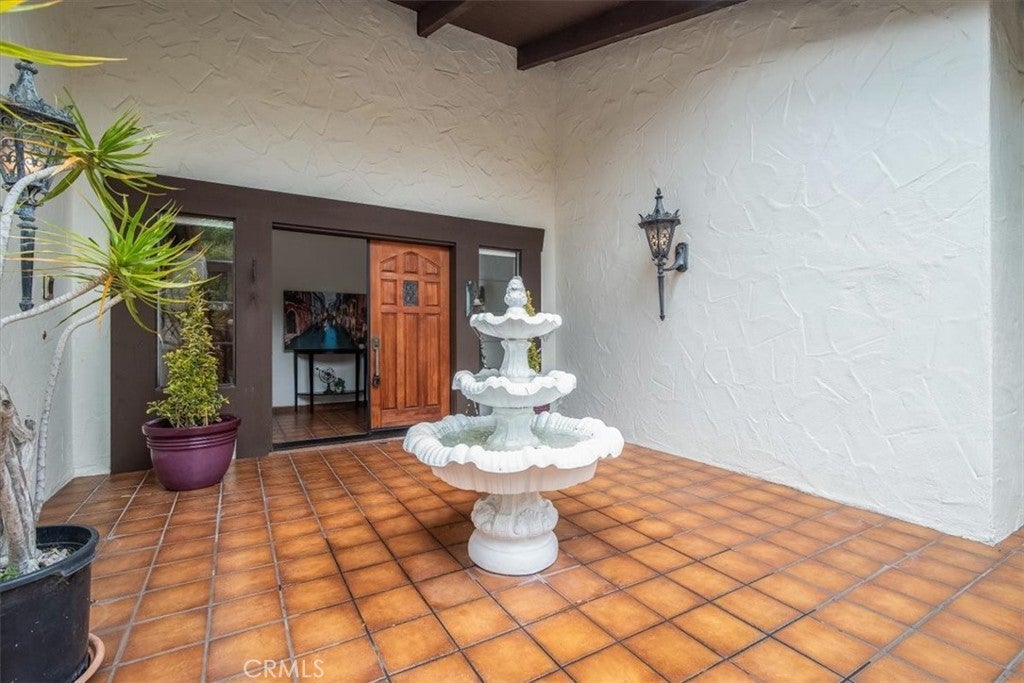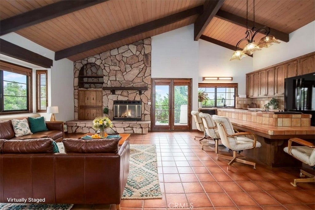 Nestled within a prestigious country club, 445 Firestone Way exudes the charm of a Mediterranean/Spanish home. Situated at the end of a tranquil cul-de-sac, this residence offers both privacy and elegance. The inviting entrance via the circular driveway, leading to a front patio with beautifully laid tiles and a serene fountain. Enter to discover cathedral ceilings adorned with exquisite wood beams. A graceful staircase guides you to the remarkable primary suite. This expansive retreat features a large bedroom with a cozy lounge area and fireplace. One bedroom is currently set up to use as an office. Enjoy stunning backyard views from one of the private balconies—ideal for quiet reflection or morning coffee. The suite includes two full bathrooms: one with a tranquil soaking tub and expansive walk-in closet, the other with a sleek, glass-enclosed shower. The spacious living room boasts high wooden beamed ceilings and picturesque windows and an inviting abundant natural light. A formal dining area overlooks the living room, perfect for entertaining guests. The chef's dream kitchen features wood beam ceilings and a generous island adjacent, the family room offers a cozy haven with a rock fireplace and balcony. A fully-equipped bar stands ready for crafting cocktails or enjoying an evening drink. 445 Firestone Way is more than a home; it is a lifestyle, offering a unique living experience with its elegant design, luxurious amenities, and serene location.