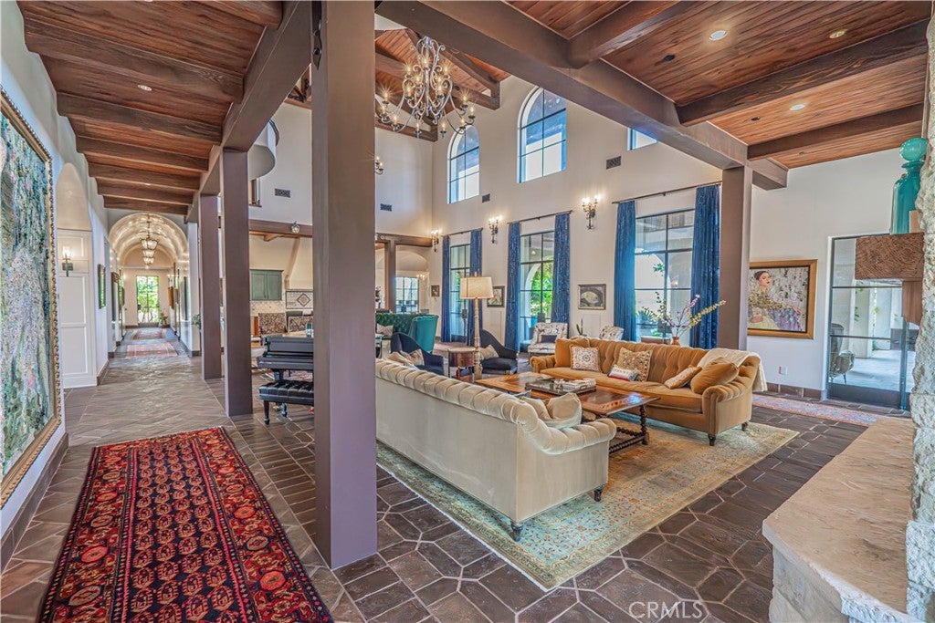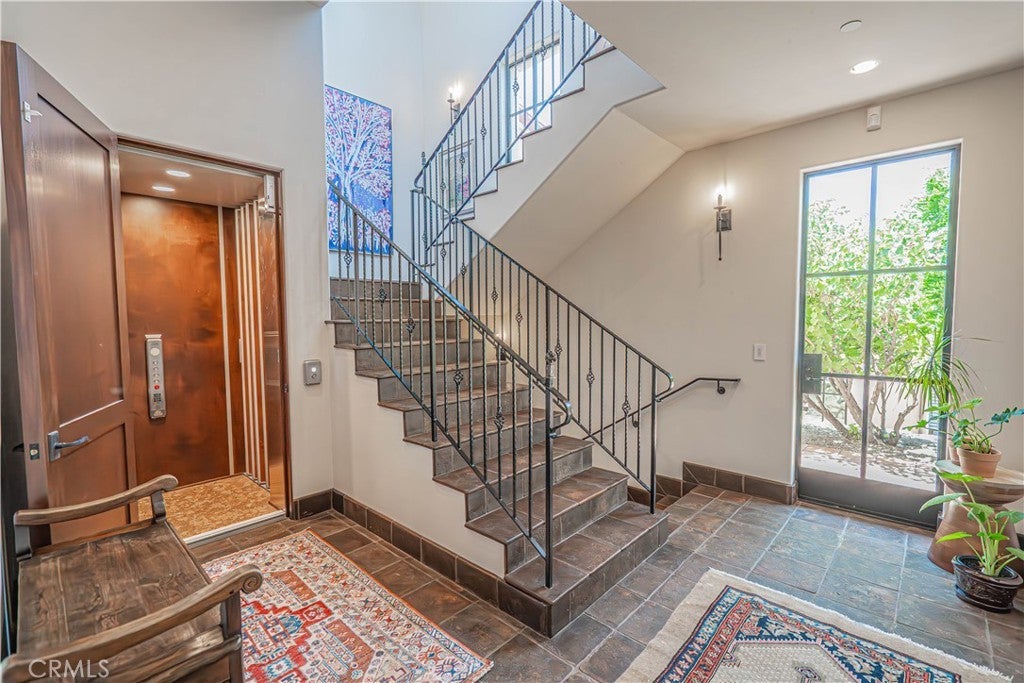 Beamed Ceilings, Breakfast Bar, Built-in Features, Breakfast Area, Separate/Formal Dining Room, Elevator, Granite Counters, High Ceilings, Multiple Staircases, Open Floorplan, Pantry, Storage, Two Story Ceilings, Bar, Main Level Primary, Walk-In Pantry, Wine Cellar, Walk-In Closet(s), Workshop, Dressing Area