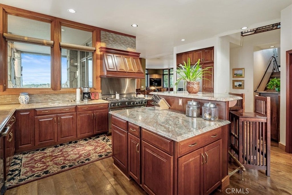 Welcome to your private sanctuary atop 40 acres, offering breathtaking 360-degree views, tranquility, & modern luxury. From the Santa Lucia Mountains to expansive horizons, enjoy stunning sunrises, sunsets, & skies filled with thousands of stars; an astronomer’s paradise. The environment is an ultra-quiet sanctuary with birds, crickets, & wind, creating a peaceful retreat. Paved access makes driving in and out effortless, with additional nearby parcels: an 80-acre open land & a 20-acre hilltop ready-to-build site, included in the sale. The 5,100 sq ft, three-story home features a spacious design blending comfort & elegance. Highlights include a multi-level library with a large skylight, & a luxurious master suite with a built-in king-size bed, cherry wainscoting, & custom closets. The gourmet kitchen boasts granite counters, cherry cabinets, & Viking appliances. Throughout, Hickory hardwood floors, marble accents, and radiant floor heating elevate the interior, complemented by mini-split AC units and a Hearthstone Mansfield wood stove for winter comfort. The property offers extensive amenities: over 2,000 sq ft detached garage with a 47’ RV bay, built-in cabinetry & custom woodwork in the main home, a helipad, and a 300 sq ft outbuilding with Tesla Powerwalls, inverter, & storage. State-of-the-art energy systems include solar panels with Tesla Powerwalls, and a Generac generator. Two wells & a 500-gallon propane tank support utilities and add to the property's appeal. Outdoor living spaces are perfect for entertaining—1,500 sq ft concrete patio, 5,000 sq ft flagstone deck surrounding the house, & a 400 sq ft observation deck on the third floor. The front yard features a putting green ,gorgeous landscaping, & the entire estate is enclosed by a deer fence with five gates & graded roads for easy access. Wildlife is abundant, including deer, foxes, upland game, & songbirds. Additional features include a light-filled hobby room, laundry with farm sink, and a grand entrance with a cast-in-place basement with arched ceiling complete with a heavy steel combination vault/safe door. Architecturally, the home showcases a porte-cochere with belltower & a bronze bell cast in the 19th century. Experience wildflowers in spring, bird songs, the serenity of this timeless retreat. Offering a rare blend of natural beauty and modern comfort, this luxury estate is ready for your private tour. Contact your Realtor to schedule today!