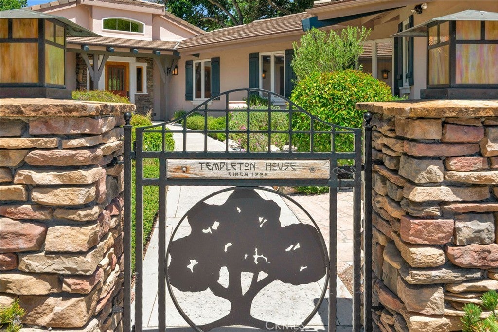 Privacy. Prestige. Timeless Elegance. Welcome to Templeton House—a distinguished estate with separate workshop gracefully set within the rolling hills of exclusive Petersen Ranch. Crafted with remarkable attention by its original owners, this residence offers an uncommon blend of sophistication, serenity, and enduring architectural beauty, all just moments from renowned wineries and premier Central Coast destinations. A gated entrance announces your arrival to a property of rare refinement. The winding drive reveals immaculately maintained grounds, generous guest parking, a bocce court with an elevated viewing deck perfect for sunrise contemplation or sunset gatherings, a fragrant rose garden, and a tranquil courtyard oasis that hints at the elegance within. Step through the private entry gate and be welcomed into a world of understated luxury. The grand living room showcases soaring ceilings, exquisite flooring, and abundant natural light, framed by custom glass doors that open to the landscape. A warm fireplace and custom built-ins create a setting of comfort, grace, and timeless appeal. At the heart of the home lies the chef’s kitchen—an inspired culinary haven equipped with premier stainless appliances including a Viking range, double ovens, warming drawer, and professional-grade ice maker. A generous island serves as both workspace and gathering point, enhanced by a skylight that bathes the room in soft illumination. Adjoining spaces include a charming dinette with custom shelving and built-in desk, as well as a formal dining room ideal for intimate dinners and celebratory occasions. The primary suite is a private sanctuary featuring a dramatic ceiling, personal wood-burning stove, glass doors, and a spa-inspired bath with deep soaking tub, dual vanities, walk-in glass shower, and a spacious, beautifully designed closet. The guest wing—positioned for privacy on the opposite side of the home—offers two oversized bedrooms, abundant storage, and a well-appointed bath. Outdoors, meandering paths, shaded patios, and serene vantage points invite reflection and connection with the natural surroundings. A separate workshop—with private office, dedicated lighting, and roll-up doors—provides exceptional flexibility for artisans, hobbyists, or creative professionals. Additional highlights include a three-car garage, custom dog run, and a sprawling 3.65± acre parcel.
