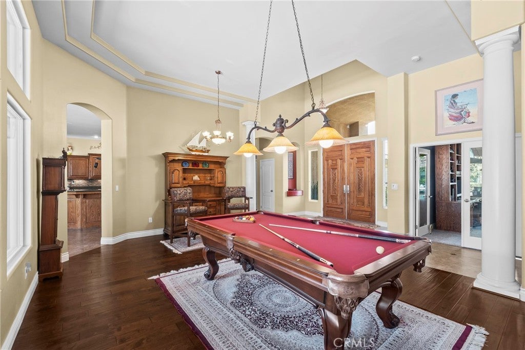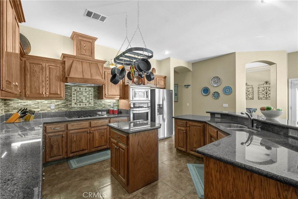 Step into your private sanctuary within a prestigious gated community. This remarkable 5-bedroom, 3-bathroom home spans 3,018 square feet of refined living space, designed for both comfort and grand entertaining. The open, split-wing floor plan and high ceilings create a bright and airy atmosphere, while the gourmet kitchen with its beautiful granite countertops is sure to be a favorite gathering spot. The backyard is an entertainer's dream, featuring a wonderful covered patio and a cozy fire pit for evening relaxation. The expansive 14,374 square foot lot is ready for you to design and build your own custom pool, transforming it into a private resort. Enjoy the convenience of living moments from top-rated schools, fantastic shopping, and a local gym.