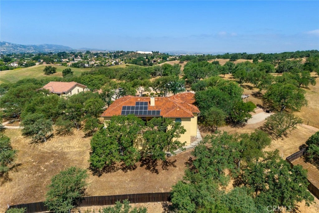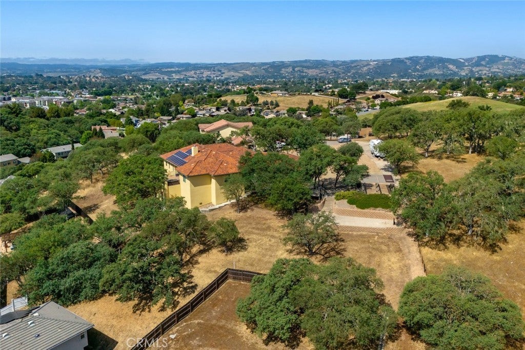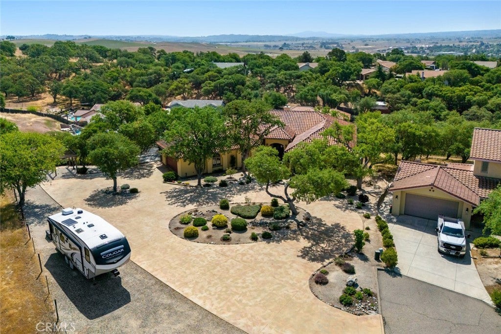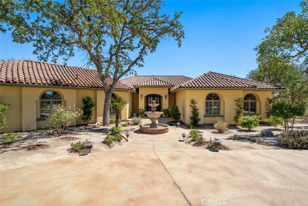 Discover a home where timeless Tuscan charm meets modern amenities, just minutes from Paso Robles’ vibrant downtown and world-class wineries. Nestled behind mature oaks atop a peaceful cul de sac, this single-story residence spans 3,568 square feet and offers open-plan living on a 0.80-acre lot. The home features three bedrooms and three full baths designed for comfort and functionality. The living, kitchen, and dining areas flow seamlessly and include arched mahogany-framed doorways, granite countertops, stainless steel appliances including a Dacor stove and warming oven, and a butler’s pantry. Cathedral vaulted ceilings, two heating and cooling systems, a living room fireplace, and double-pane windows enhance both ambiance and efficiency. An oversized laundry room with a built-in workspace adds flexibility, ideal for crafts, projects, a home office, or a home gym. Additional features include a two-car garage, RV access, and thoughtfully designed patio and deck spaces, along with paid solar. The clay tile roof, and sprinkler system provide both function and ease, while the oak-lined setting ensures privacy within city limits. Located minutes from downtown, enjoy restaurants, boutique shopping, rooftop bars, and nearby wineries. This home combines Tuscan style with practical amenities, offering comfortable living spaces, outdoor areas, and access to Paso Robles’ lifestyle.