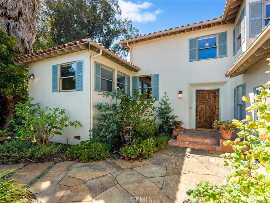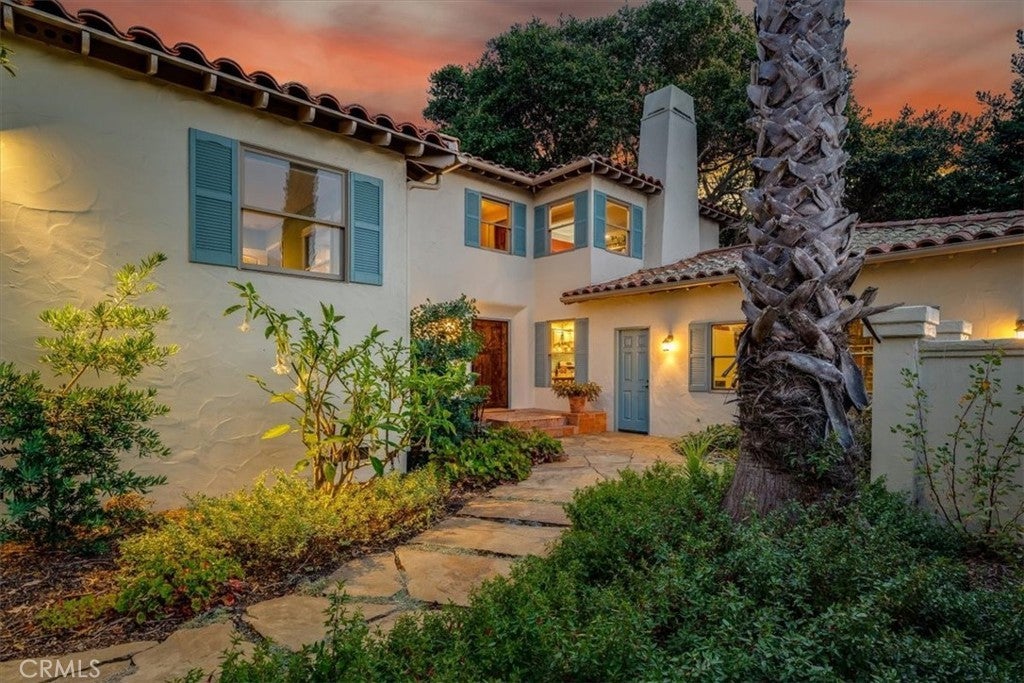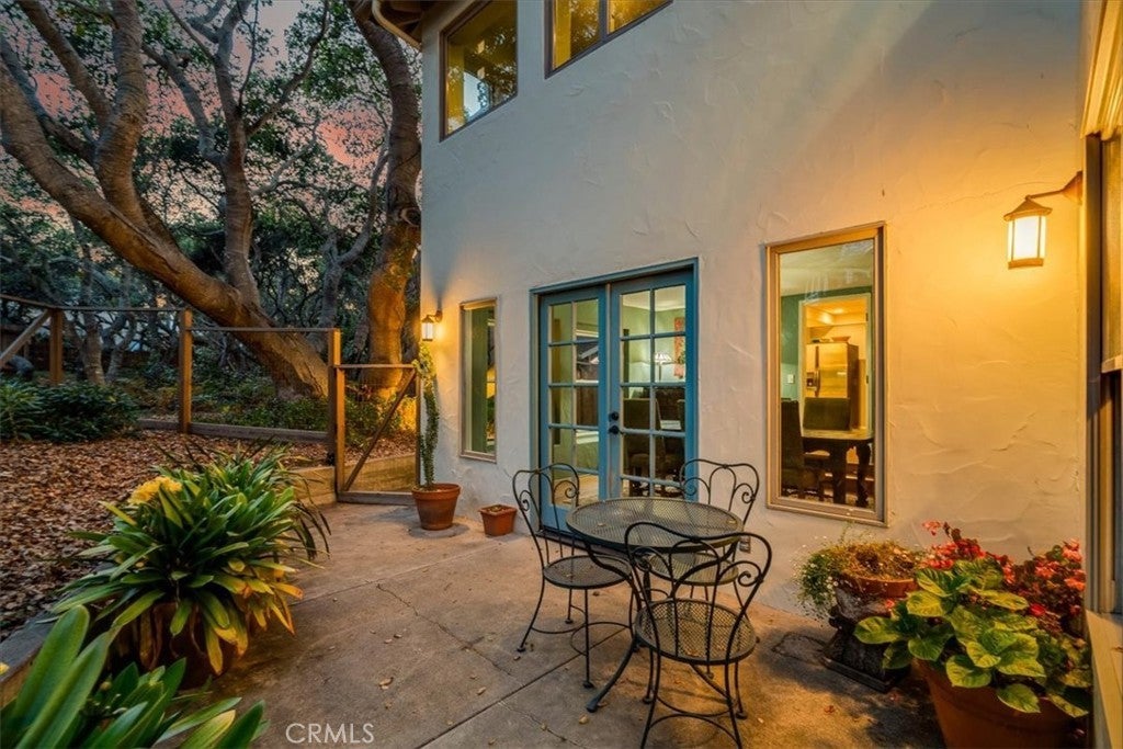 Coastal-Inspired Villa in Bayridge Estates Welcome to a peaceful, coastal-inspired villa nestled in the highly sought-after Bayridge Estates. Tucked away at the end of a quiet cul-de-sac and elevated on a gentle slope, this home enjoys both enhanced privacy and scenic surroundings. Set on expansive, park-like grounds, the property features mature trees and native plants thoughtfully selected for both beauty and sustainability. Artisan pavers trace graceful paths through the garden leading to multiple private patios—ideal for al fresco dining, stargazing, or taking in the sunset views. A serene, gated front courtyard sets the tone of secluded tranquility. Inside, you'll find European white oak hardwood floors, rooms bathed in natural light, and timeless architectural details that carry a warm, inviting atmosphere throughout. This 3-bedroom, 2-bathroom home offers approximately2563 square feet of living space. The living room is anchored by a grand fireplace flanked by generous windows that frame views of the lush backyard. On one side, it flows into a sun-drenched family or bonus room with French doors which open onto the back patios. On the other side, a window-lined dining room with French doors invites seamless indoor-outdoor living and views of the evergreen Coast Live Oaks. The kitchen is as stylish as it is functional, offering abundant cabinetry, stainless steel appliances, a charming breakfast nook, and lovely courtyard views. The first bedroom is spacious, with semi-en suite access to a full bathroom and views of the front courtyard. The generously proportioned second bedroom (or optional media room / home office) provides for a flexible layout and features a fireplace focal point. The primary suite includes ample closet space, peaceful garden views, and a bonus secluded retreat—ideal for a reading nook or private office. The suite also connects to a Jack-and-Jill bathroom with a deep soaking tub and dual vanities. Just out the back gate you'll find trails that lead past a eucalyptus grove and the stunning natural beauty that surrounds the area. Enjoy the charm of nearby coastal eateries and shops. With easy proximity to both San Luis Obispo and Morro Bay, this coastal retreat blends tranquility, timeless charm, and everyday convenience.