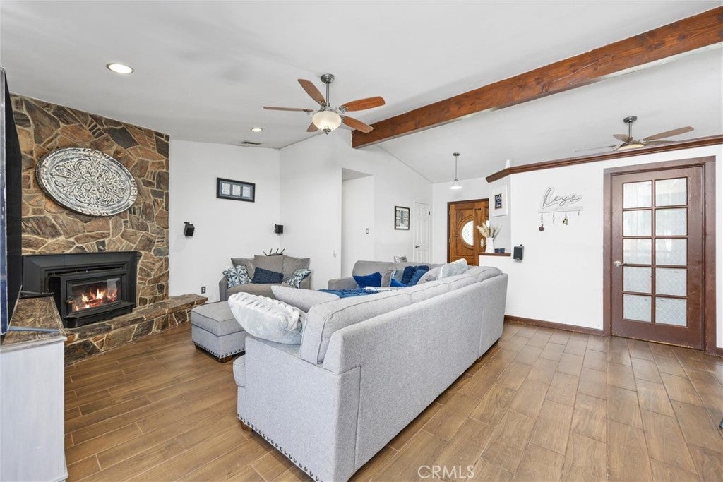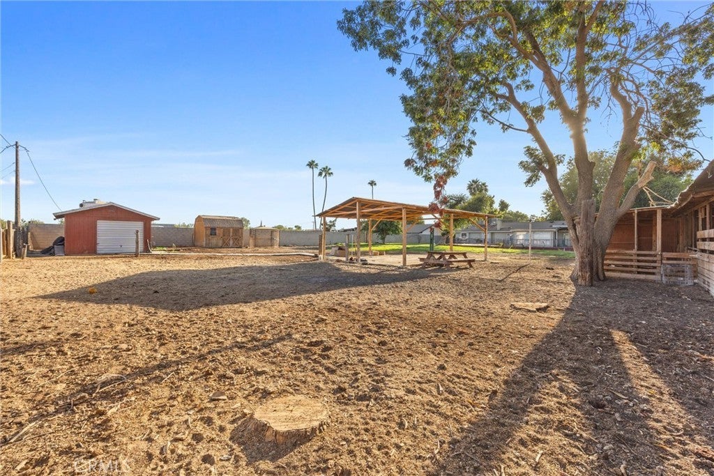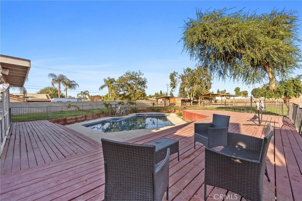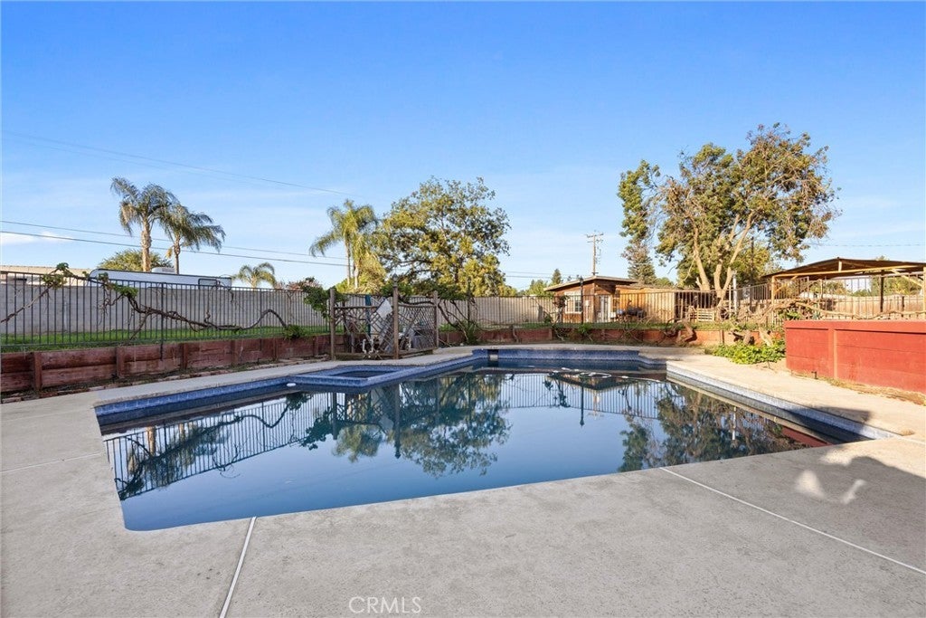 Welcome to Country Living! This unique 4-bedroom, 3-bath home sits on nearly a full acre of usable land, offering the perfect blend of comfort and potential. Inside, you’ll find brand-new flooring throughout, a modern kitchen, and a cozy dining area. With some TLC, this property can truly shine! Step outside to discover small stables, a detached office/studio, and an oversized underground pool ideal for entertaining or relaxing on sunny days. The property also features grape vines, an orange tree, a spacious deep pit, and ample room to add an ADU, making it a wonderful fit for multigenerational living, equestrian enthusiasts, hobby farmers, or anyone who loves outdoor space.