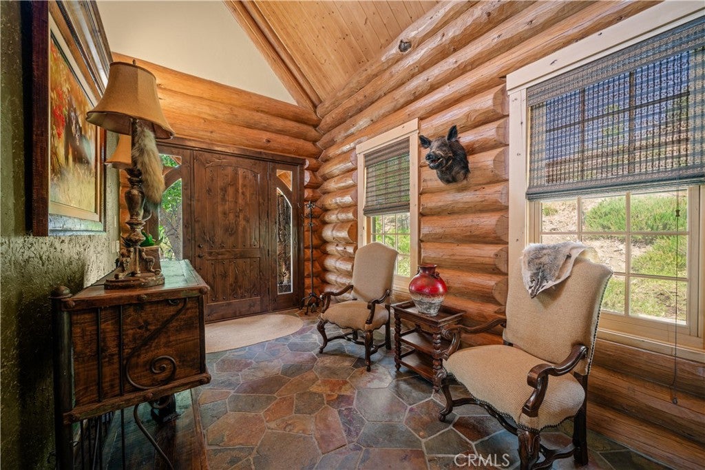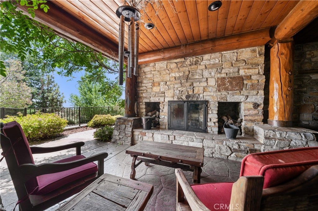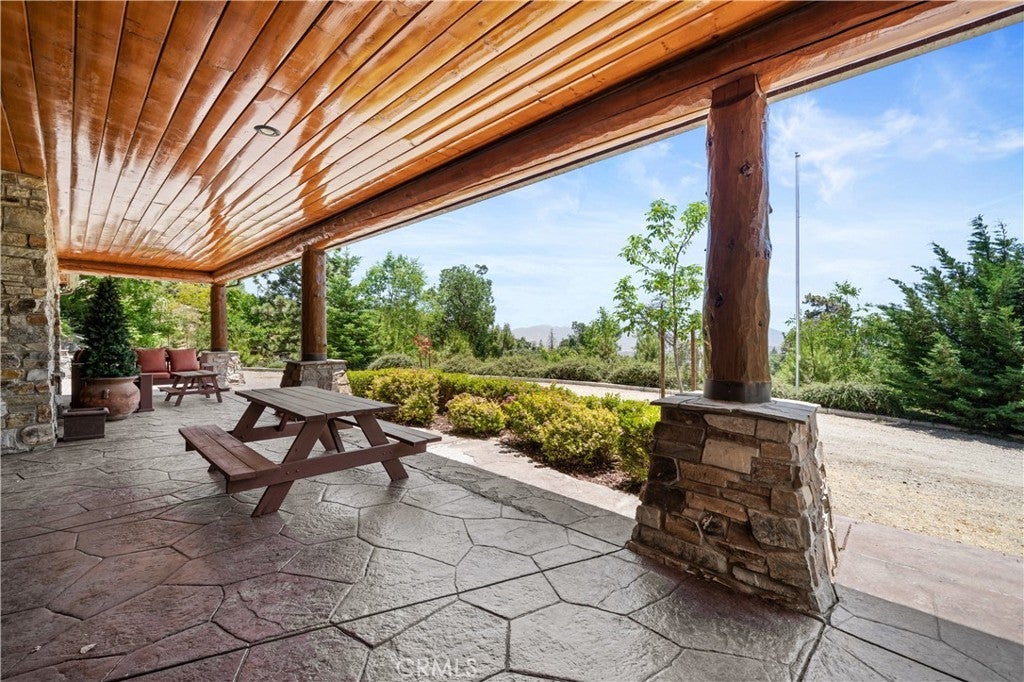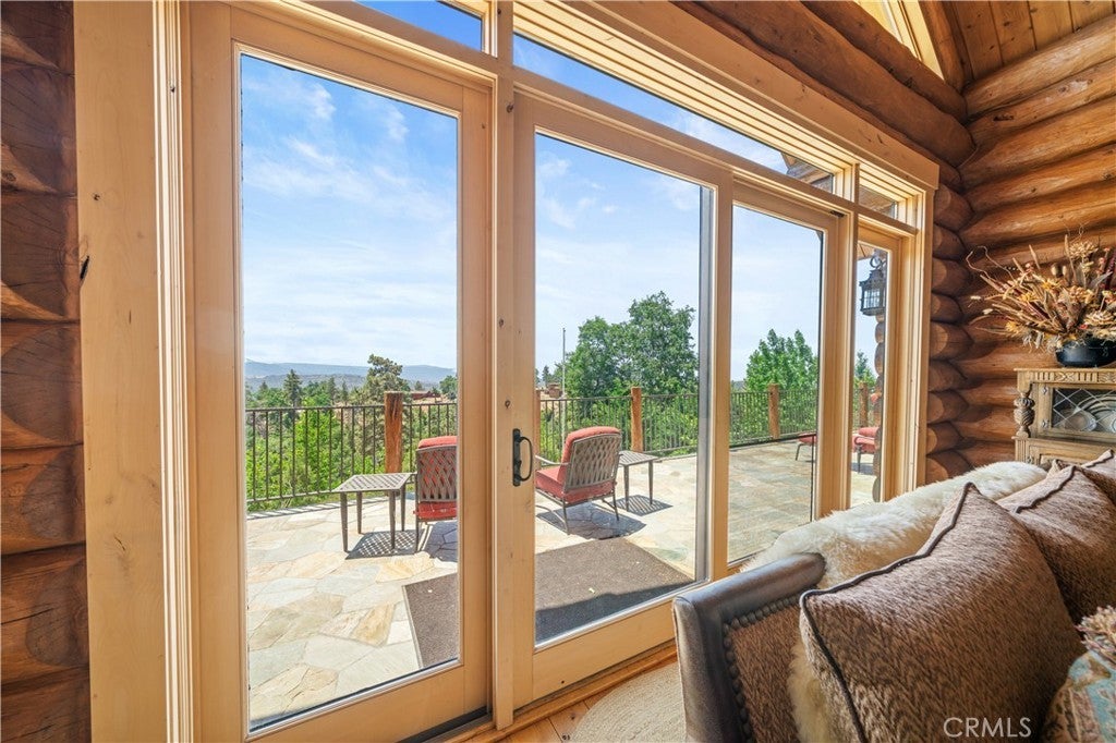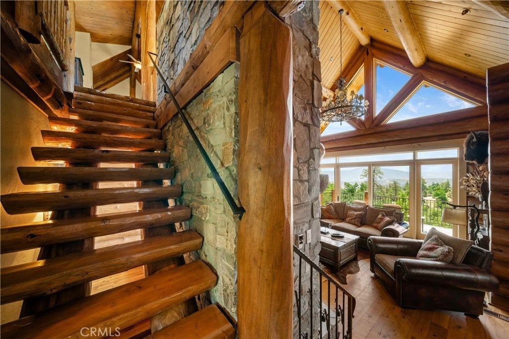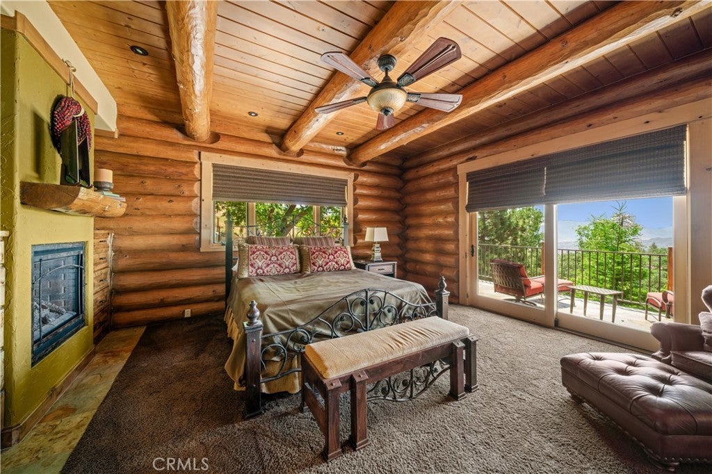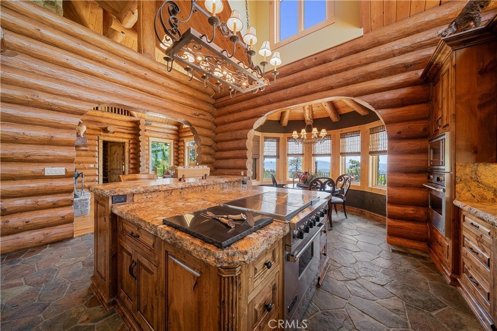 Unveil this exquisite 4-bed, 3.5 bath custom log home by Caribou Creek, boasting 3,717 sq ft across 3.63 acres. Crafted in Swedish Cope style with premium Western White Pine, this sanctuary combines exceptional artistry with rustic luxury within the prestigious gated Bear Valley Springs community. Upper Level loft: Generous bedroom with ensuite bath, walk-in closet, and a balcony with a beautiful view. Ideal for guests, home office, or a serene escape. Main Level: Luxurious primary suite featuring a stone fireplace, spa inspired jacuzzi tub, radiant heated floors, dual vanities, walk-in closet, and a private balcony with mountain views; expansive living area with soaring ceilings and a Mcgregor Lake Ledge stone fireplace; gourmet kitchen equipped with Viking appliances, reverse osmosis, triple thick leathered granite counters, custom alder/hickory cabinets, and an integrated BBQ station. Lower Level: Two additional bedrooms (one with built in bunk beds), a full bathroom, laundry closet with side by side washer/dryer, a game room with wet bar (copper sink, beverage fridge, cigar rack) plus a dedicated theater room with motorized screen and media center. Outdoor Oasis: Vast natural stone decks with propane BBQ, sink, fire pit areas, horseshoe pit, and multiple seating spots; secluded, tree lined acreage with sweeping views and outdoor gathering spaces. Added benefits: Finished garage with storage, dual zone HVAC, custom motorized gate, whole house fan, large water heater and water softener. Community Highlights: Relish exclusive access to an equestrian center, scenic riding trails, 9-hole golf course with driving range, Olympic sized swimming pool, tennis/pickleball courts, shooting range, fitness center with gym sauna, dog park and more. This stunning home is ready for its next chapter- contact your agent to schedule a private tour today!