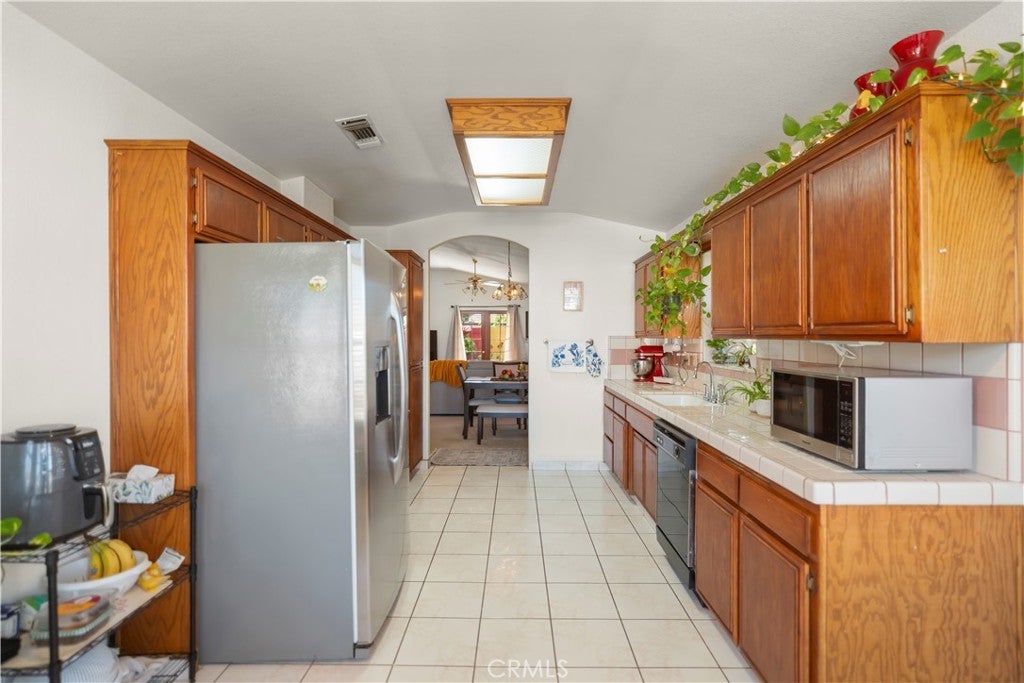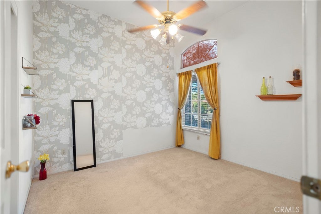 Charming Bakersfield home featuring tile floors in the entry, kitchen, dining, and bathrooms, with plush carpet in the bedrooms, hallway, and living room. High ceilings with ceiling fans throughout create a bright, airy feel. Spacious backyard perfect for entertaining and outdoor enjoyment.