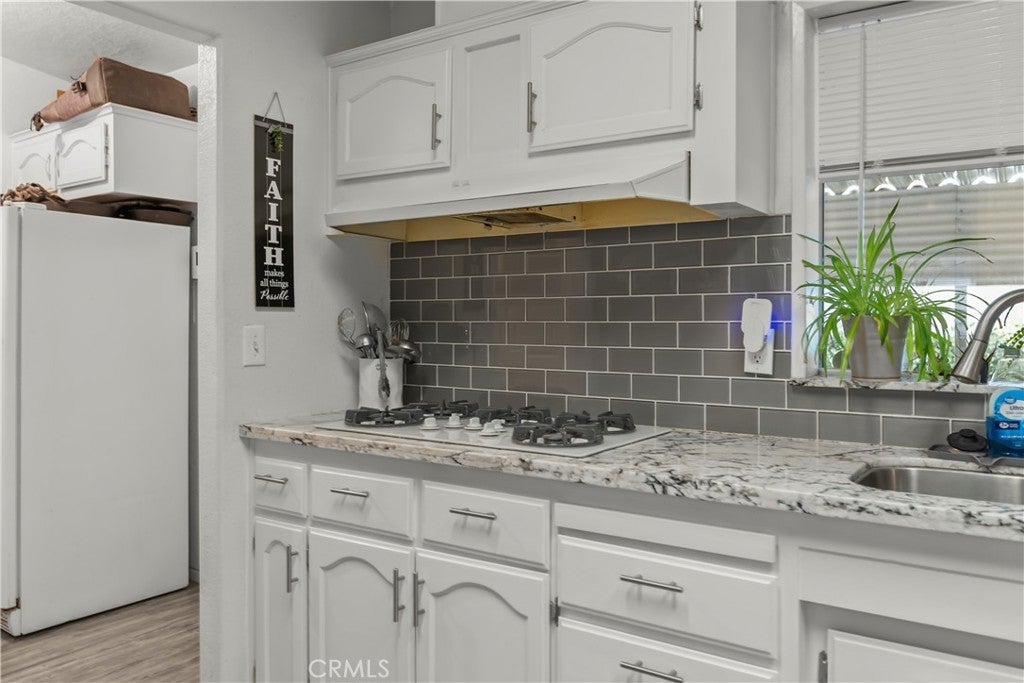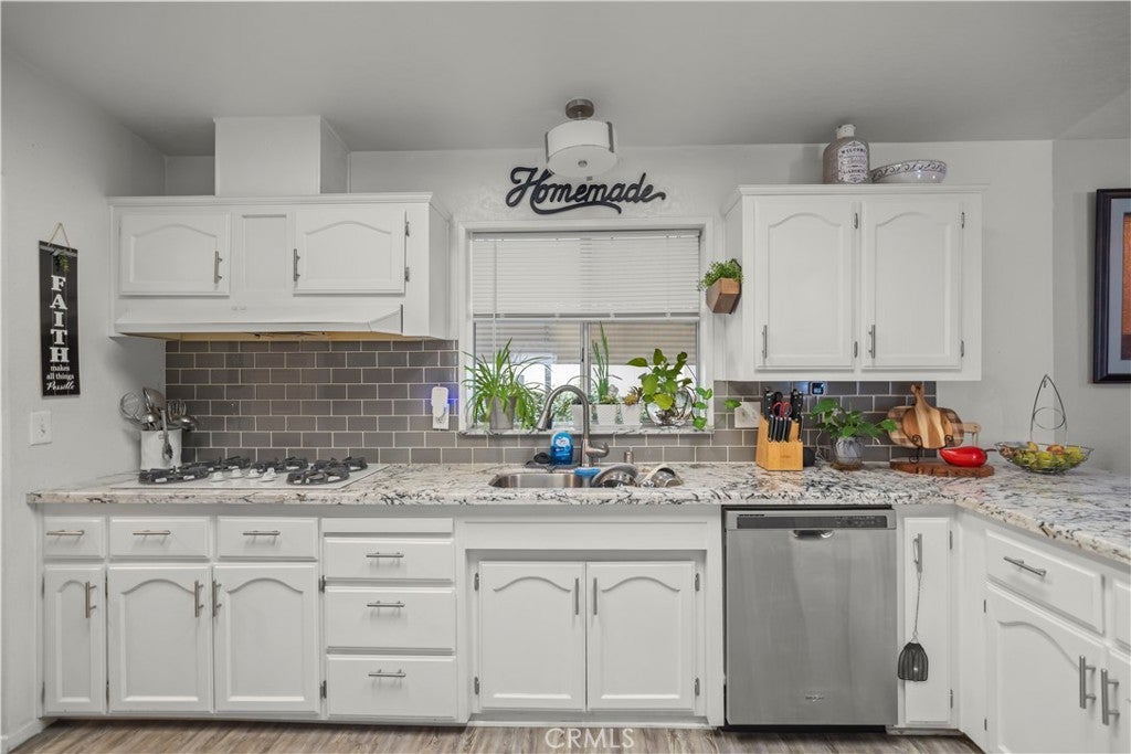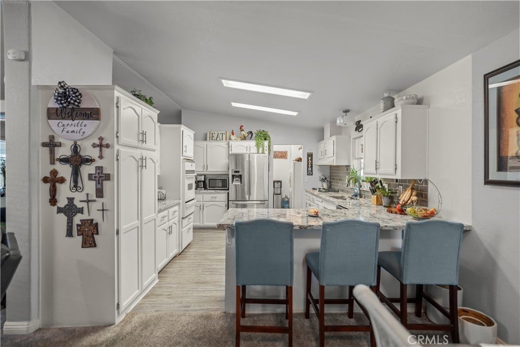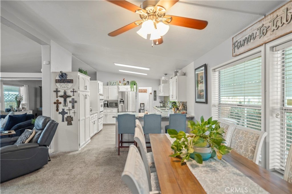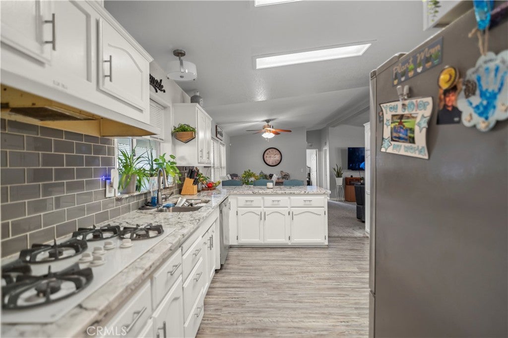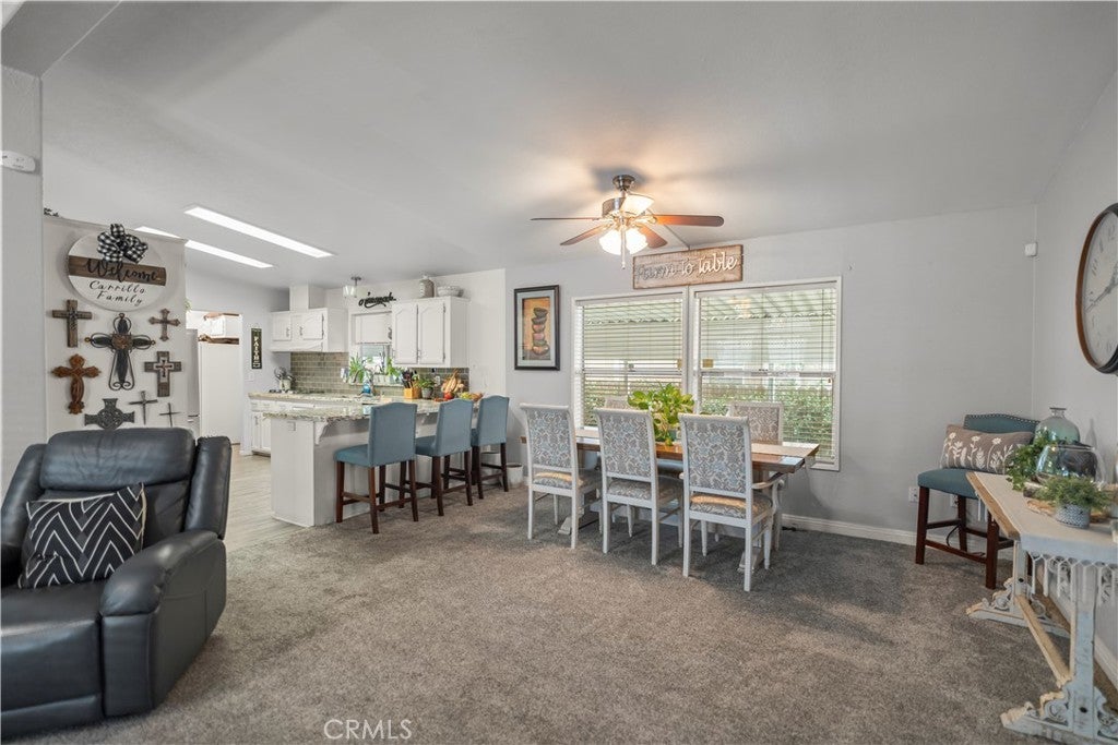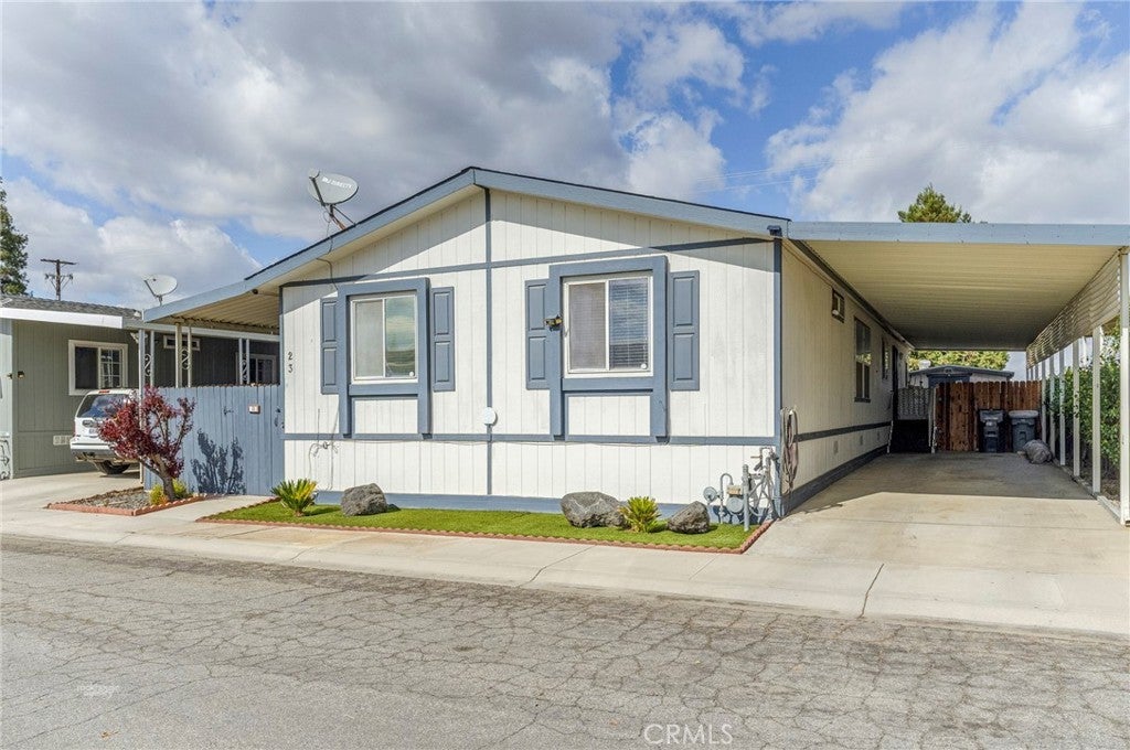 Spacious and beautifully maintained 3-bedroom, 2-bath manufactured home in the desirable 55+ West Hills Mobile Home Park, conveniently located near Highway 99. This home features an open-concept floor plan with a large living area, modern kitchen with granite countertops, white cabinets, and stainless steel appliances. The primary suite offers a soaking tub, walk-in shower, and dual sinks. Enjoy relaxing on the covered patio surrounded by lush greenery or the cozy front porch. Updated flooring, bright natural light, and thoughtful details throughout make this home move-in ready. Community offers a peaceful setting close to shopping, dining, and schools.